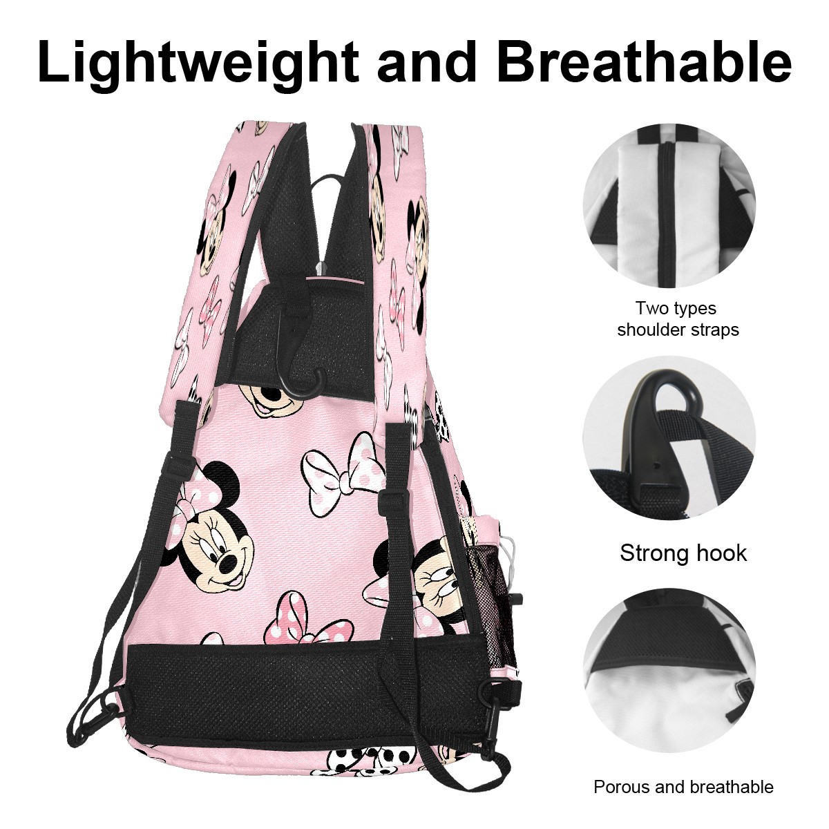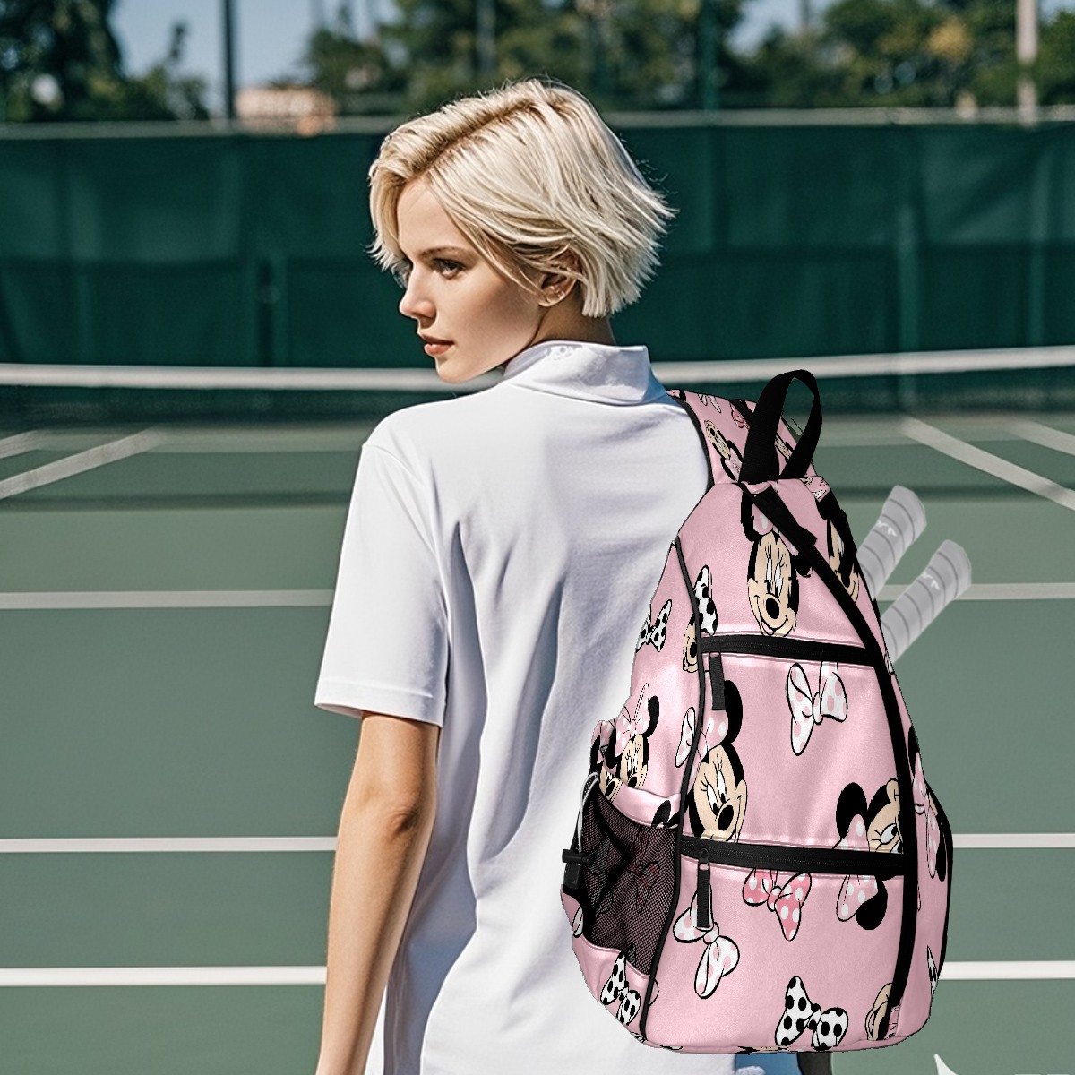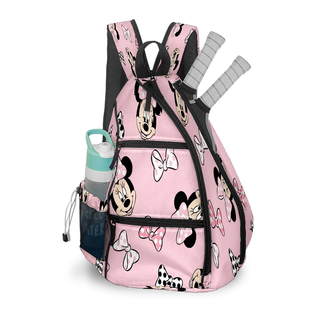 Multifunctional Pickleball Bag,Large Capacity Sports Pickleball Racket Bag, Water Bottle Holder and Fence Hook,Suitable for Both Men Women -Mickey Mouse Minnie Pink Background