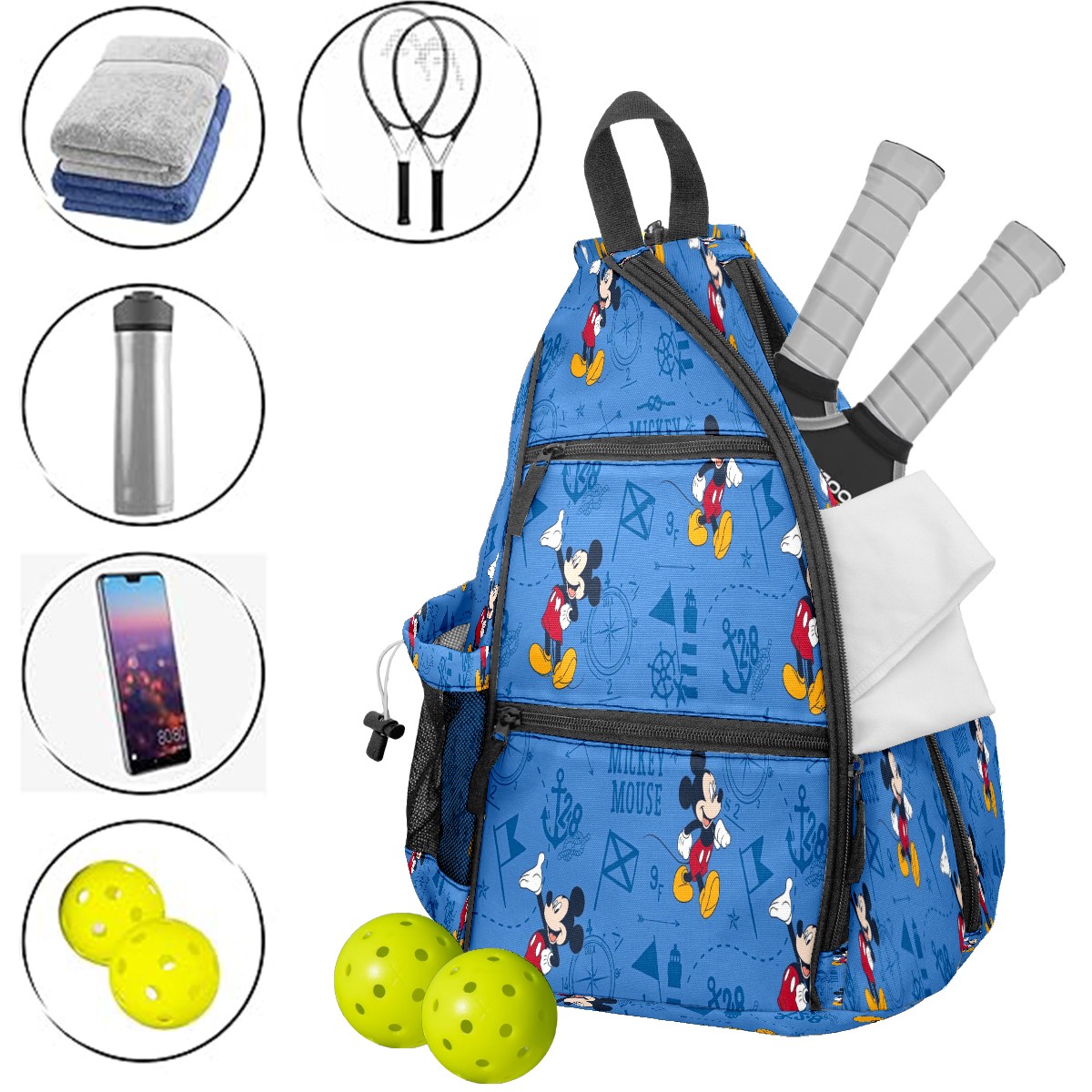 Multifunctional Pickleball Bag,Large Capacity Sports Pickleball Racket Bag, Water Bottle Holder and Fence Hook,Suitable for Both Men Women -Mickey Mouse Captain