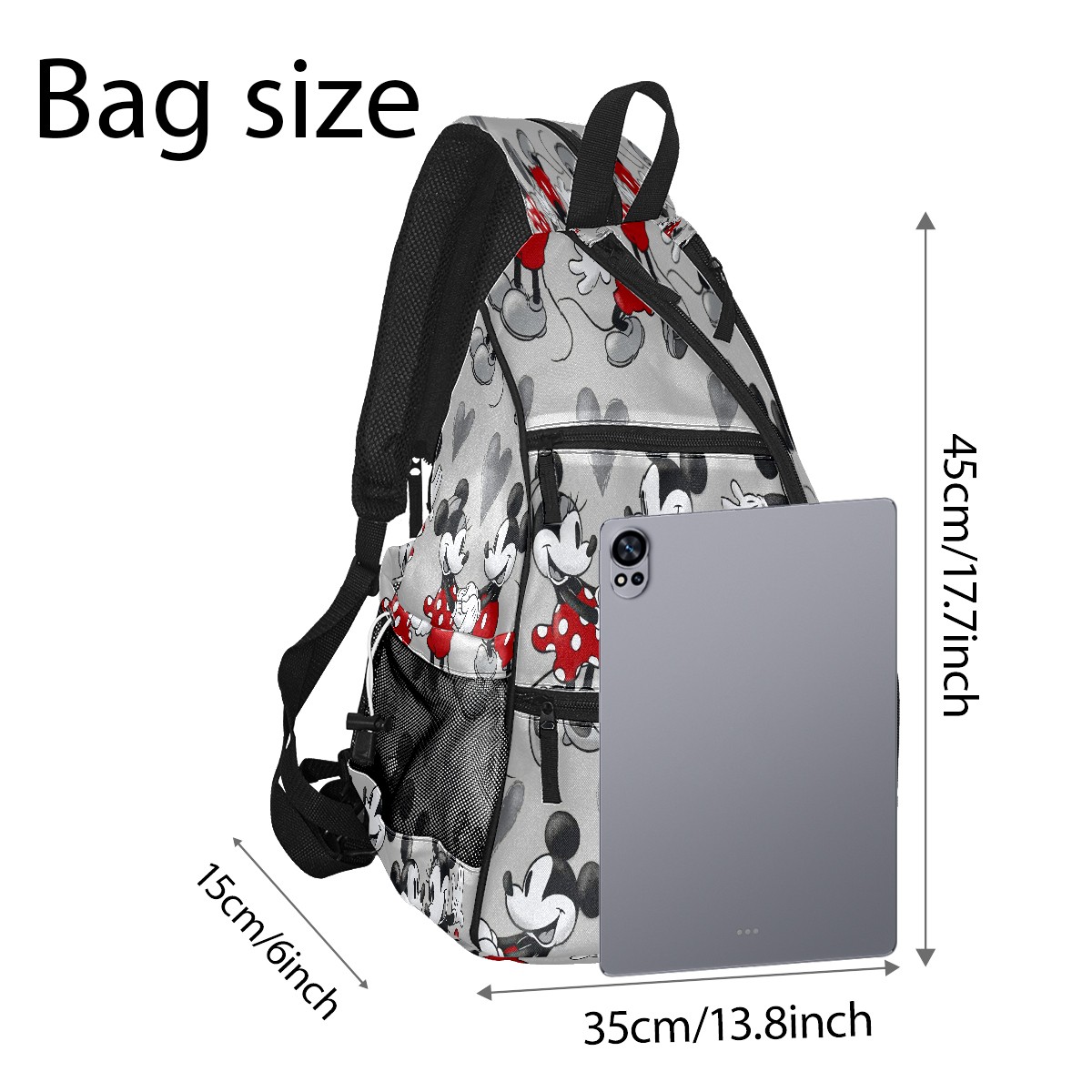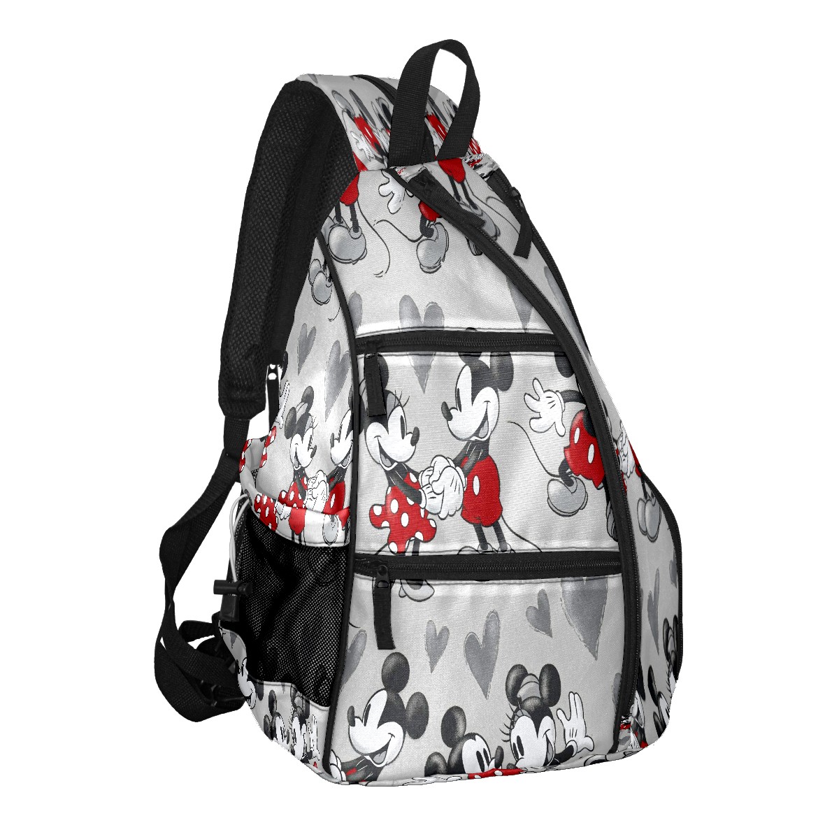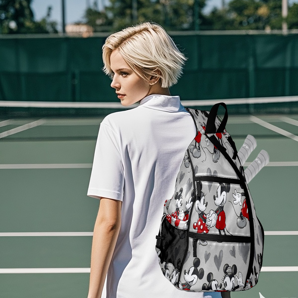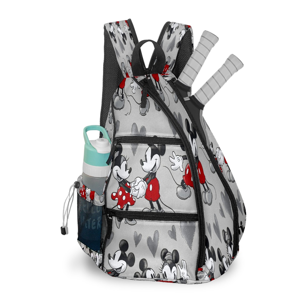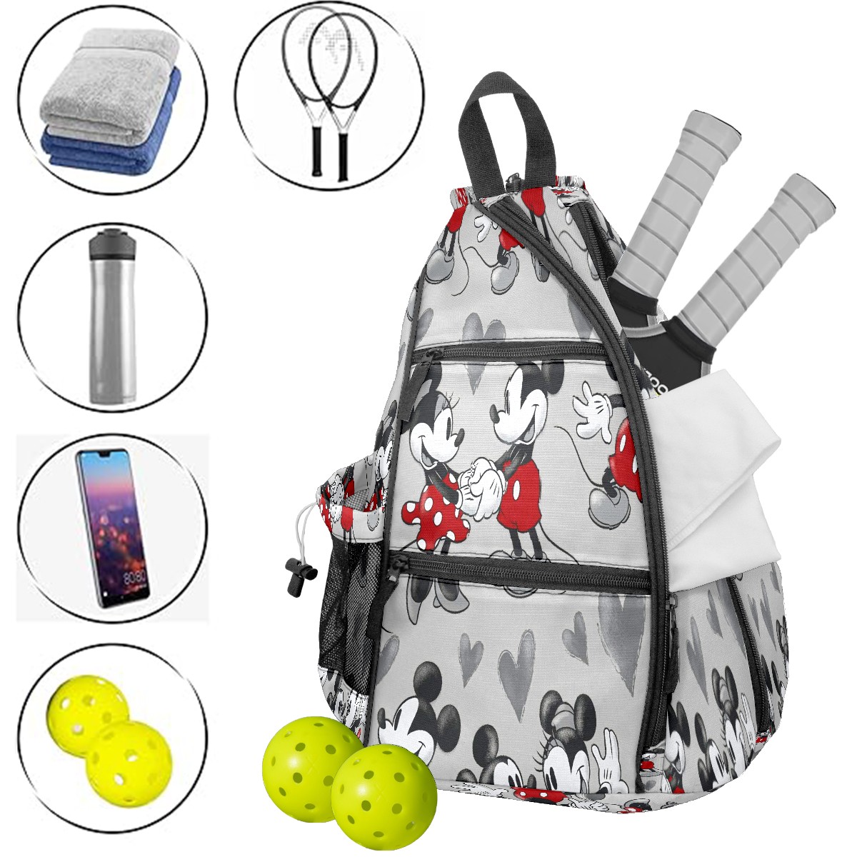 Multifunctional Pickleball Bag,Large Capacity Sports Pickleball Racket Bag, Water Bottle Holder and Fence Hook,Suitable for Both Men Women -Mickey Mouse Grey Love Heart