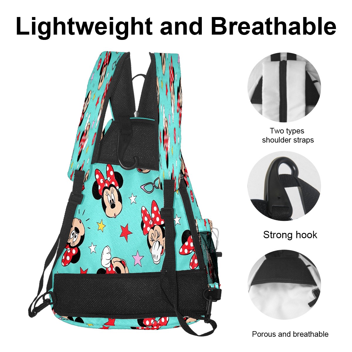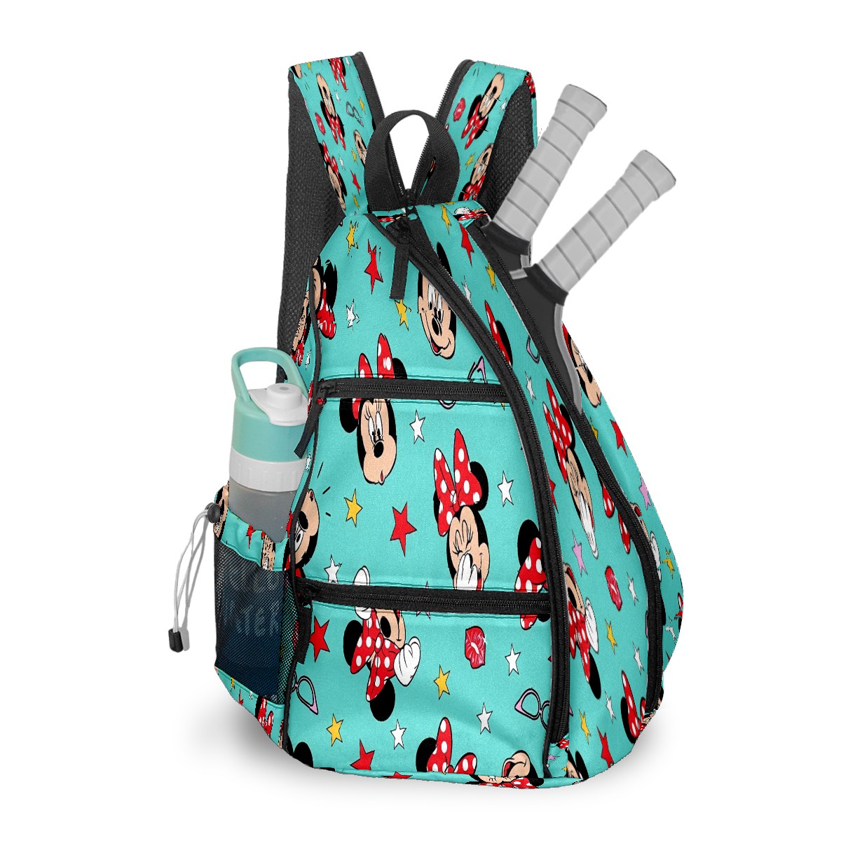 Multifunctional Pickleball Bag,Large Capacity Sports Pickleball Racket Bag, Water Bottle Holder and Fence Hook,Suitable for Both Men Women -Mickey Mouse Minnie (1)