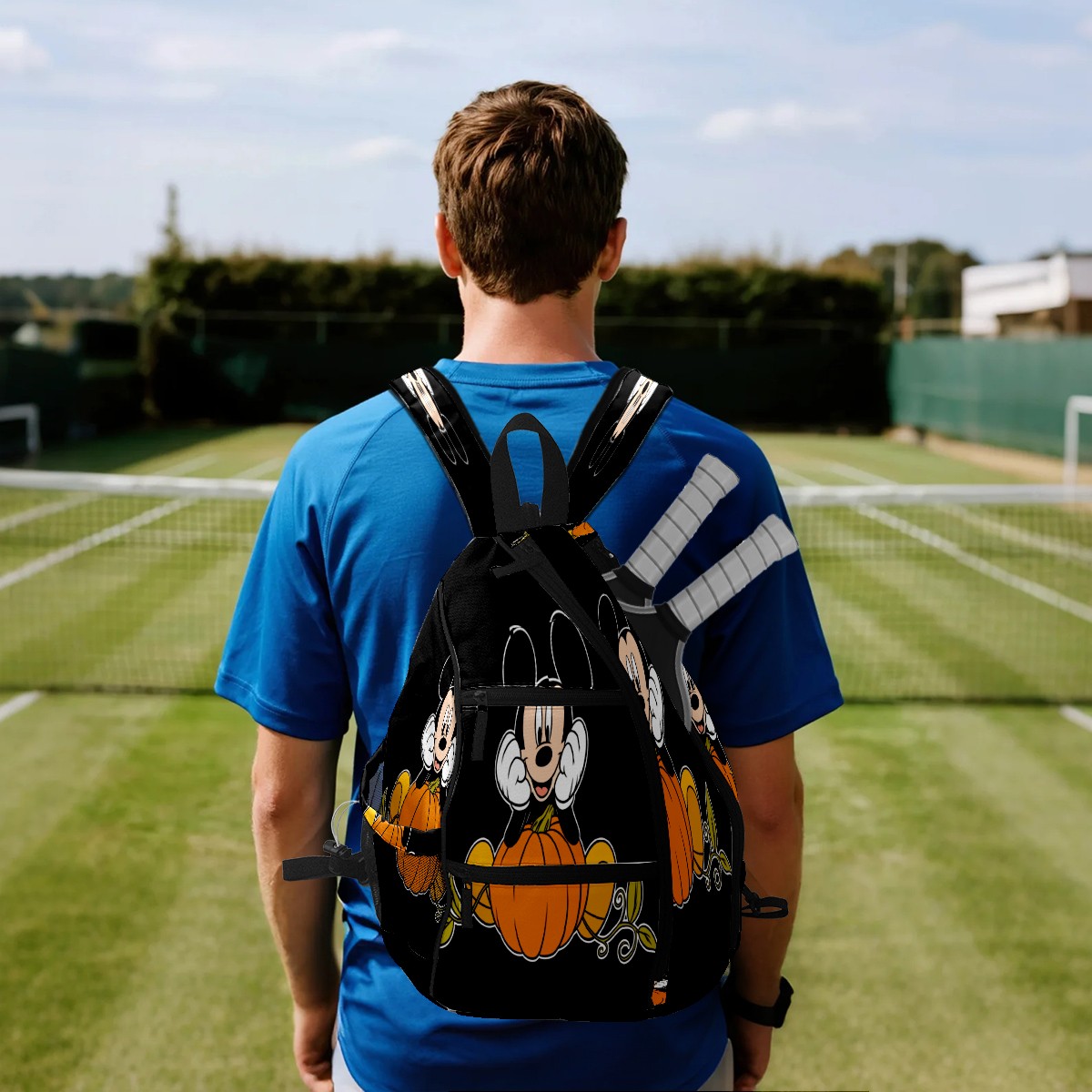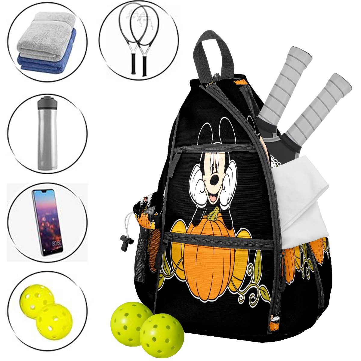 Multifunctional Pickleball Bag,Large Capacity Sports Pickleball Racket Bag, Water Bottle Holder and Fence Hook,Suitable for Both Men Women -Mickey Mouse Sitting On Pumpkin