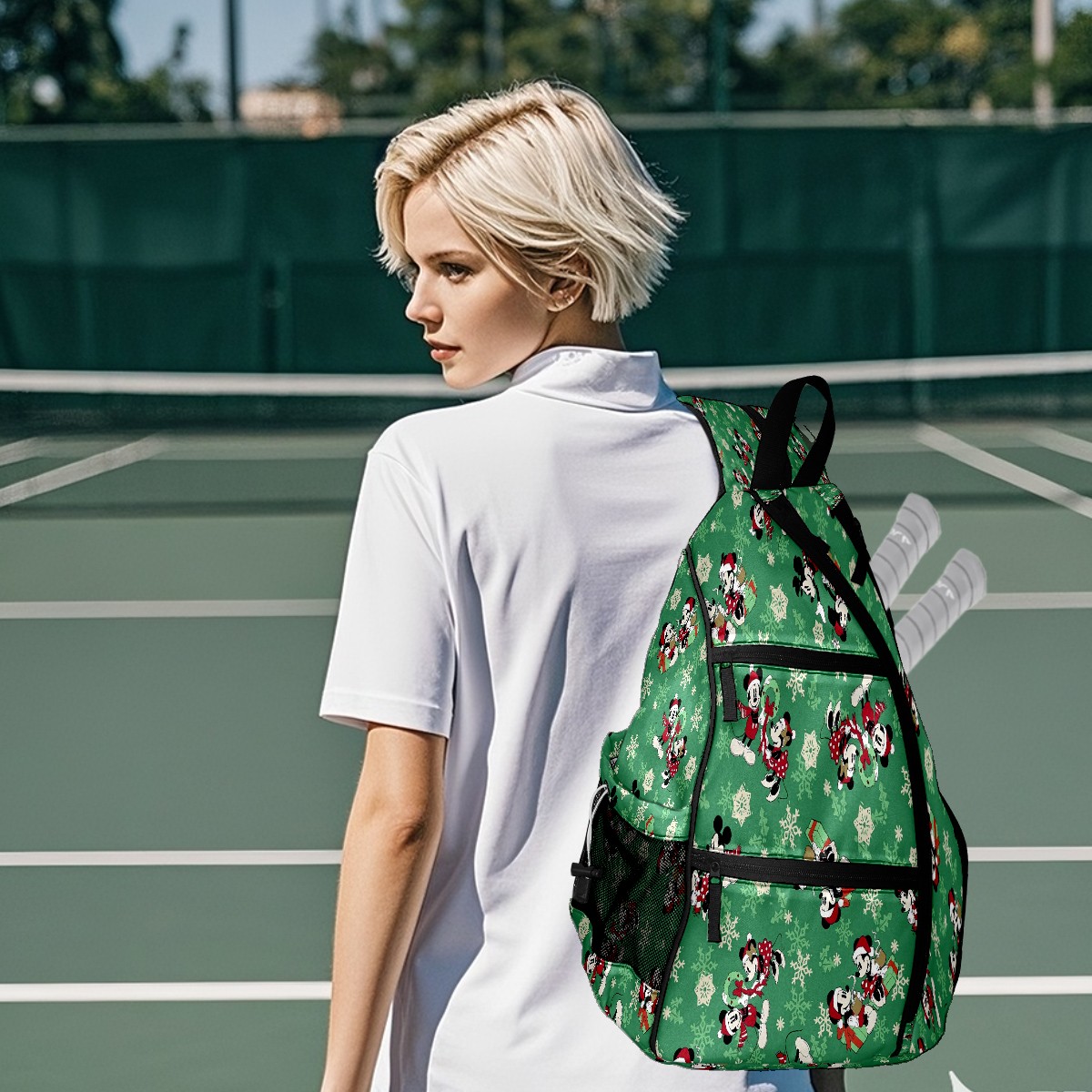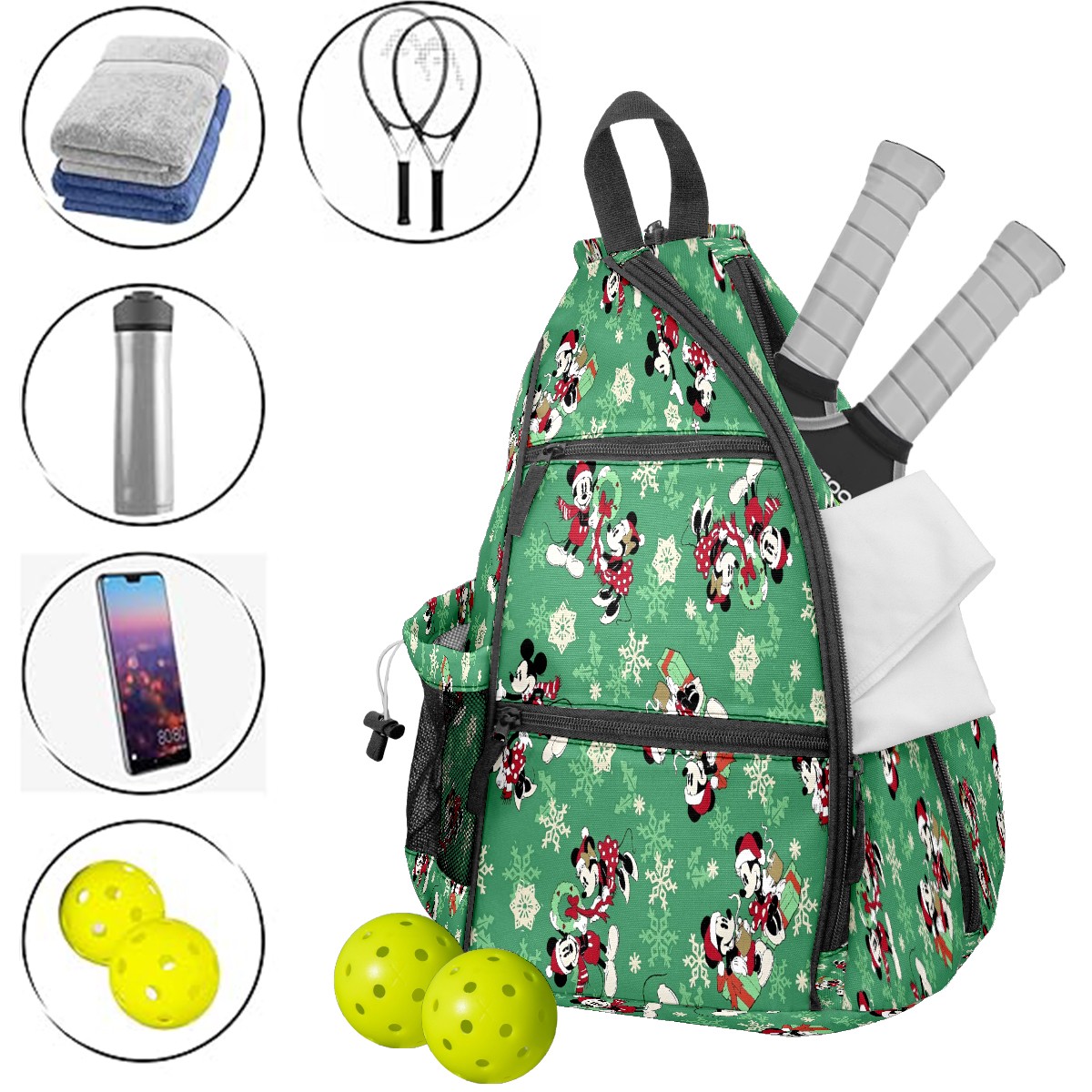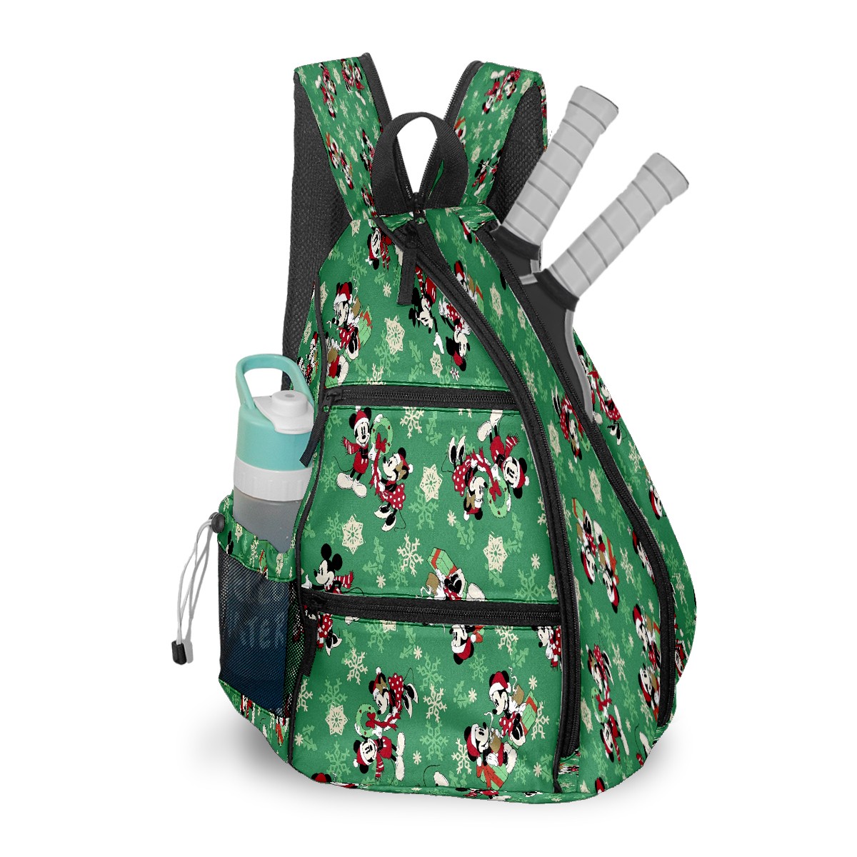 Multifunctional Pickleball Bag,Large Capacity Sports Pickleball Racket Bag, Water Bottle Holder and Fence Hook,Suitable for Both Men Women -Christmas Mickey Mouse Minnie