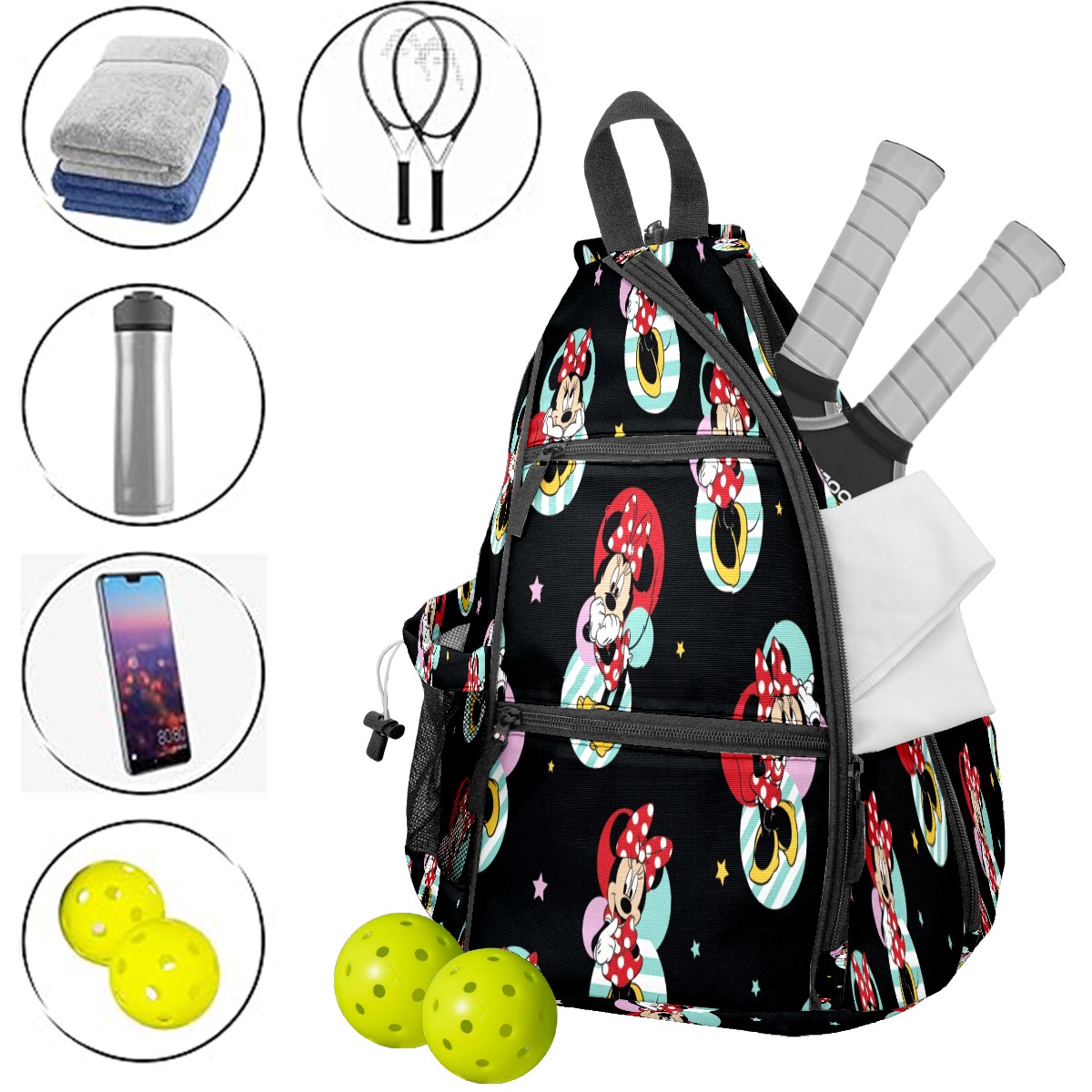 Multifunctional Pickleball Bag,Large Capacity Sports Pickleball Racket Bag, Water Bottle Holder and Fence Hook,Suitable for Both Men Women -Mickey Mouse Minnie