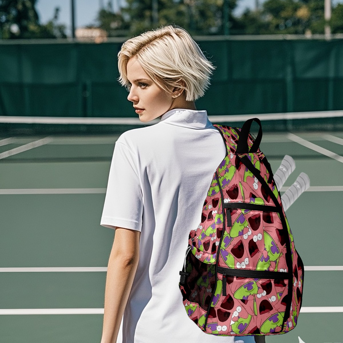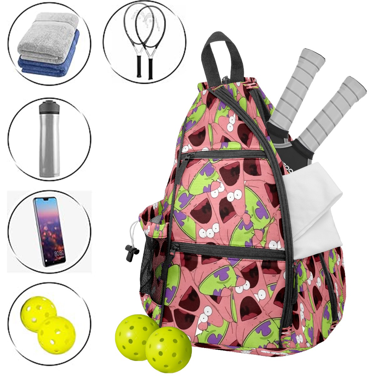 Multifunctional Pickleball Bag,Large Capacity Sports Pickleball Racket Bag, Water Bottle Holder and Fence Hook,Suitable for Both Men Women -海绵宝宝7