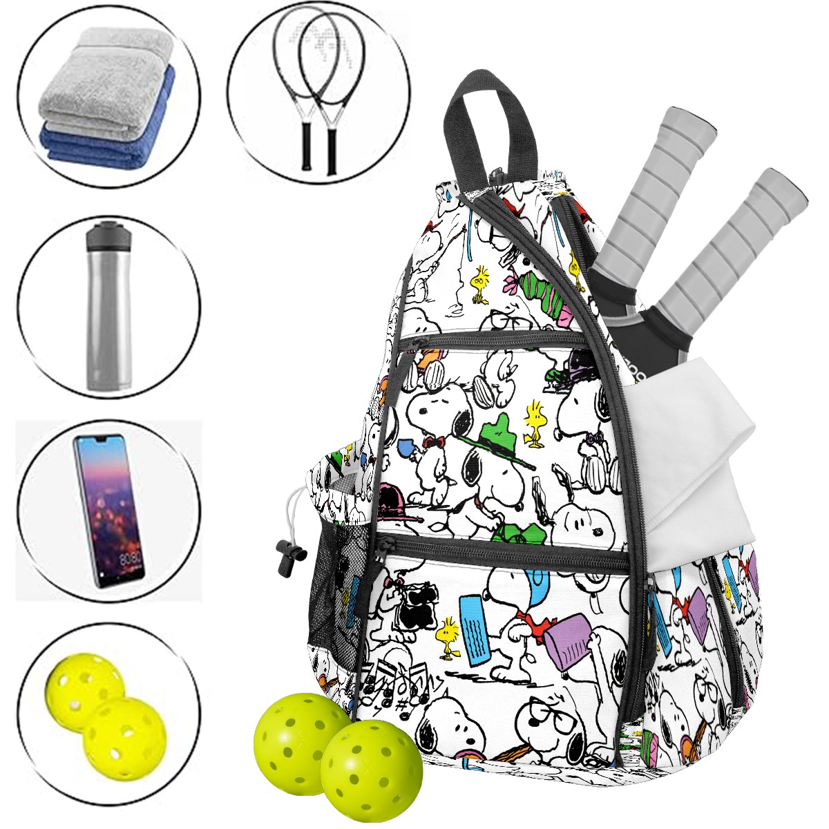 Multifunctional Pickleball Bag,Large Capacity Sports Pickleball Racket Bag, Water Bottle Holder and Fence Hook,Suitable for Both Men Women -スヌーピー