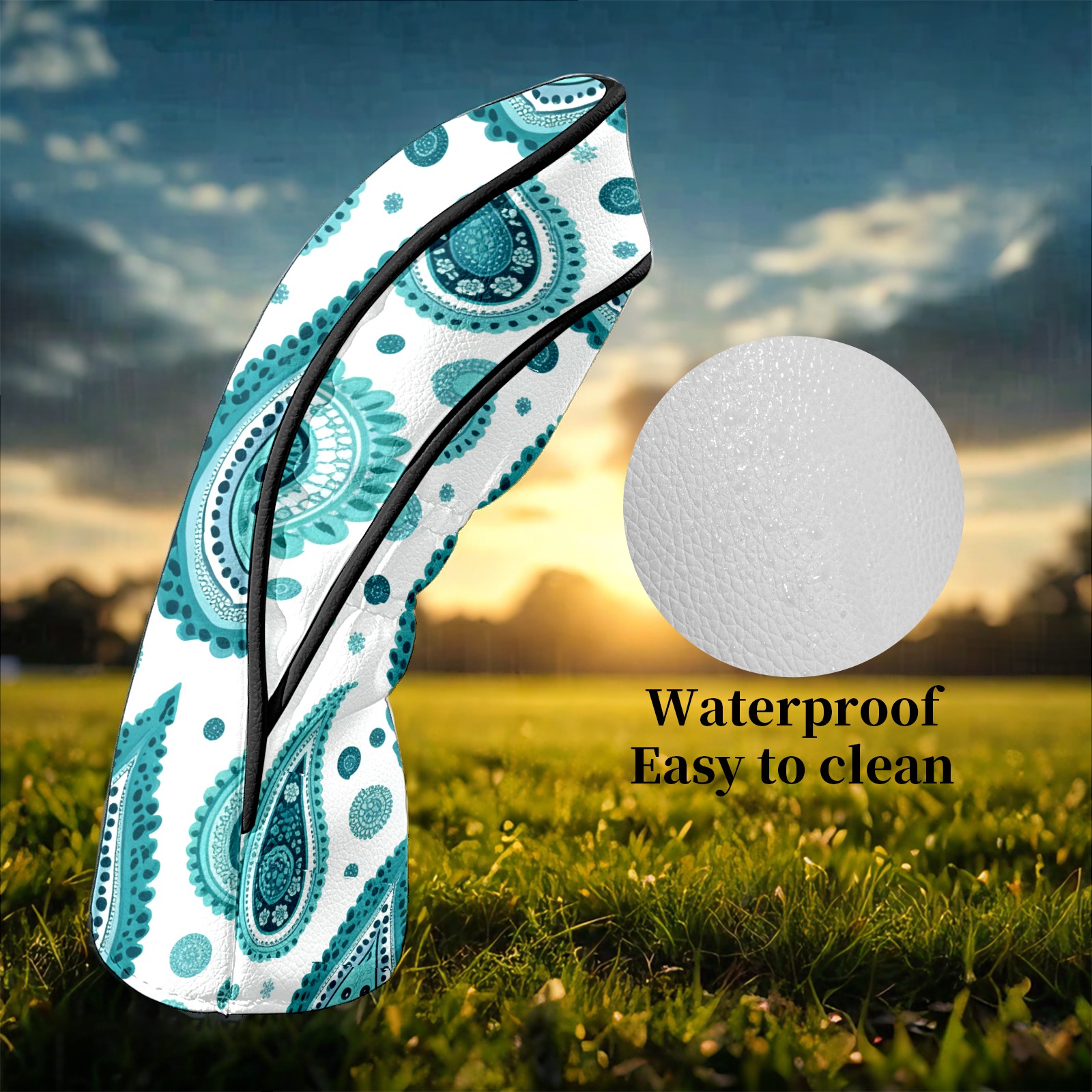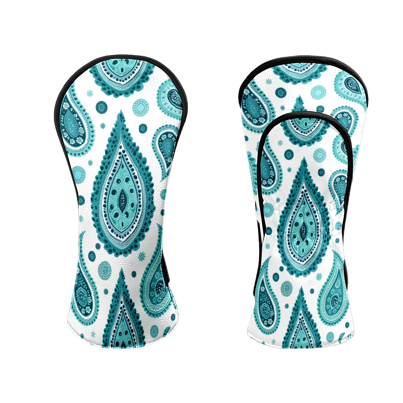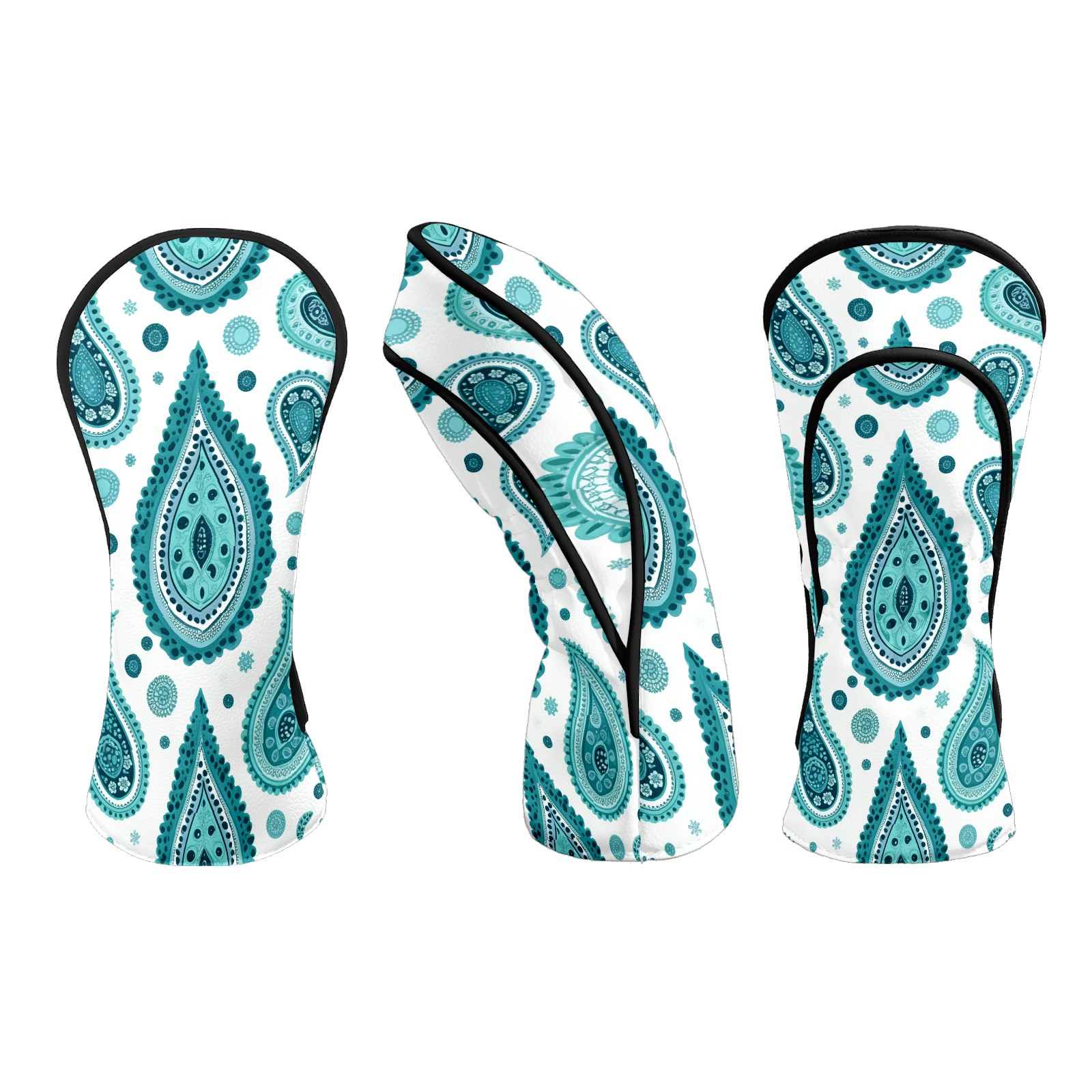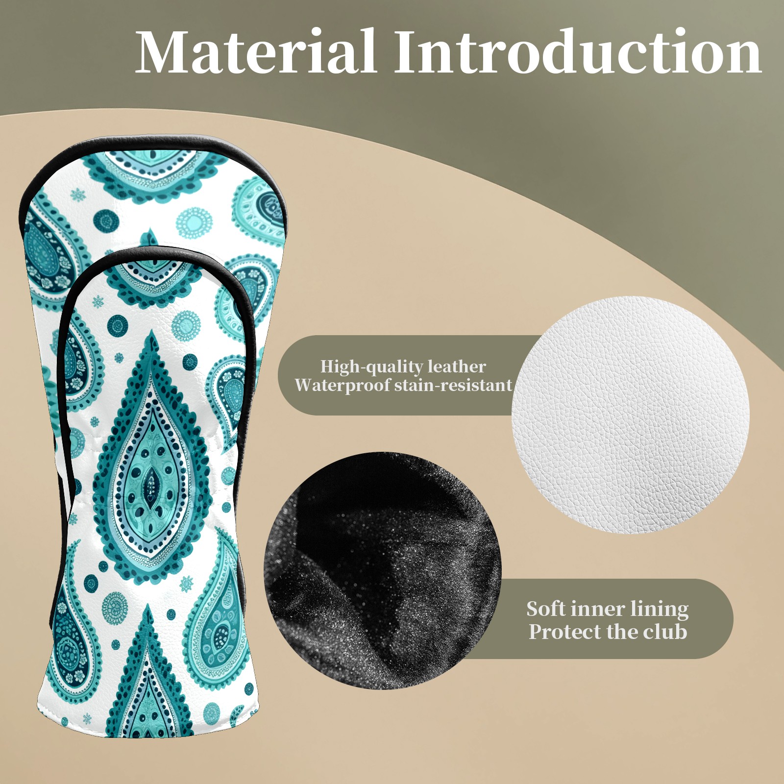 Counullo Golf Club Headcovers - Fresh Paisley Blue Premium PU Leather with Plush Lining for Driver & Fairway Woods, No-Slip Fit for All Clubs, Novelty Gift for Men & Women