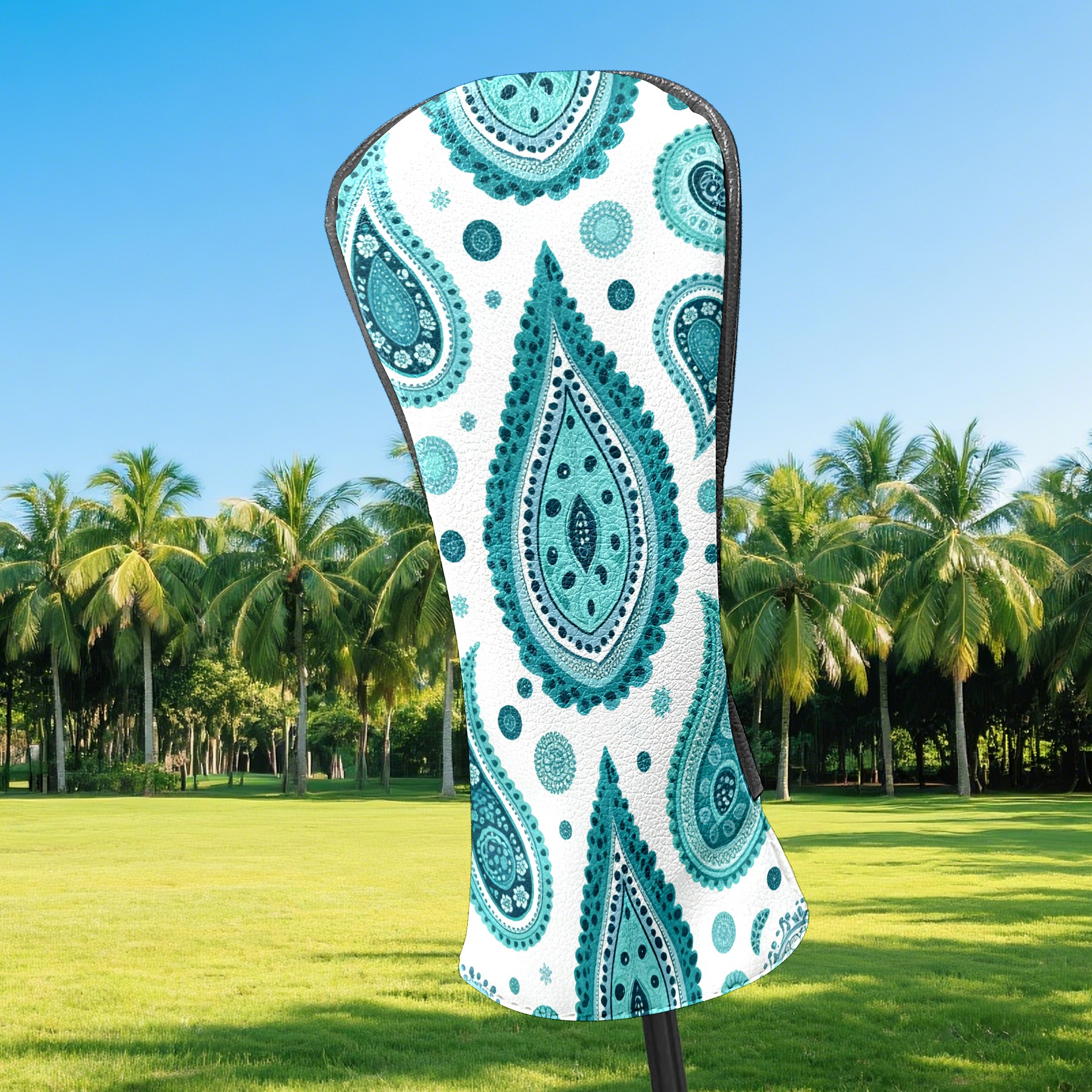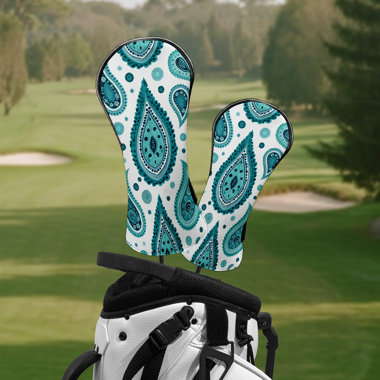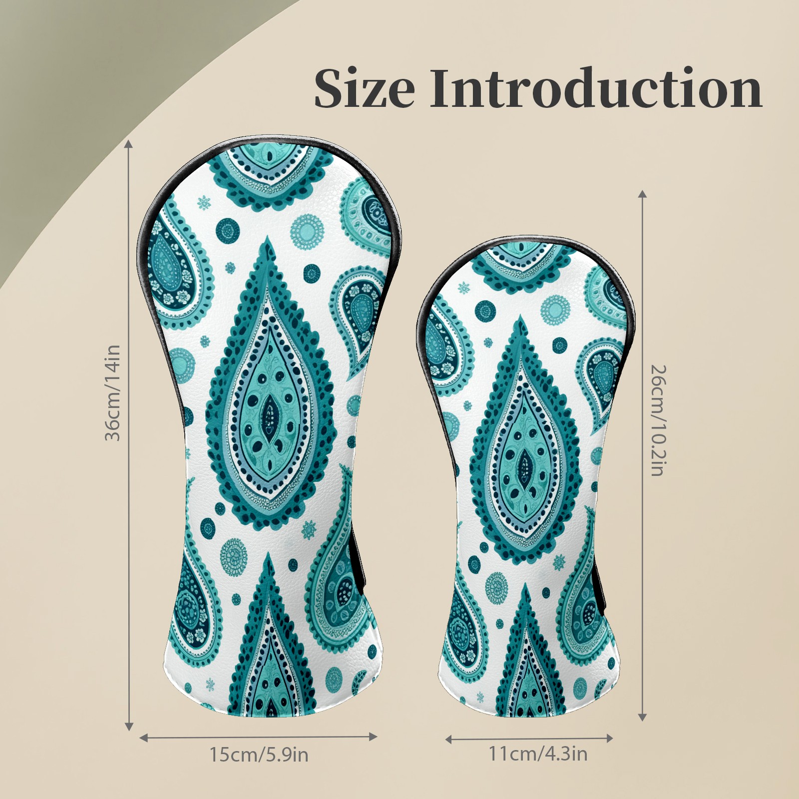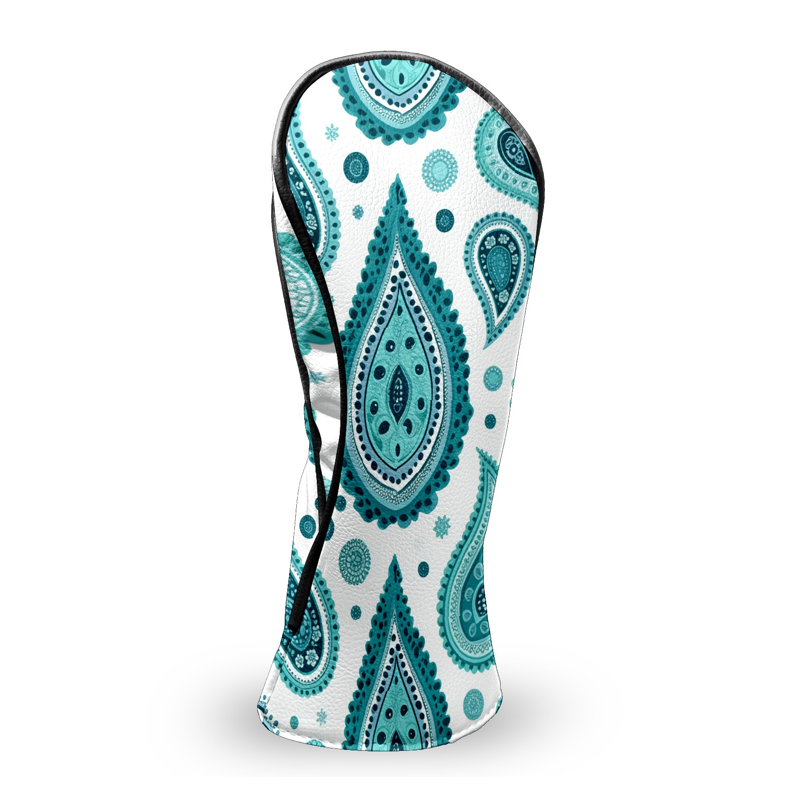 Counullo Golf Club Headcovers - Fresh Paisley Blue Premium PU Leather with Plush Lining for Driver & Fairway Woods, No-Slip Fit for All Clubs, Novelty Gift for Men & Women