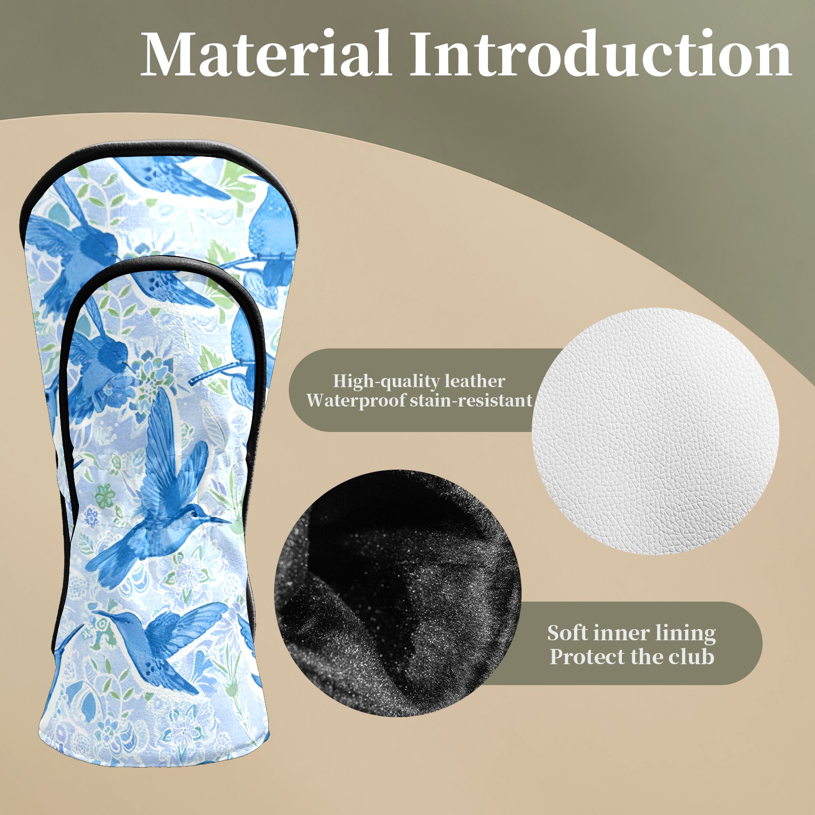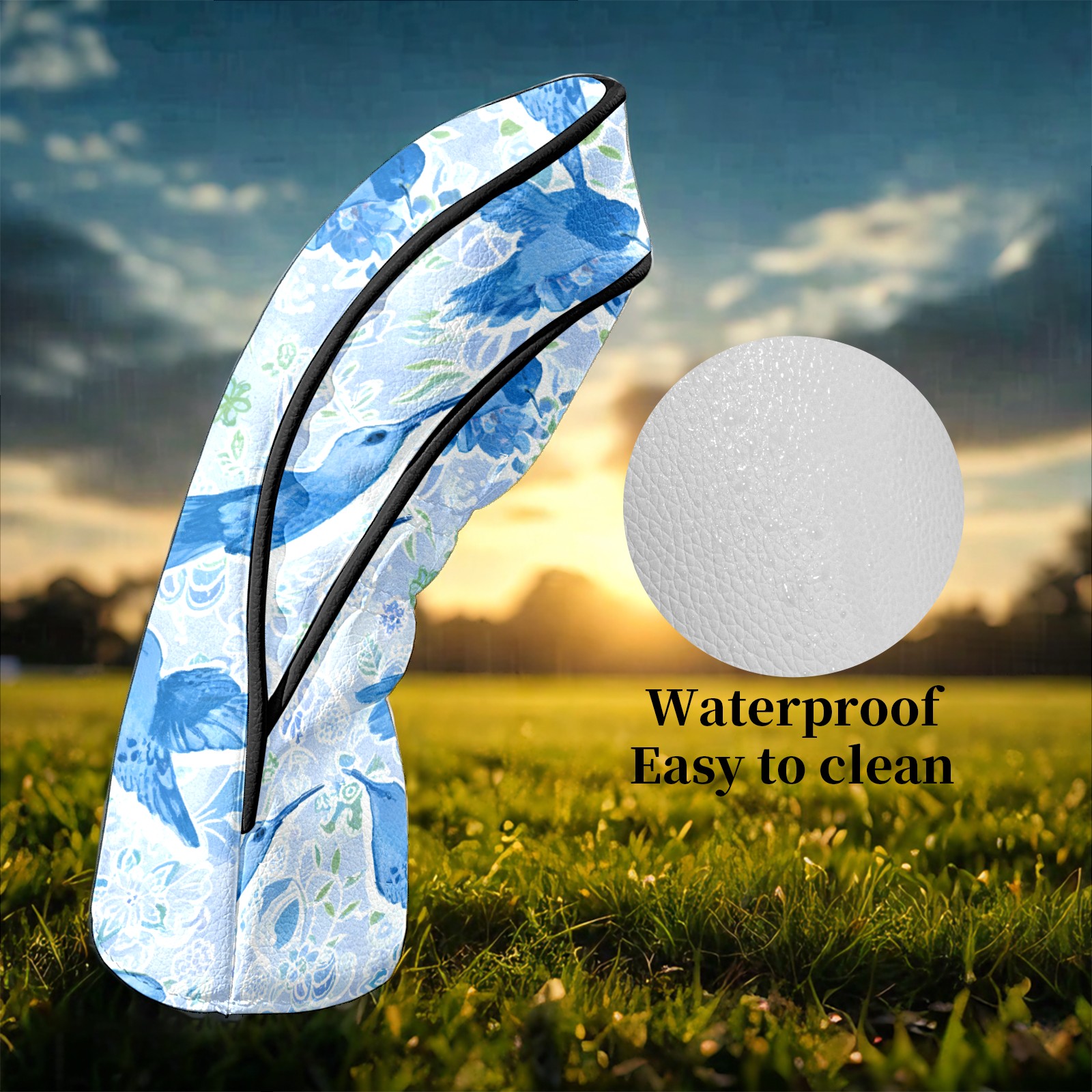 Counullo Golf Club Headcovers - Quiet Crane Blue Premium PU Leather with Plush Lining for Driver & Fairway Woods, No-Slip Fit for All Clubs, Novelty Gift for Men & Women
