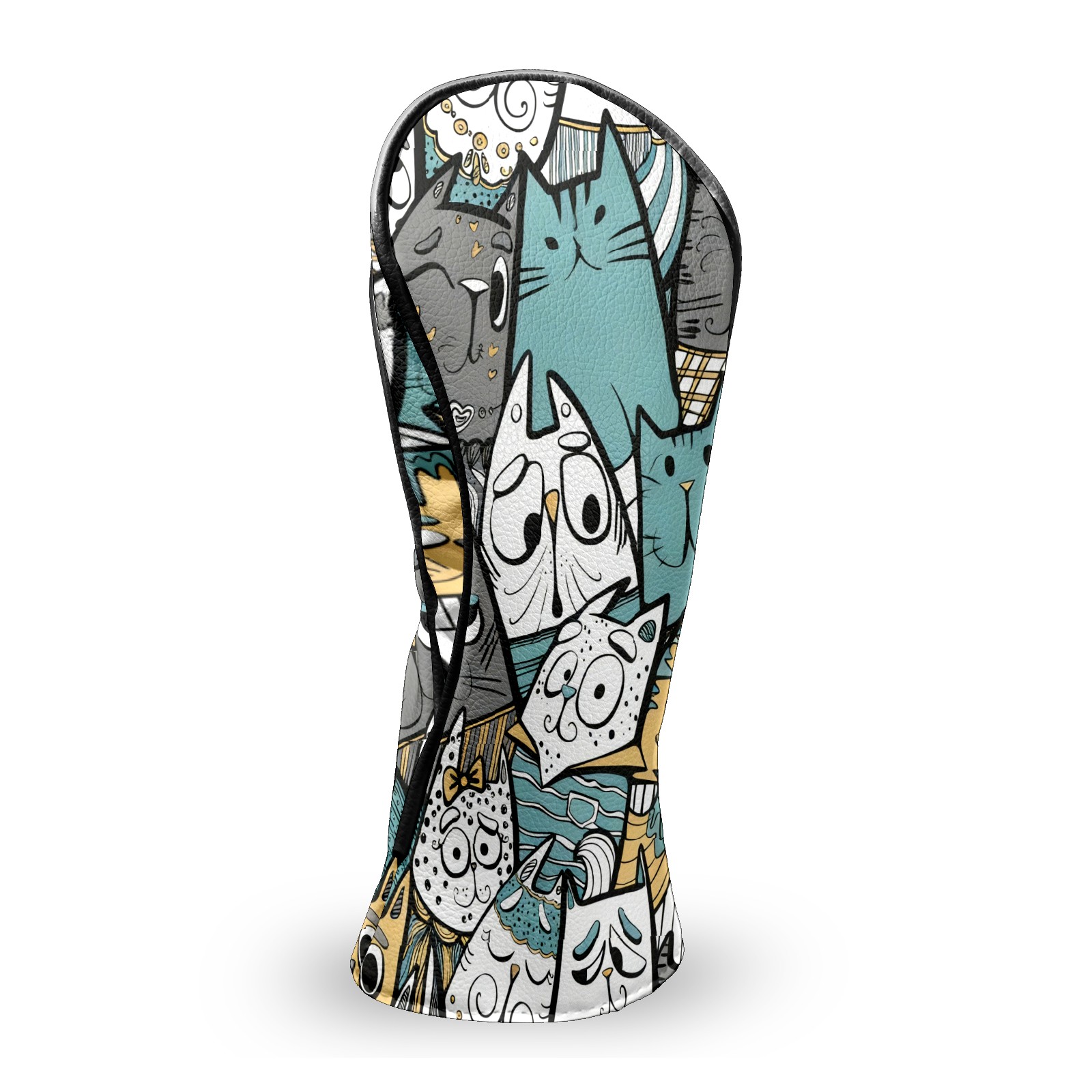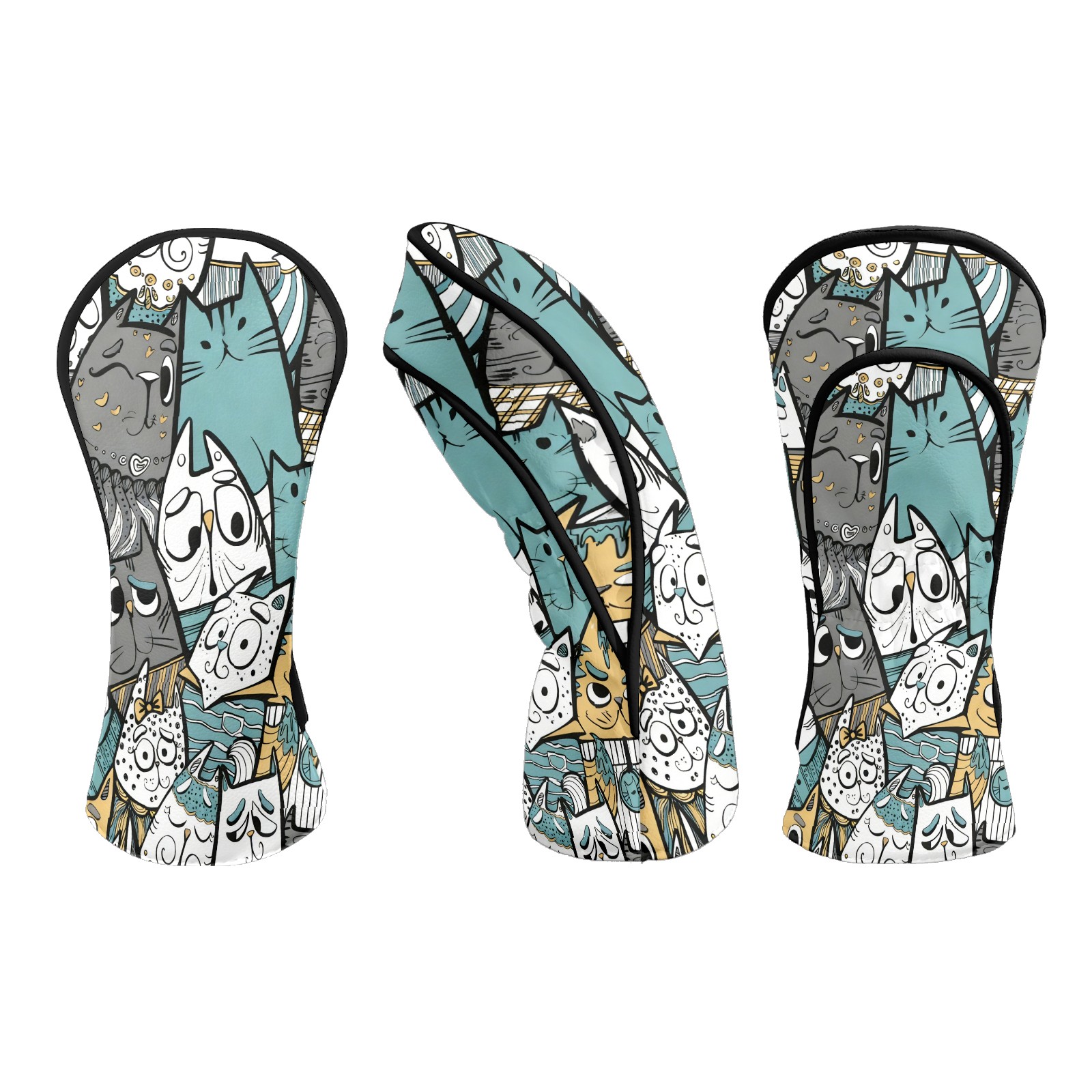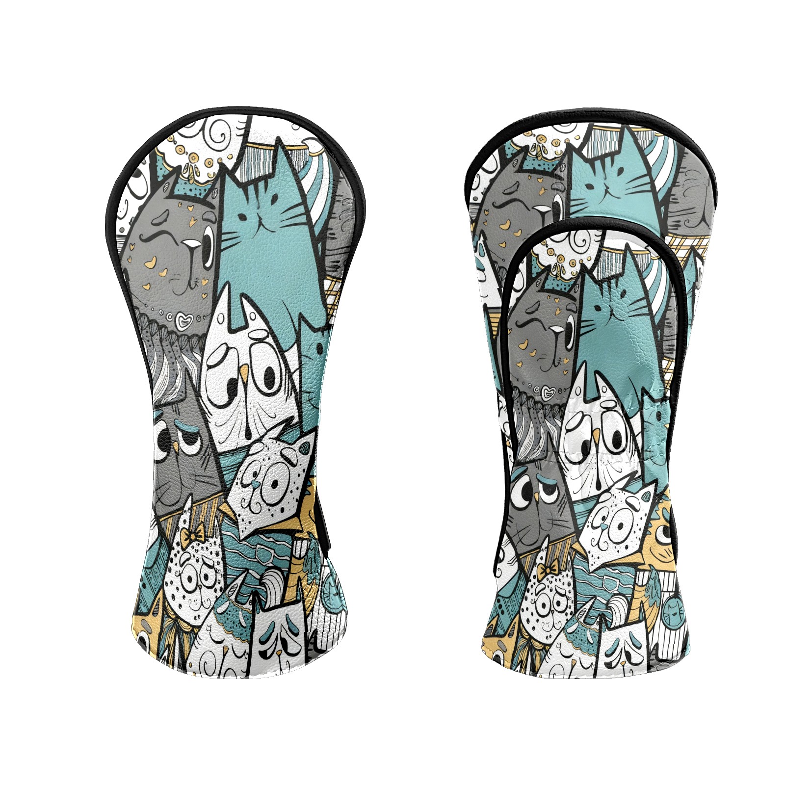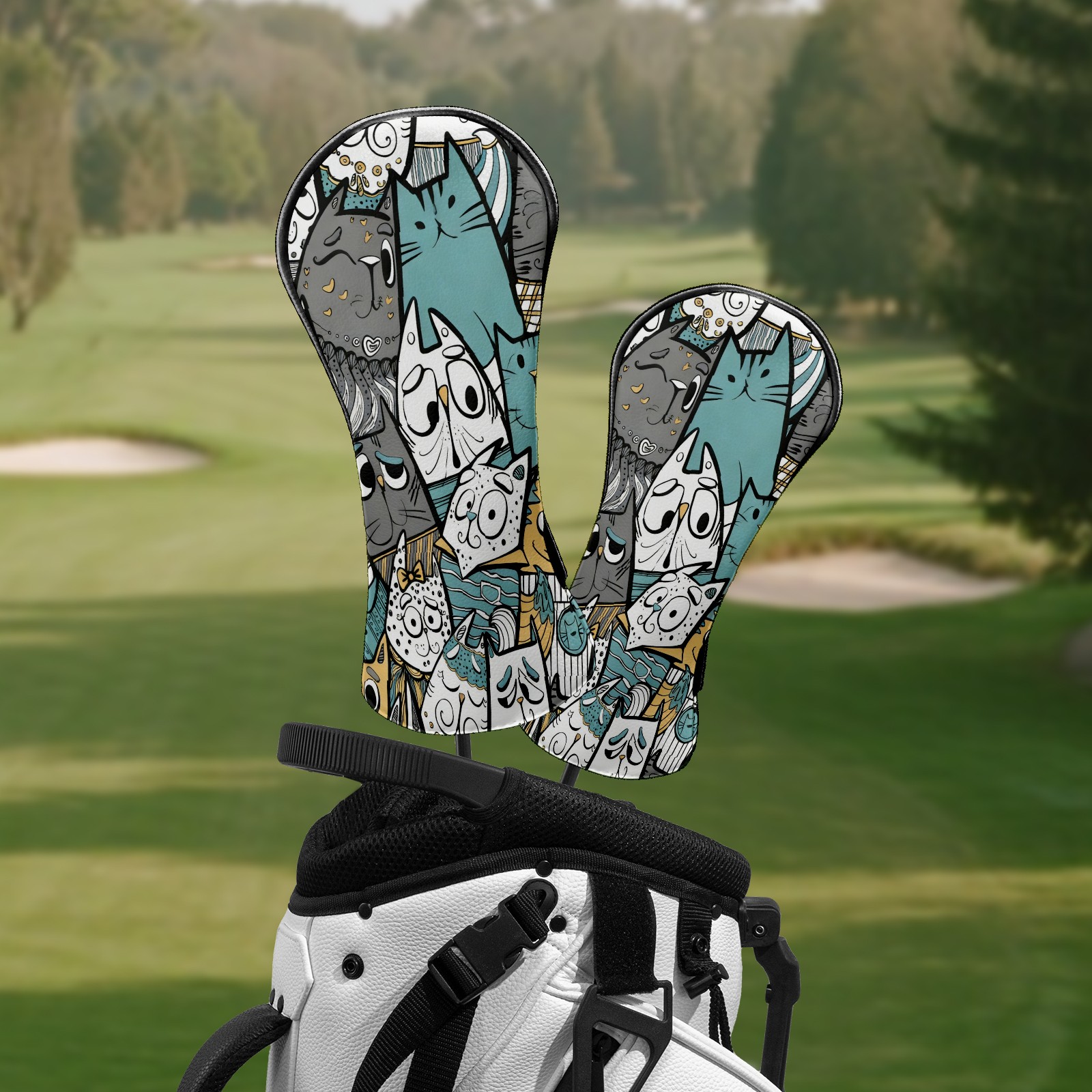 Counullo Golf Club Headcovers - Cute Cat Gray Premium PU Leather with Plush Lining for Driver & Fairway Woods, No-Slip Fit for All Clubs, Novelty Gift for Men & Women