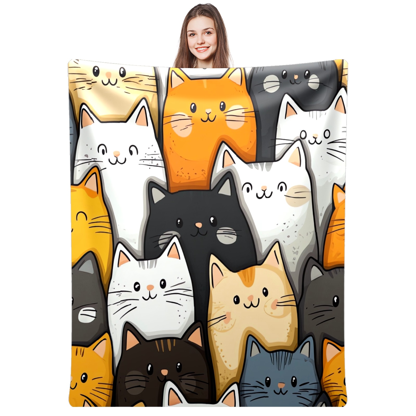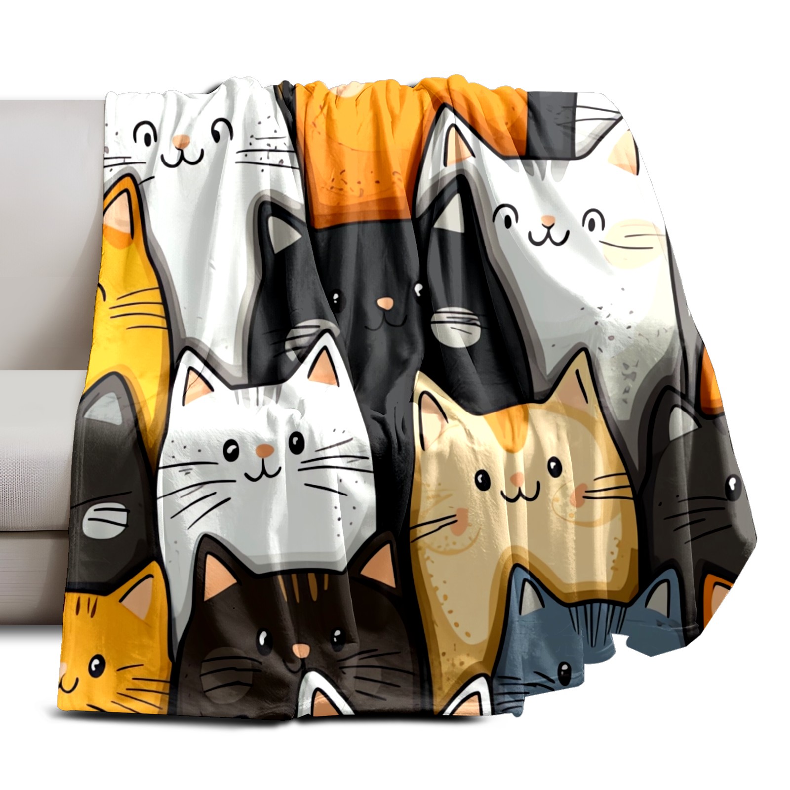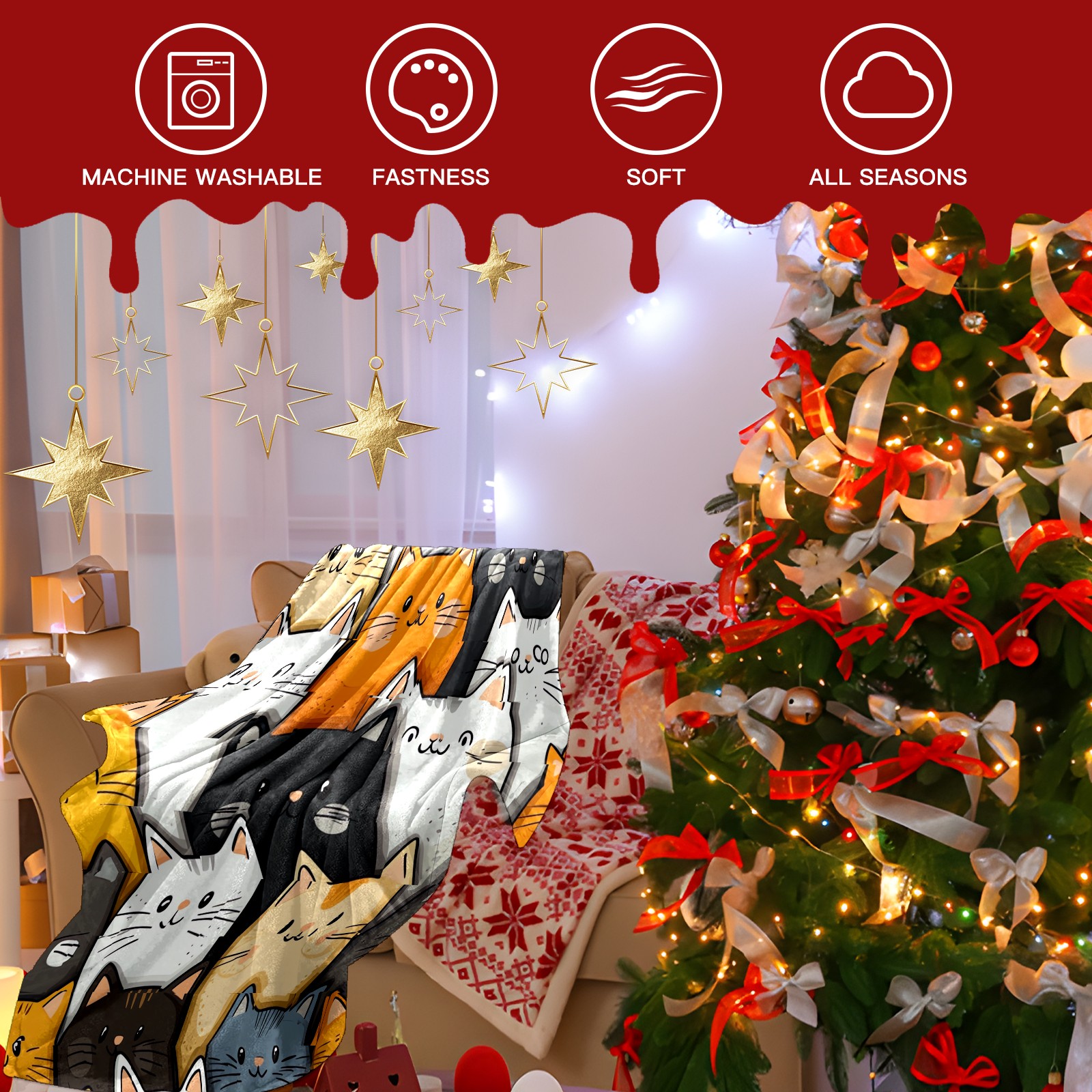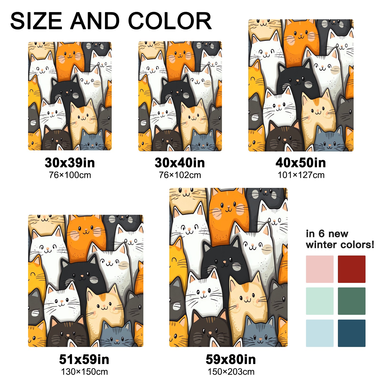Flannel Blanket, Ultra-Soft Comfortable Home Decor Rug, The Perfect Comfort Gift for Both Men Women, Suitable for Beds, Sofas, Loungewear, and Travel 30x39in(Playful, Multi-colored Cat)
