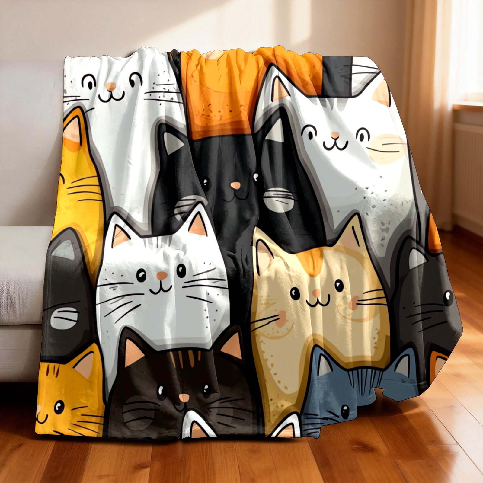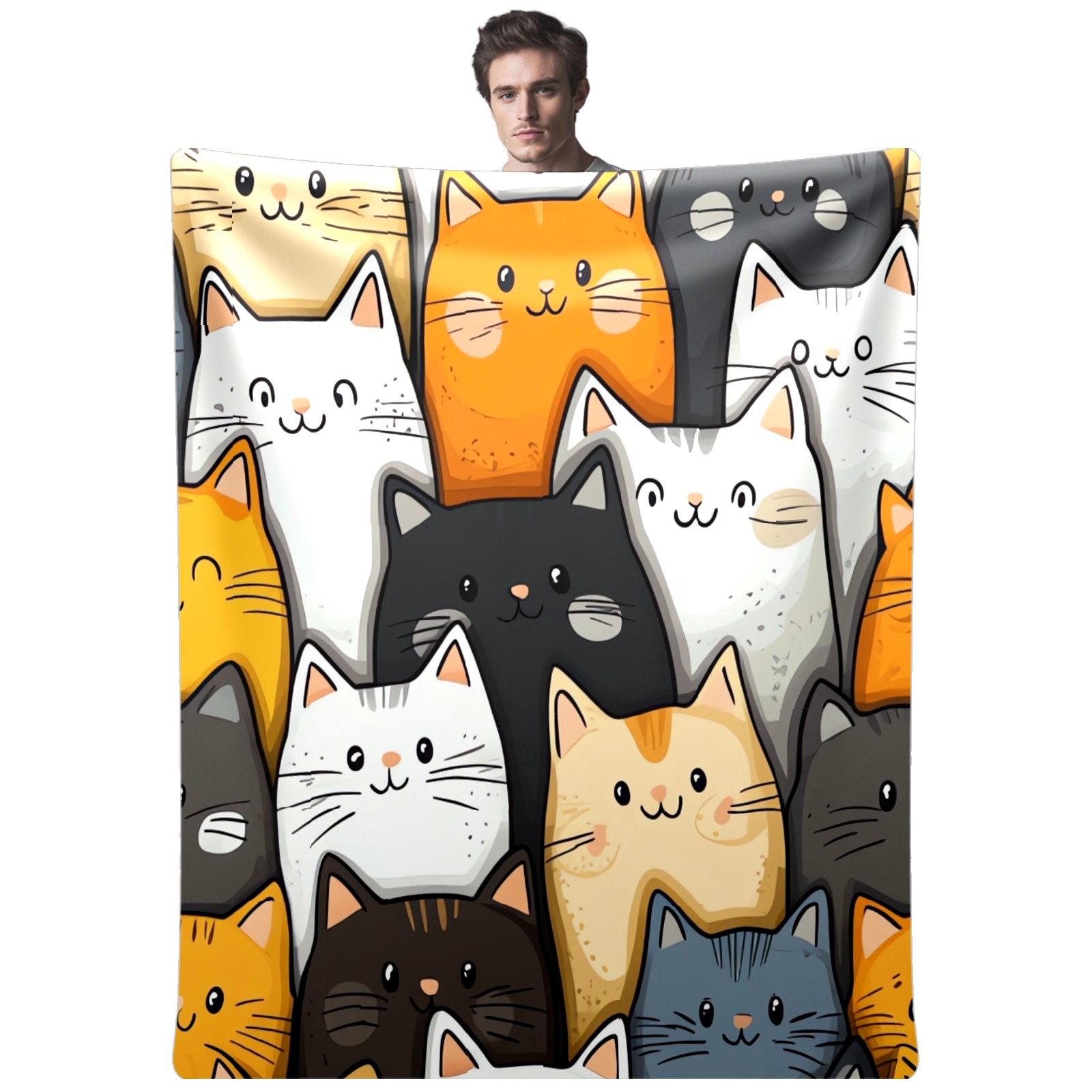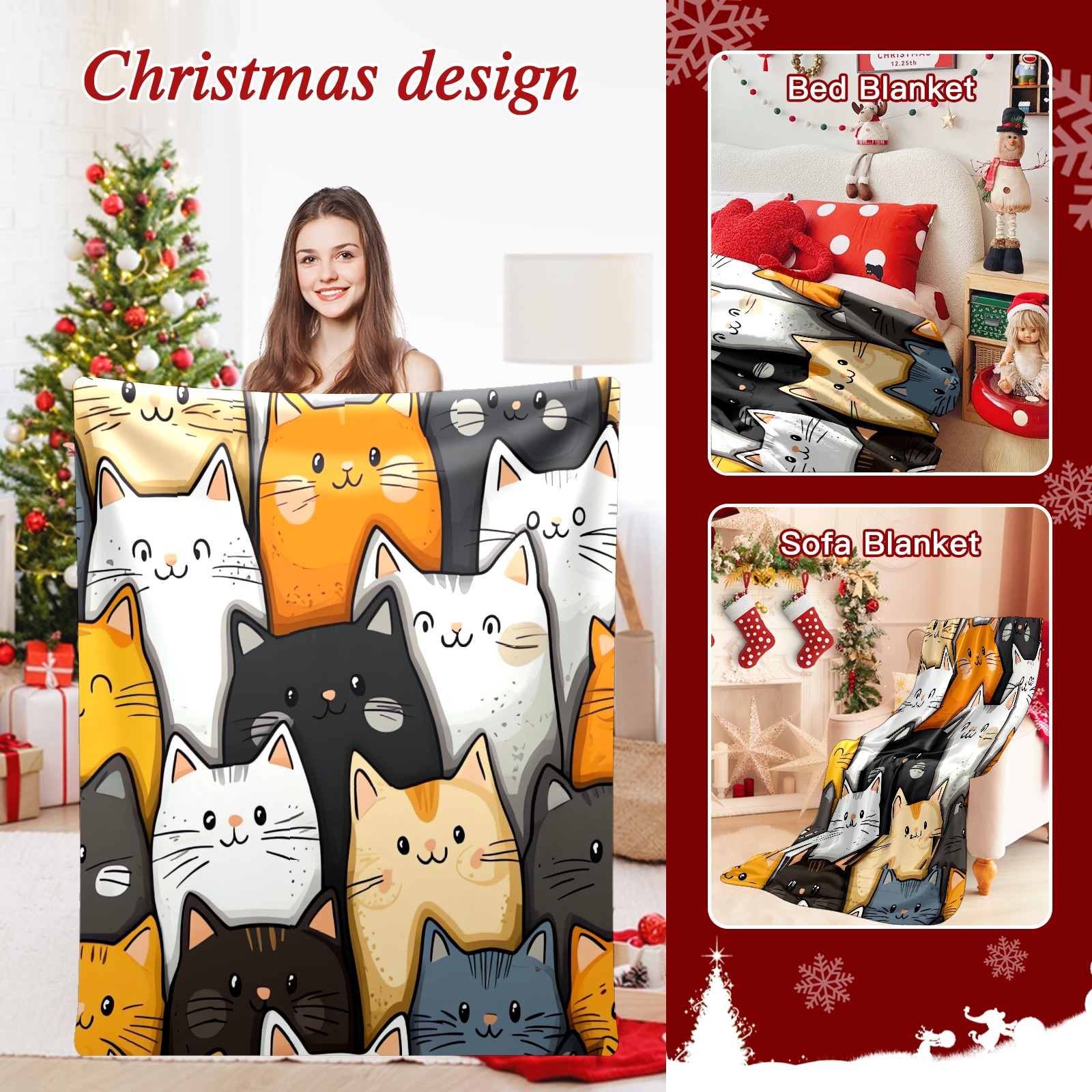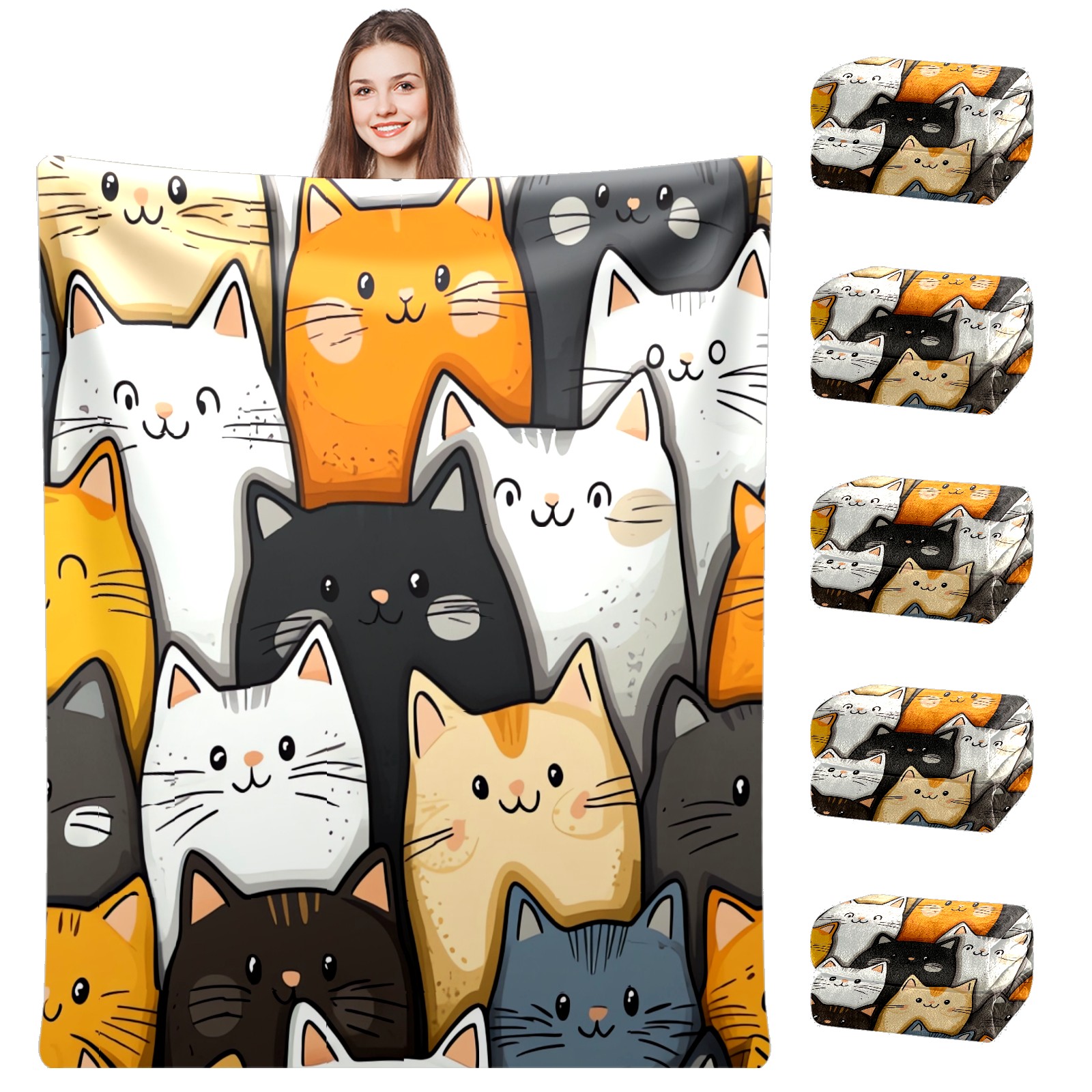 Flannel Blanket, Ultra-Soft Comfortable Home Decor Rug, The Perfect Comfort Gift for Both Men Women, Suitable for Beds, Sofas, Loungewear, and Travel 30x39in(Playful, Multi-colored Cat)