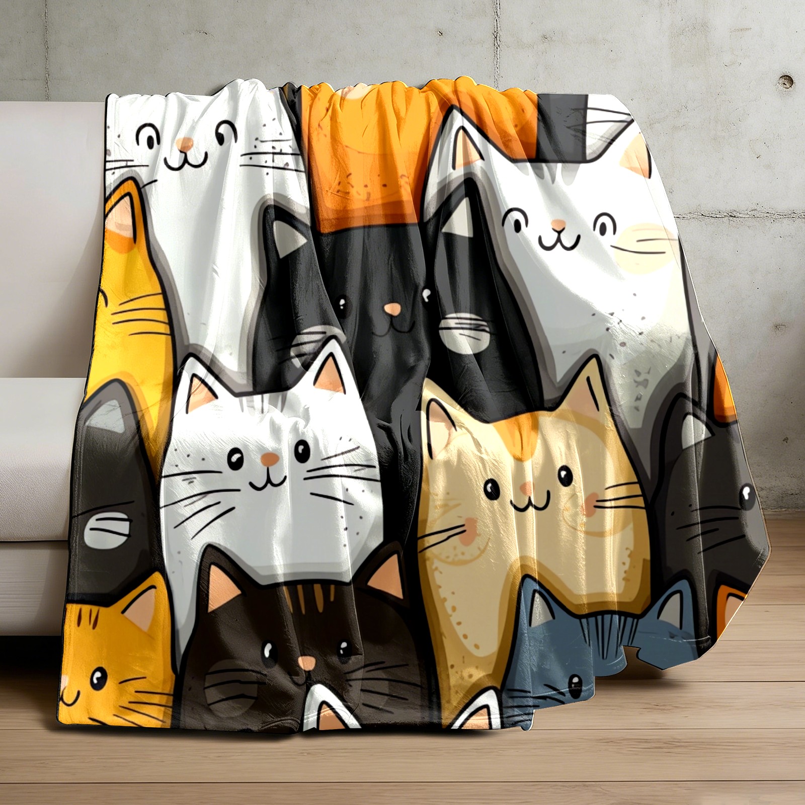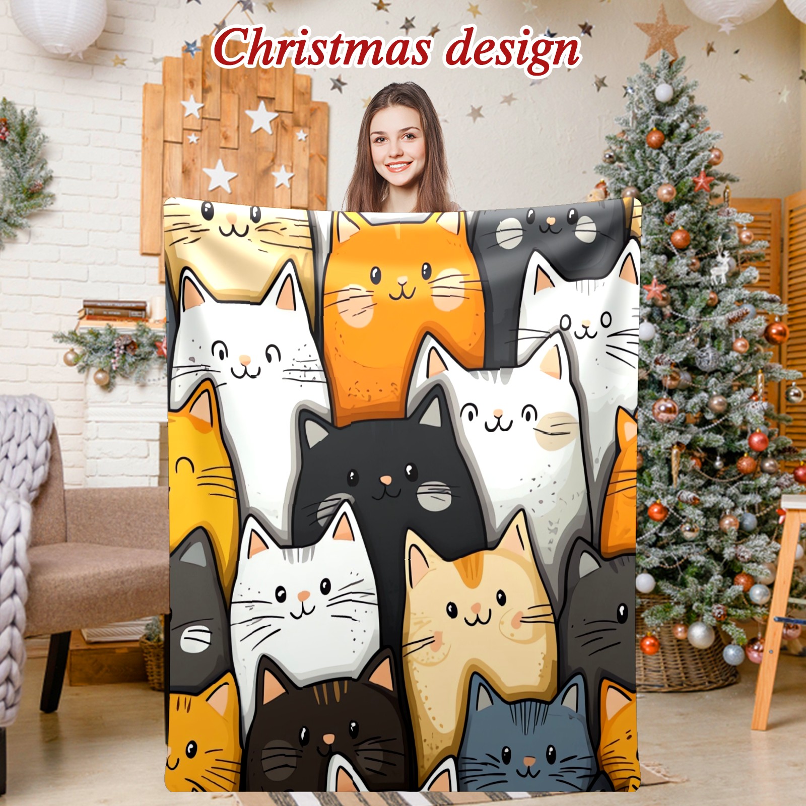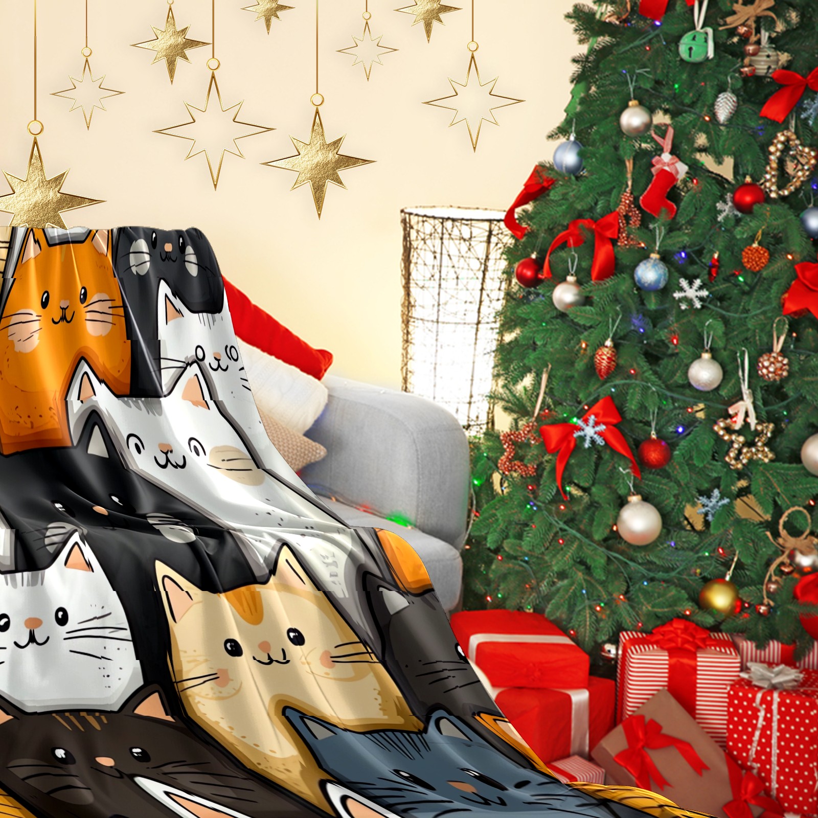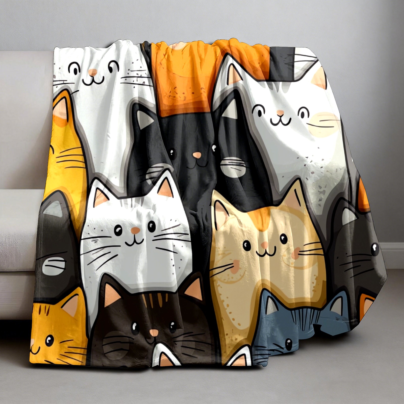 Flannel Blanket, Ultra-Soft Comfortable Home Decor Rug, The Perfect Comfort Gift for Both Men Women, Suitable for Beds, Sofas, Loungewear, and Travel 30x39in(Playful, Multi-colored Cat)