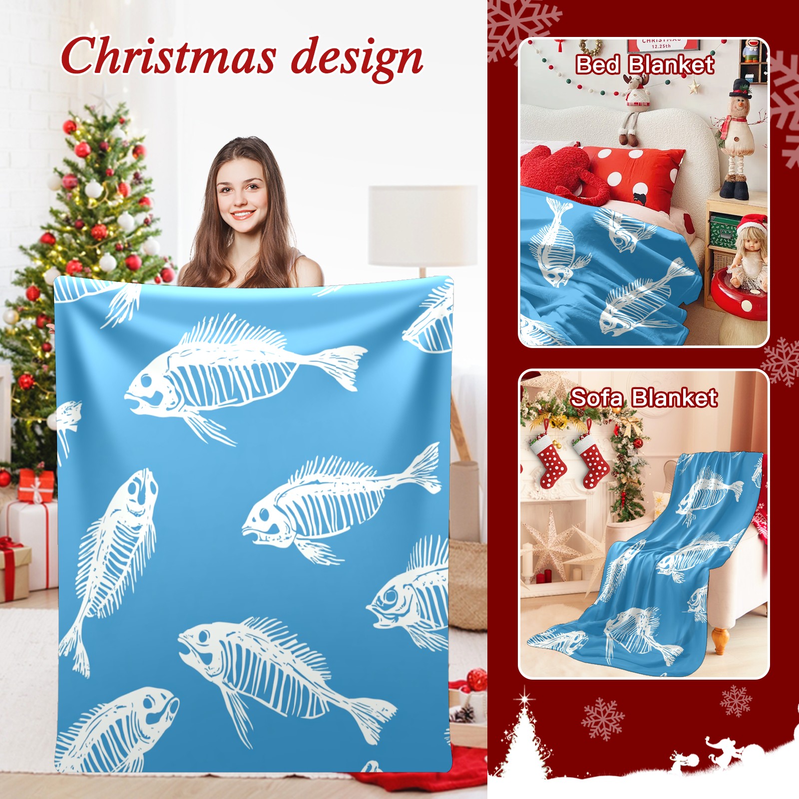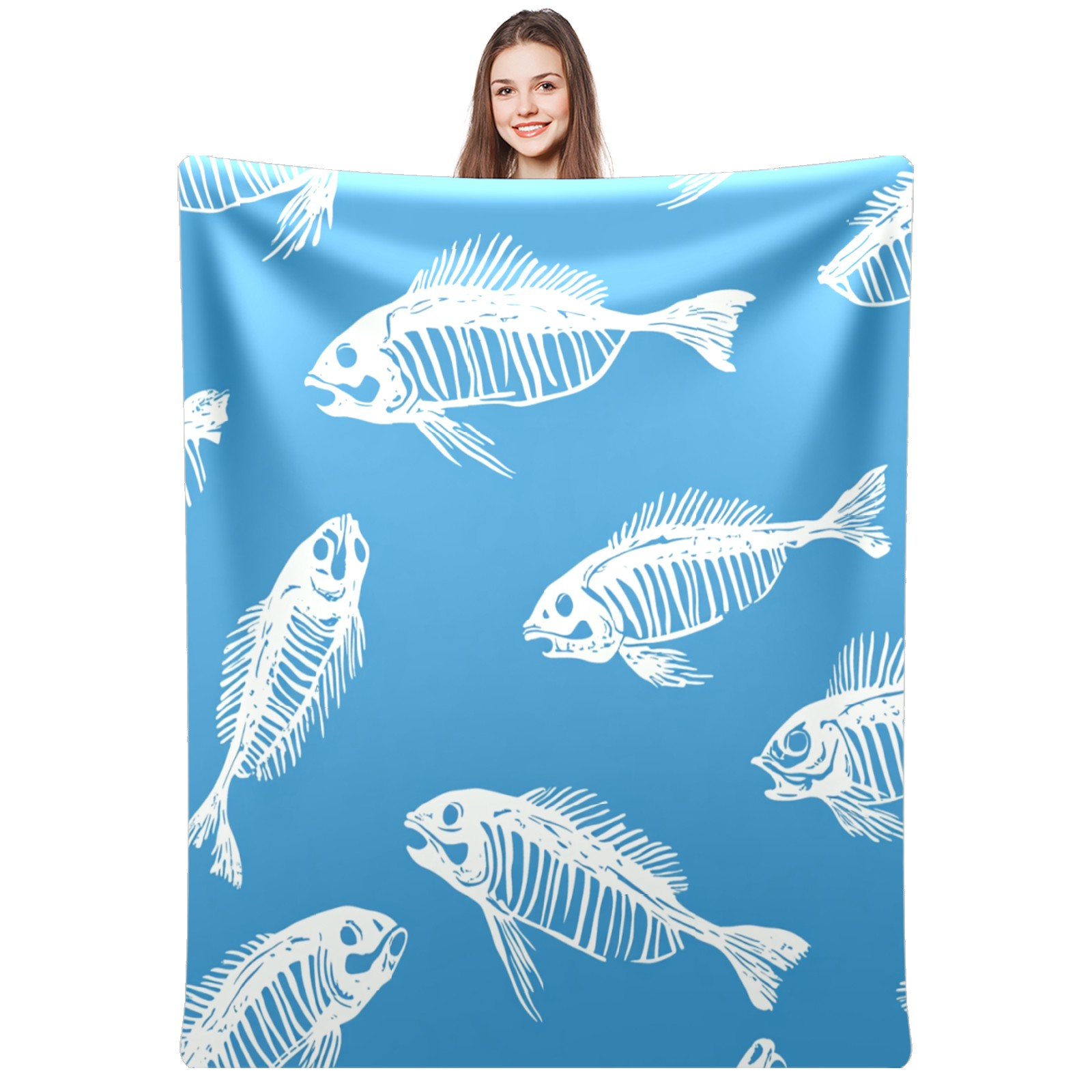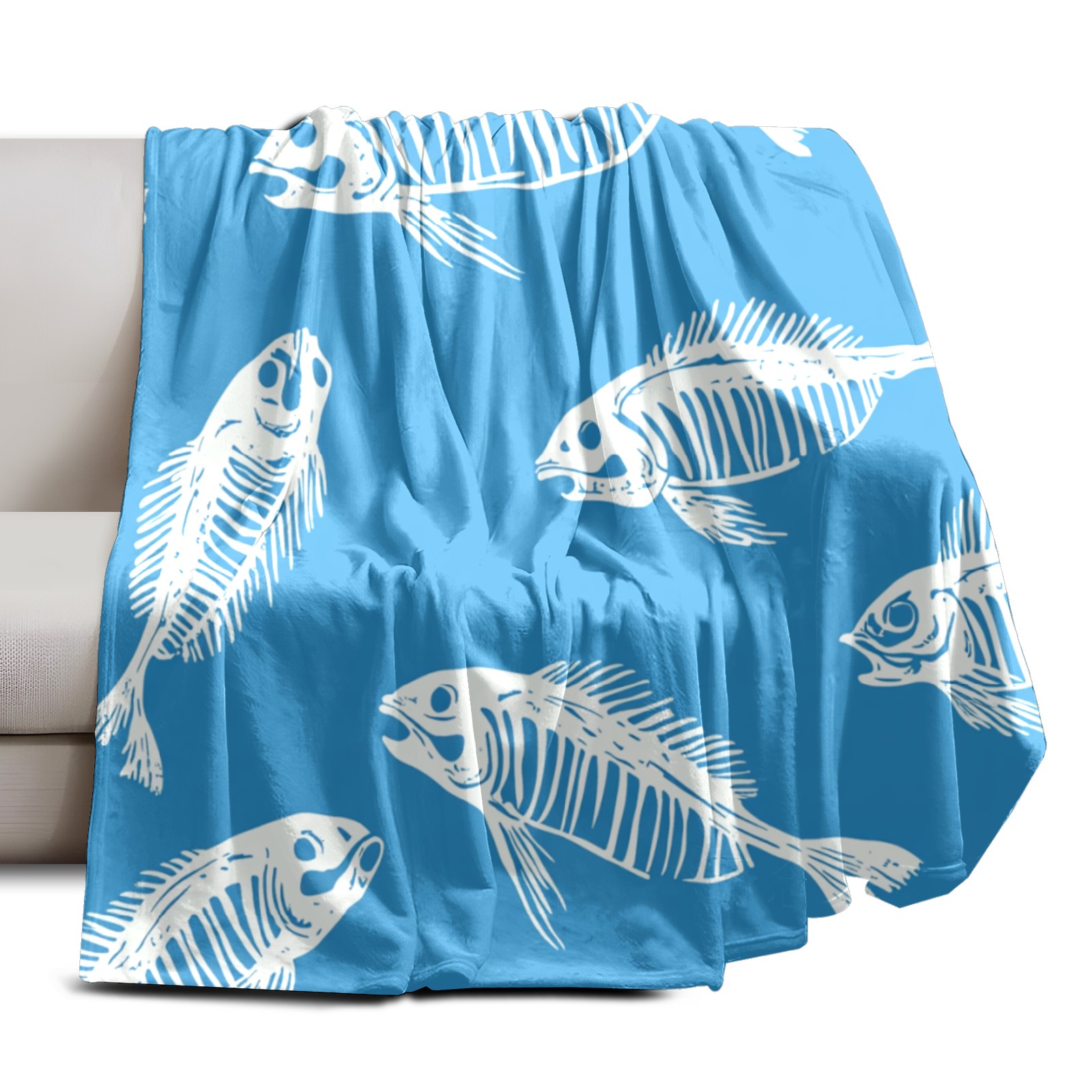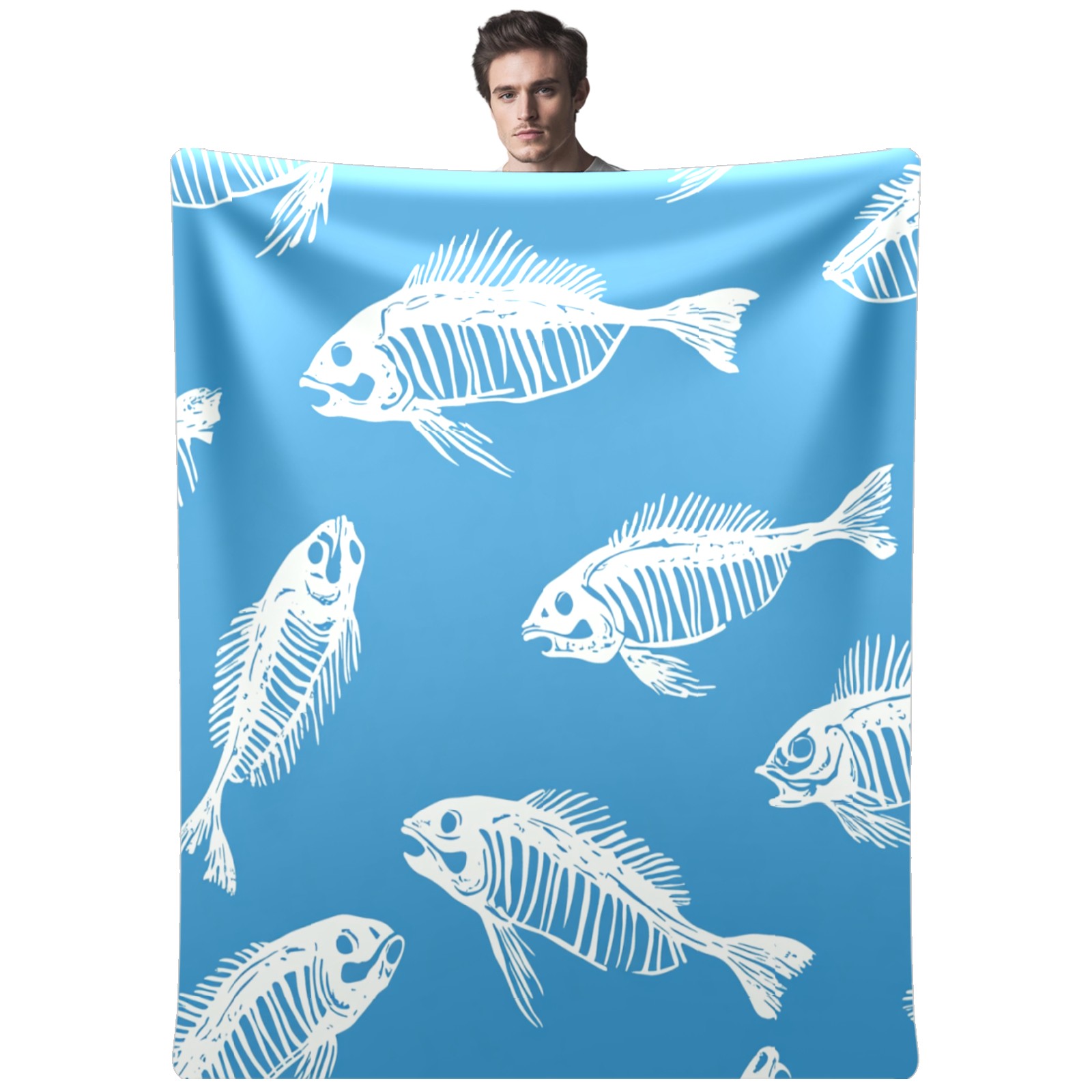 Flannel Blanket, Ultra-Soft Comfortable Home Decor Rug, The Perfect Comfort Gift for Both Men Women, Suitable for Beds, Sofas, Loungewear, and Travel 30x39in(Fish Bones)