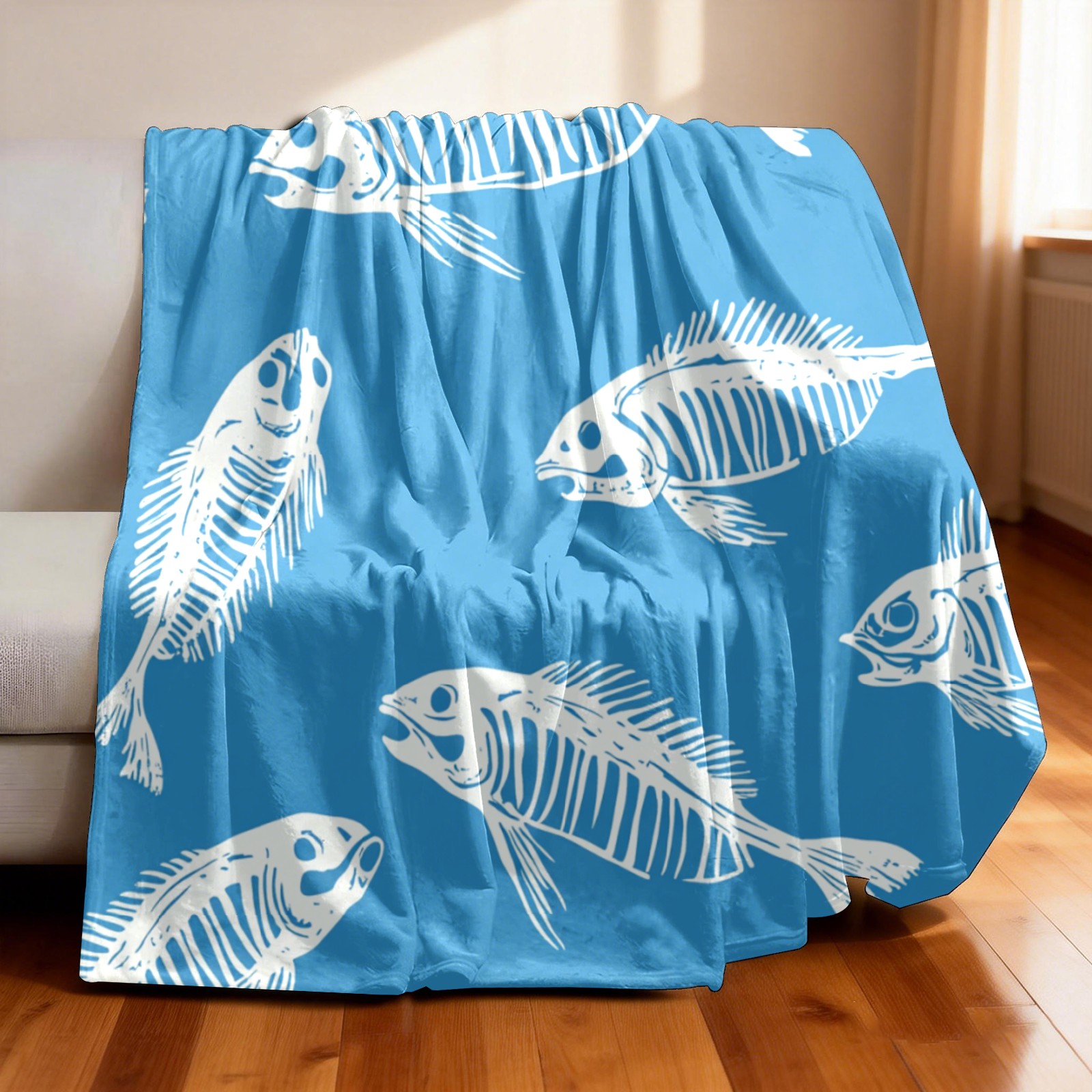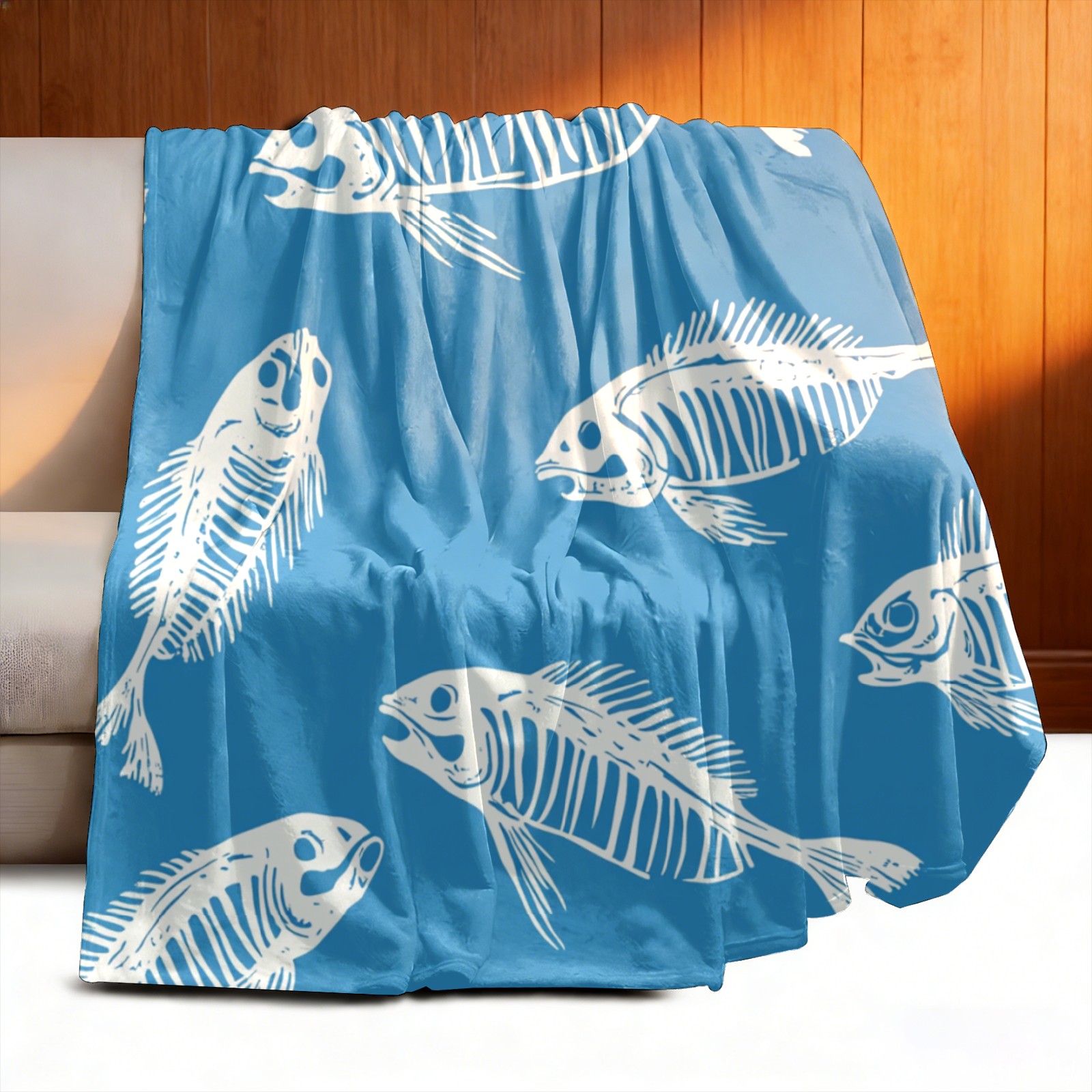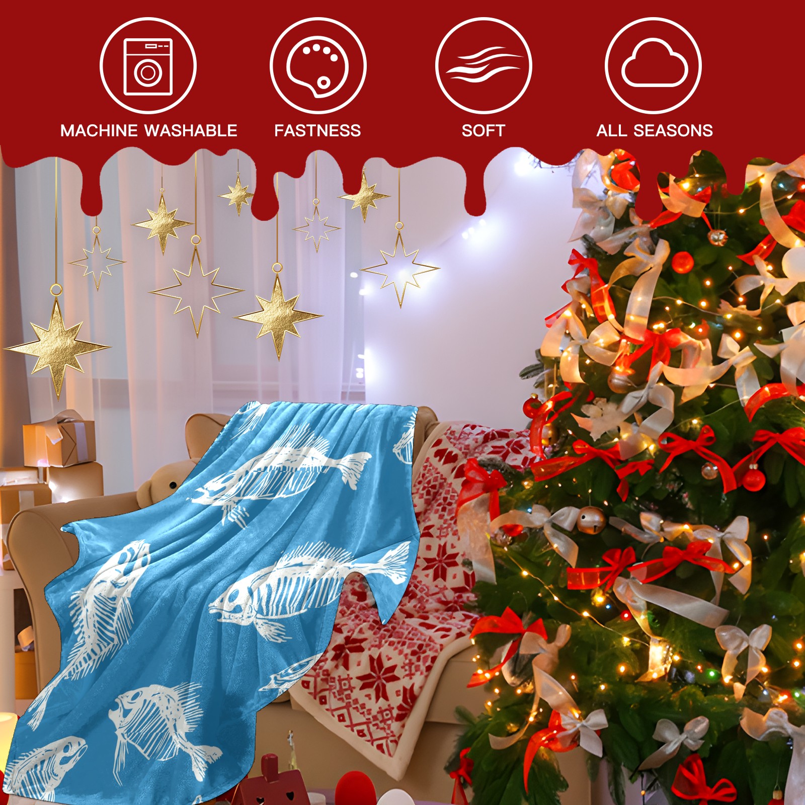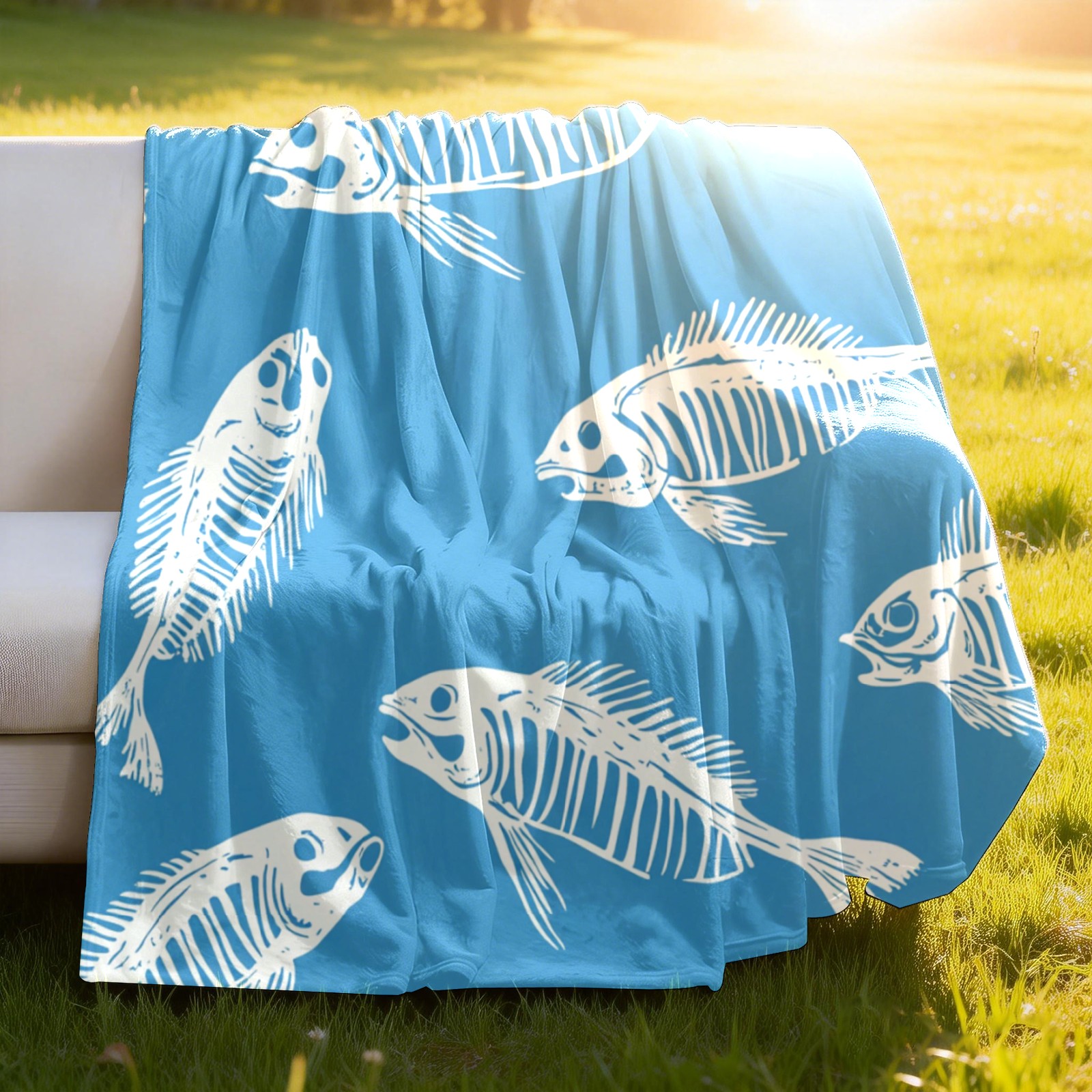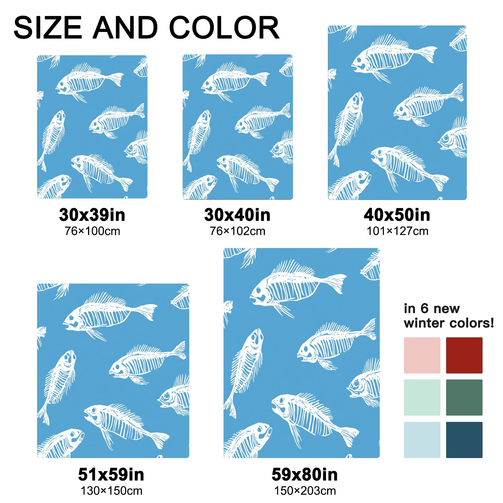 Flannel Blanket, Ultra-Soft Comfortable Home Decor Rug, The Perfect Comfort Gift for Both Men Women, Suitable for Beds, Sofas, Loungewear, and Travel 30x39in(Fish Bones)