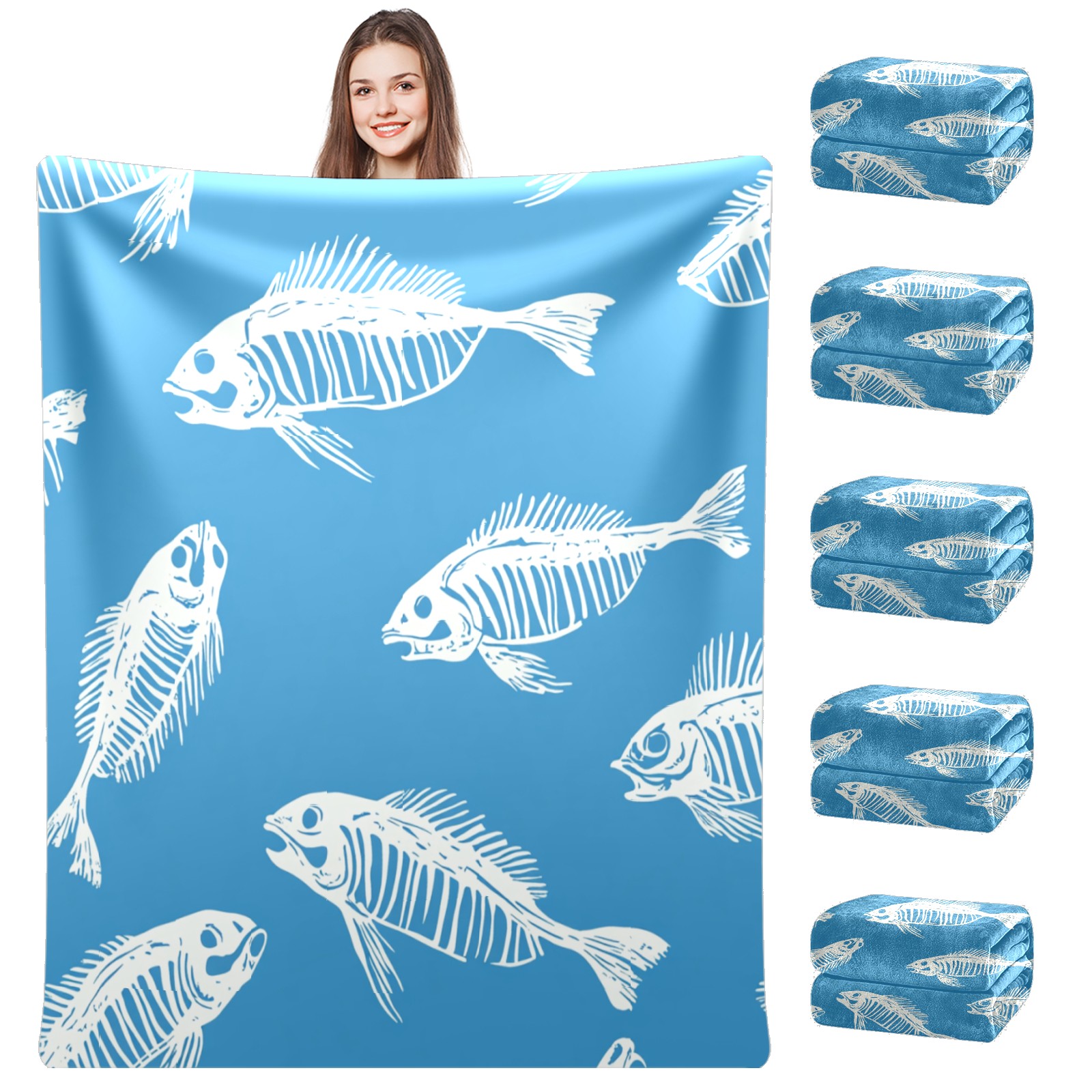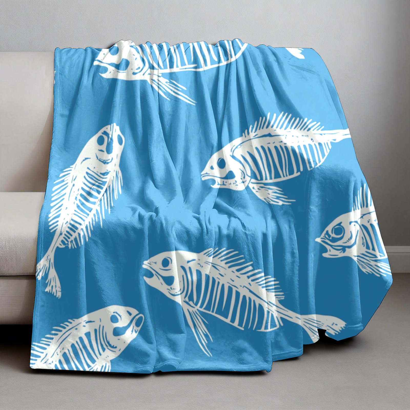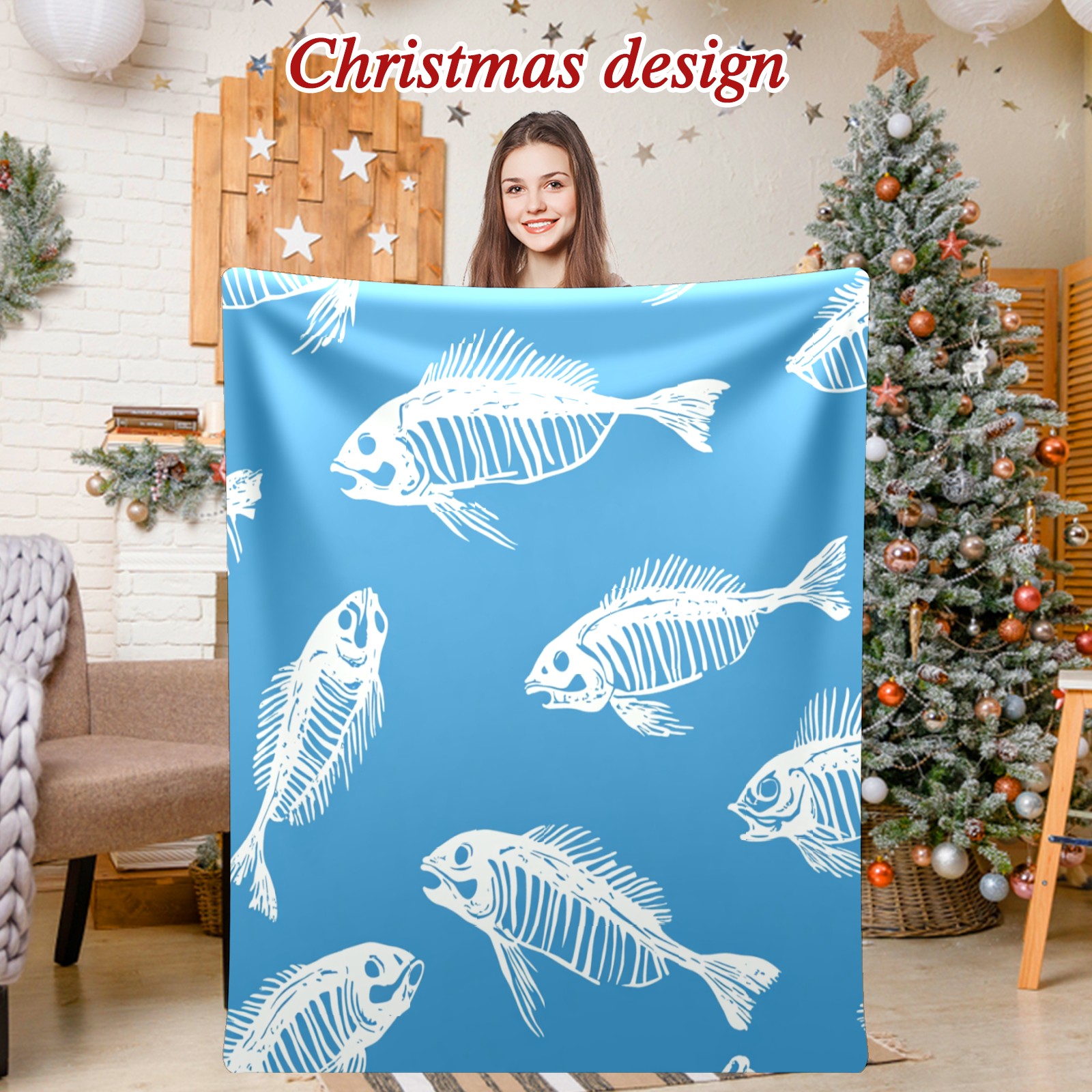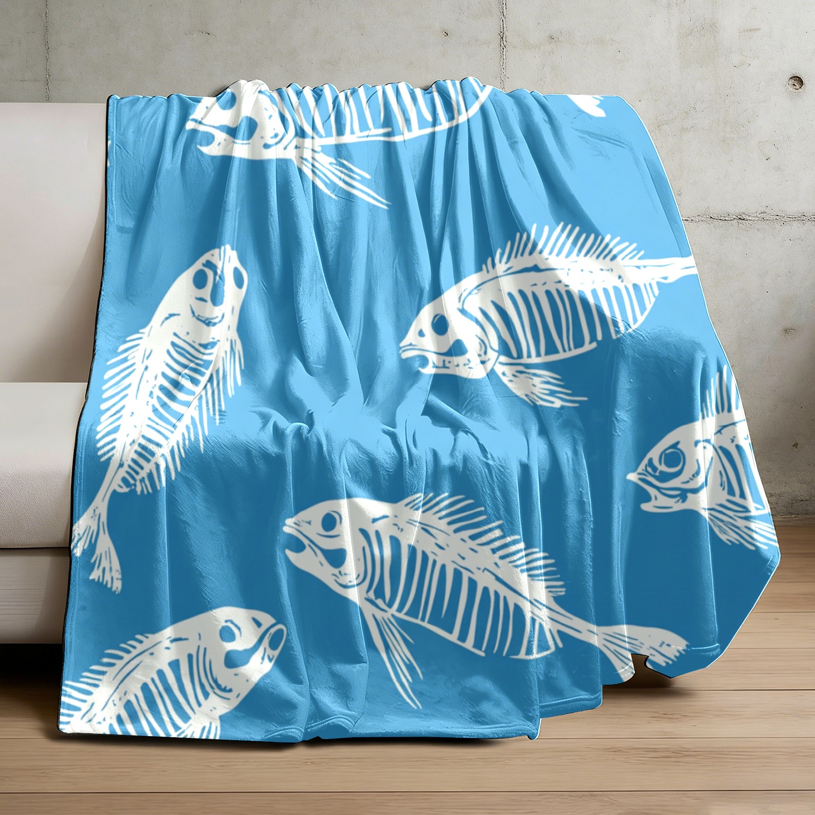 Flannel Blanket, Ultra-Soft Comfortable Home Decor Rug, The Perfect Comfort Gift for Both Men Women, Suitable for Beds, Sofas, Loungewear, and Travel 30x39in(Fish Bones)