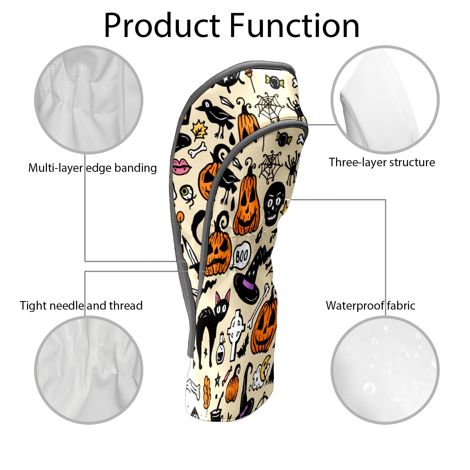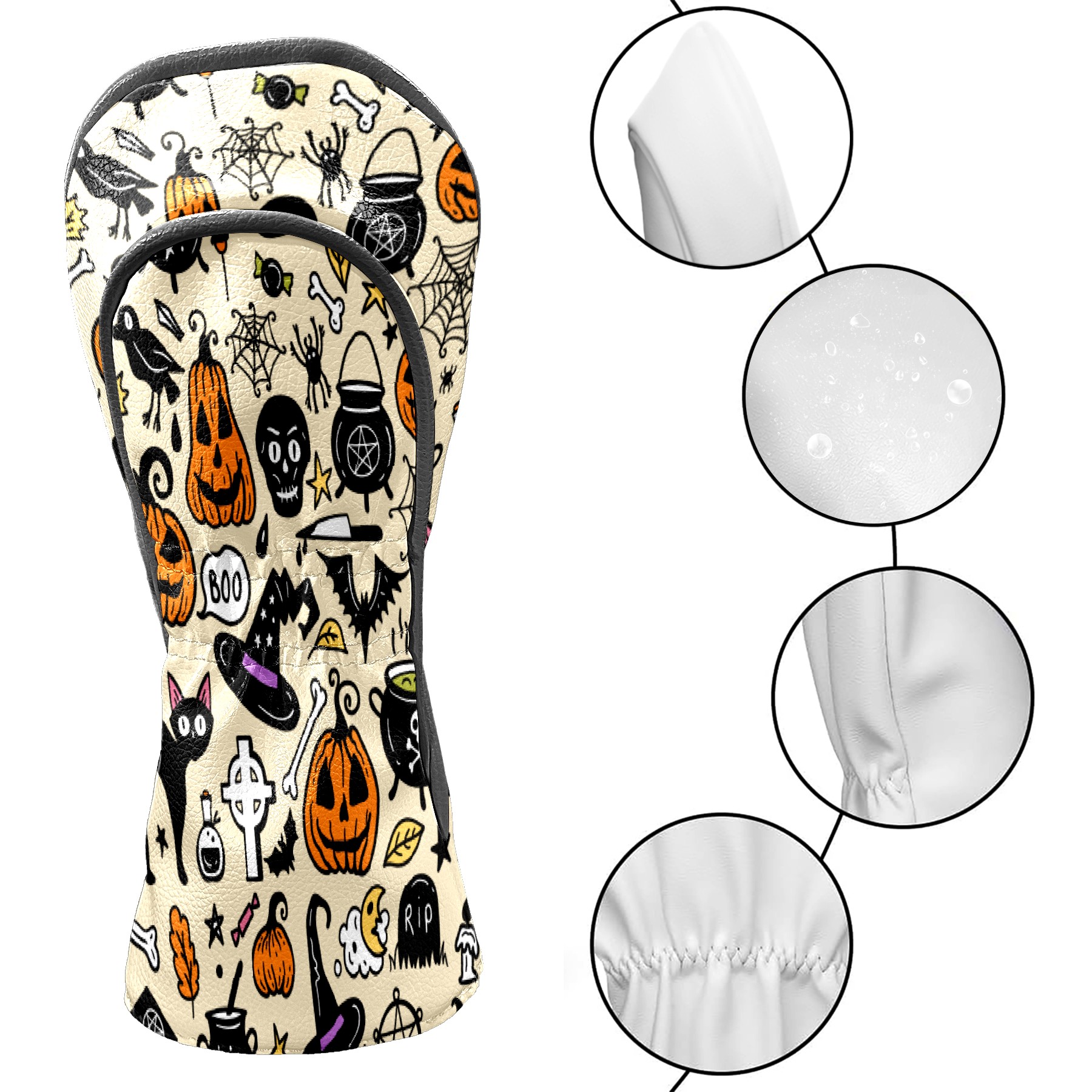 Водонепроницаемый кожаный чехол для головки драйвера и fairway-удара, чехлы для драйверов, гольф-аксессуары для мужчин и женщин, защита от царапин, подарок для гольфистов, чехол для 1/3/5-удара Halloween_pattern_2_08