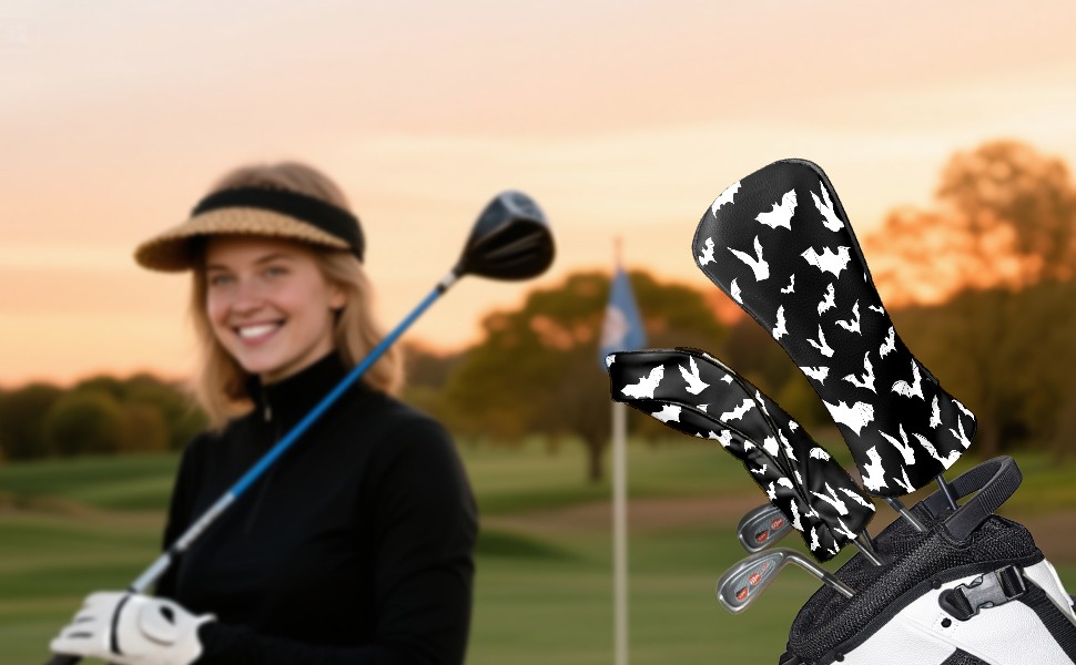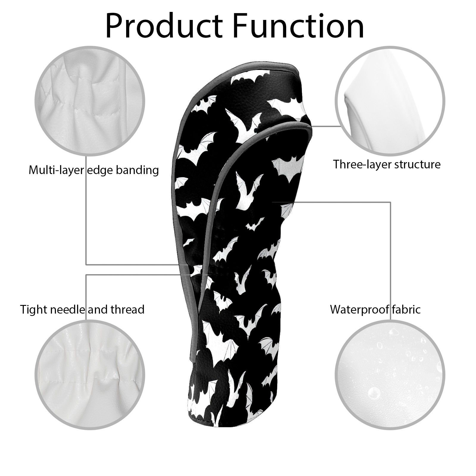 Водонепроницаемый кожаный чехол для головки драйвера и fairway-удара, чехлы для драйверов, гольф-аксессуары для мужчин и женщин, защита от царапин, подарок для гольфистов, чехол для 1/3/5-удара Black And White Goth Bats