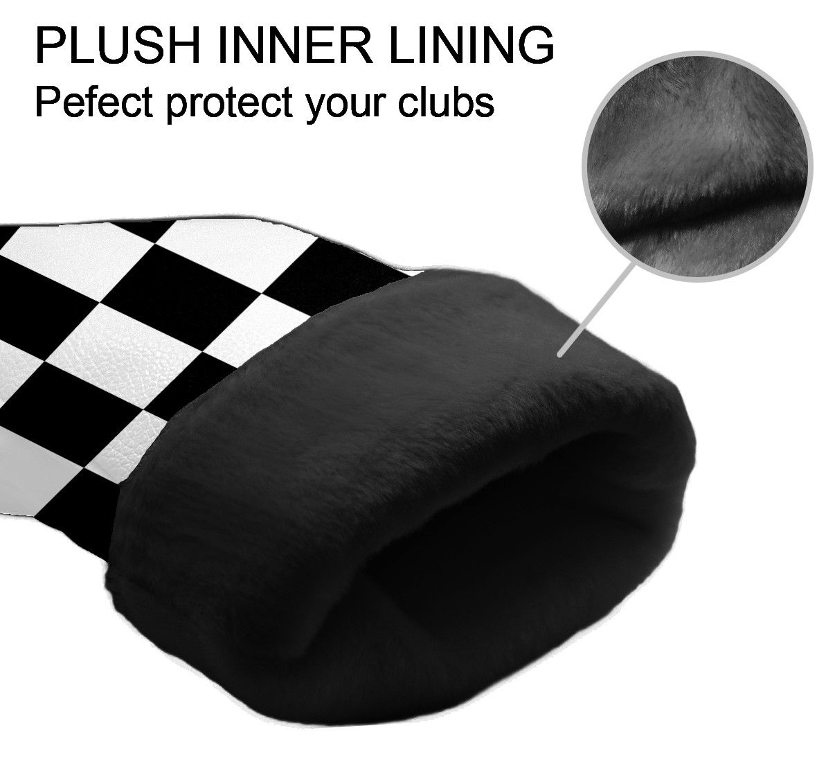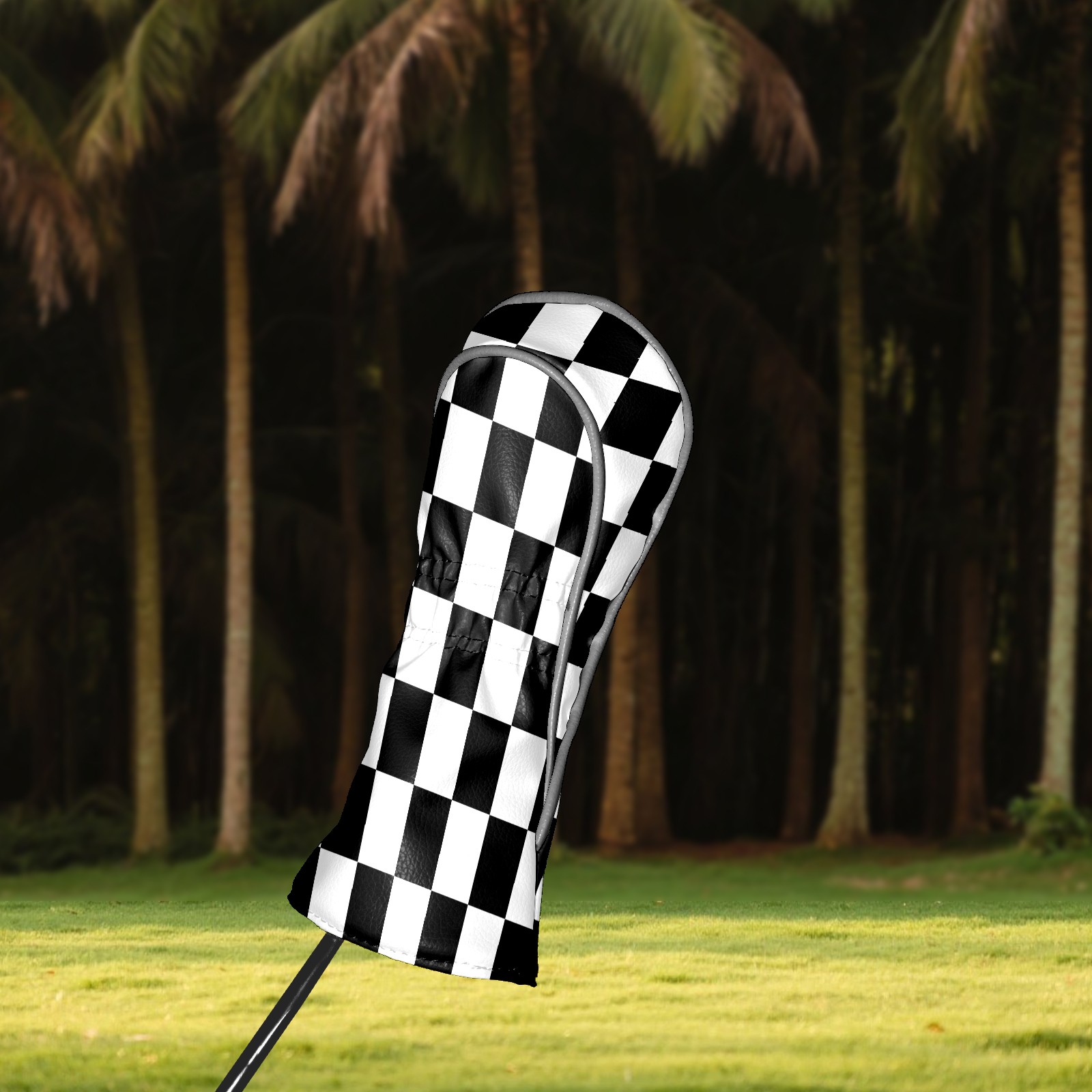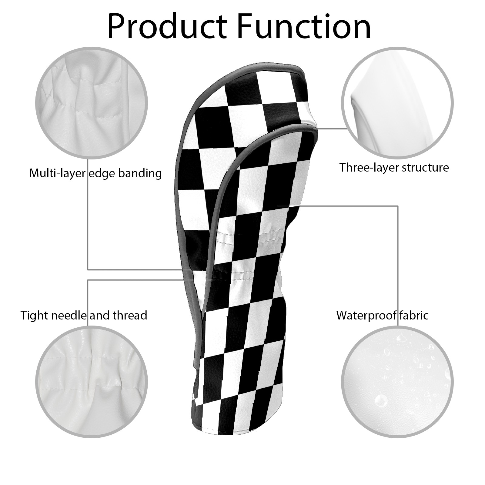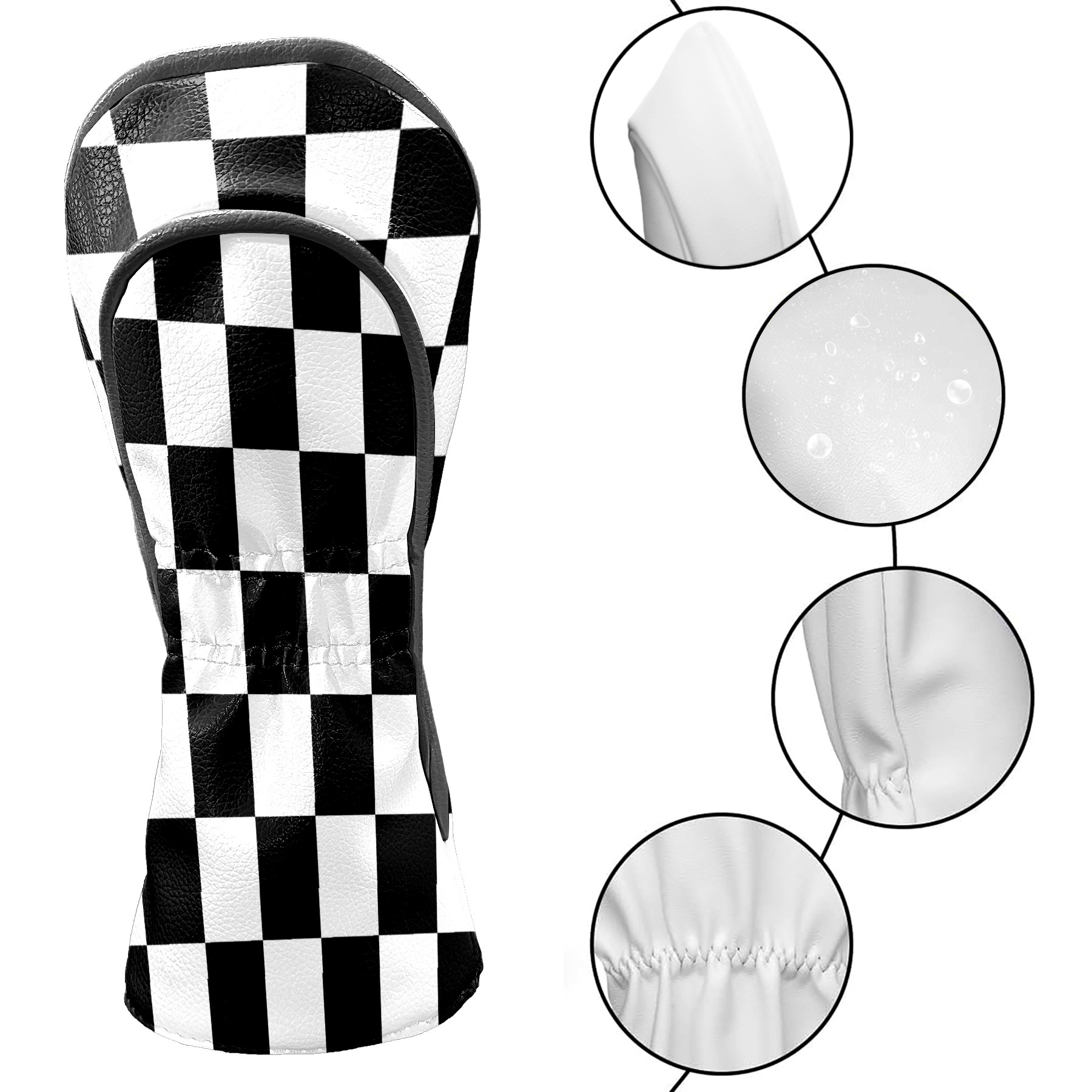 Водонепроницаемый кожаный чехол для головки драйвера и fairway-удара, чехлы для драйверов, гольф-аксессуары для мужчин и женщин, защита от царапин, подарок для гольфистов, чехол для 1/3/5-удара Black And White Checkered Pattern
