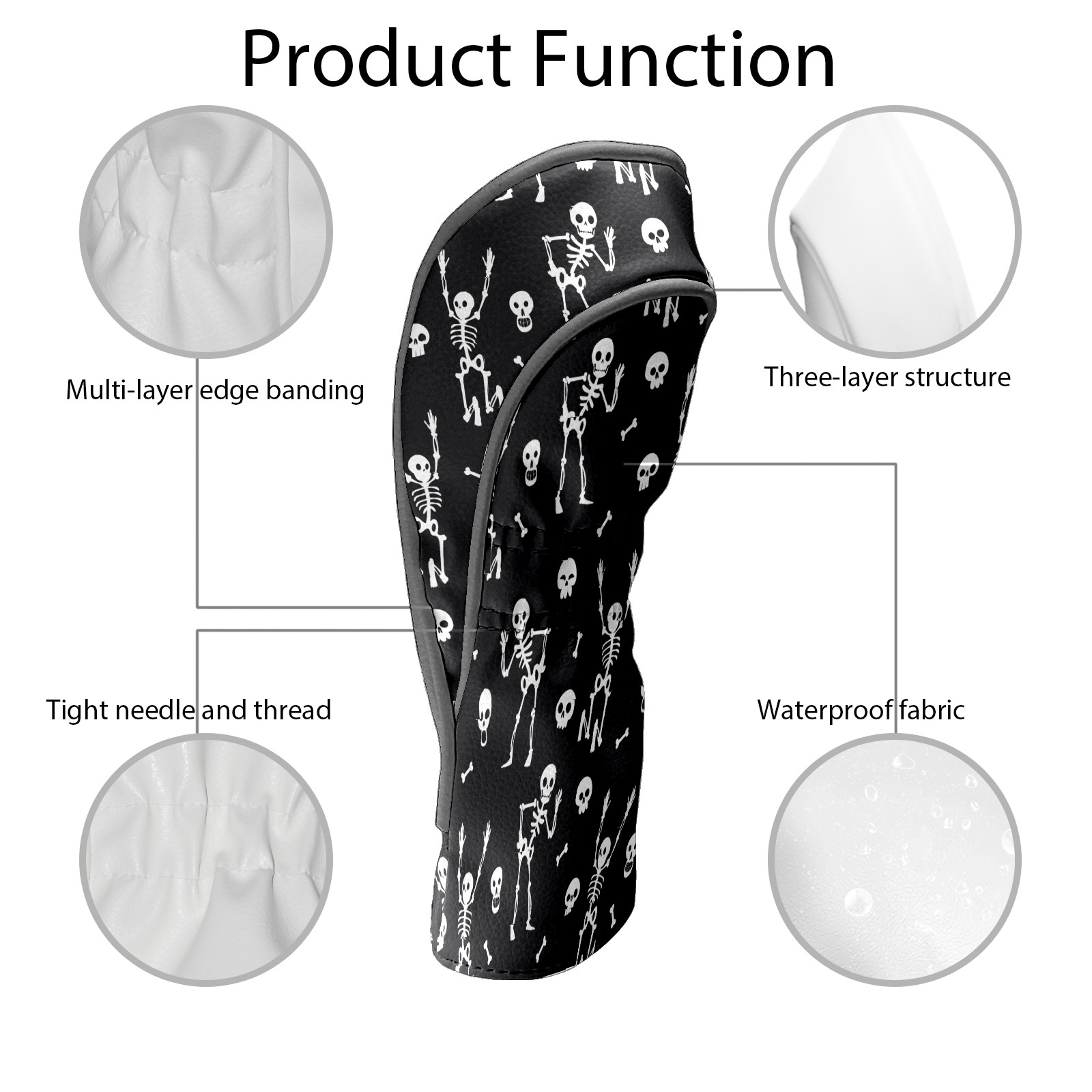 Водонепроницаемый кожаный чехол для головки драйвера и fairway-удара, чехлы для драйверов, гольф-аксессуары для мужчин и женщин, защита от царапин, подарок для гольфистов, чехол для 1/3/5-удара Halloween Skeleton Pattern-01