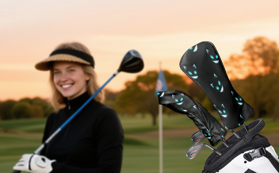 Водонепроницаемый кожаный чехол для головки драйвера и fairway-удара, чехлы для драйверов, гольф-аксессуары для мужчин и женщин, защита от царапин, подарок для гольфистов, чехол для 1/3/5-удара Halloween Cat Face