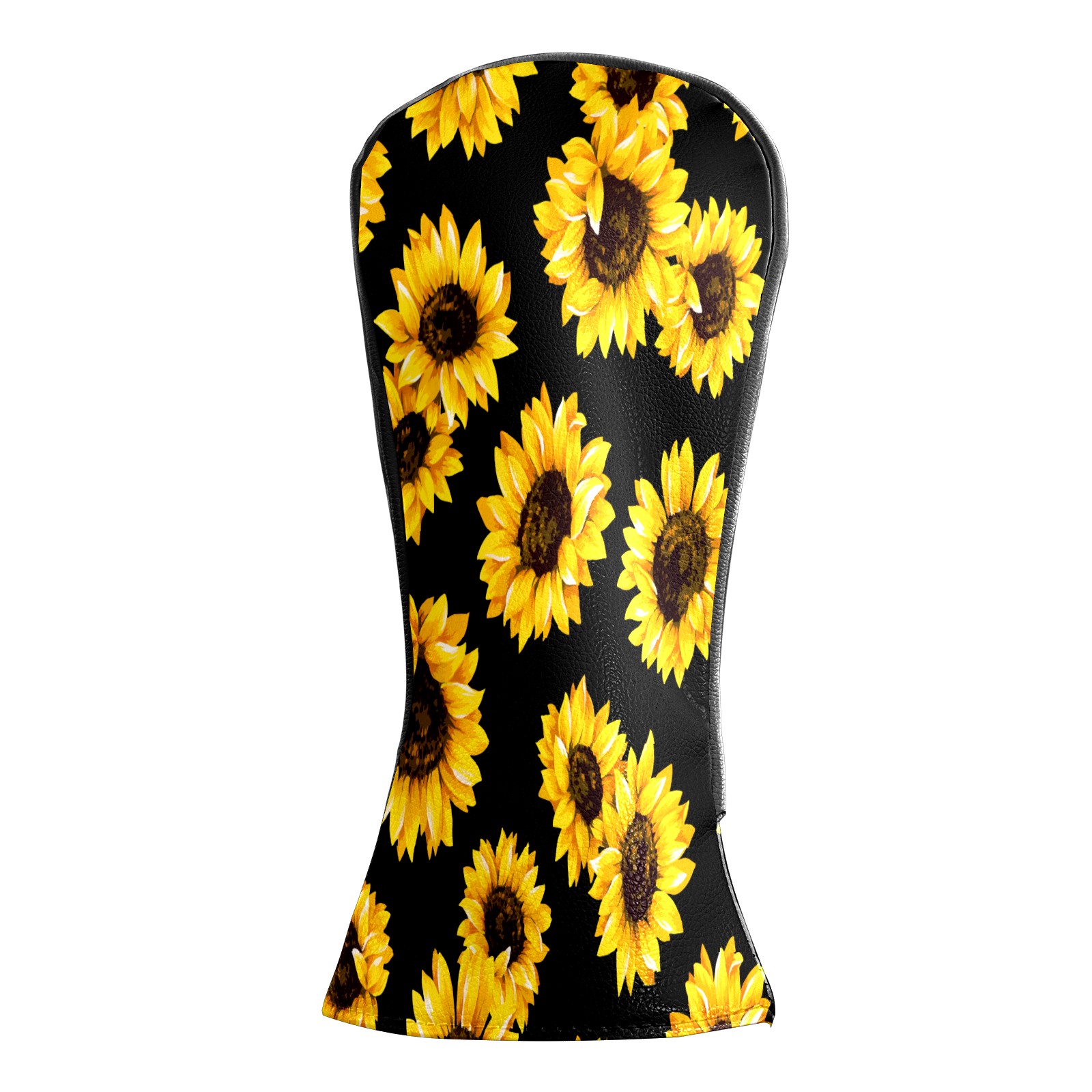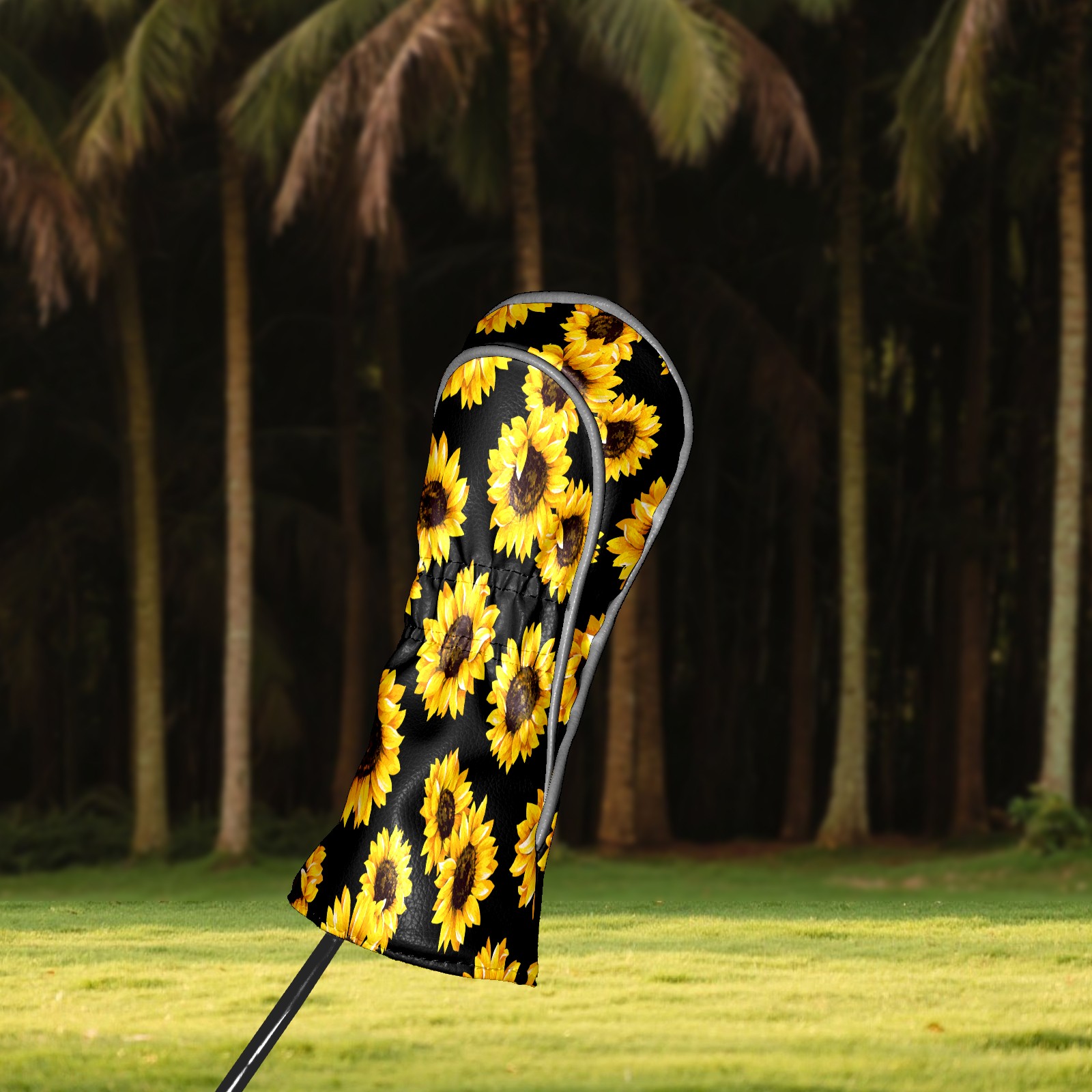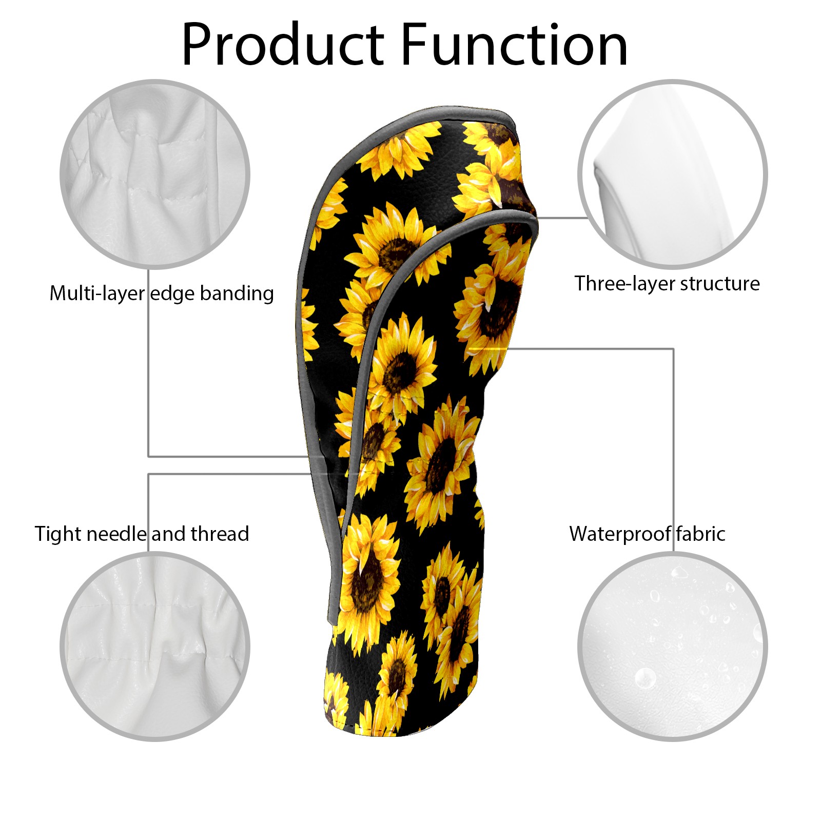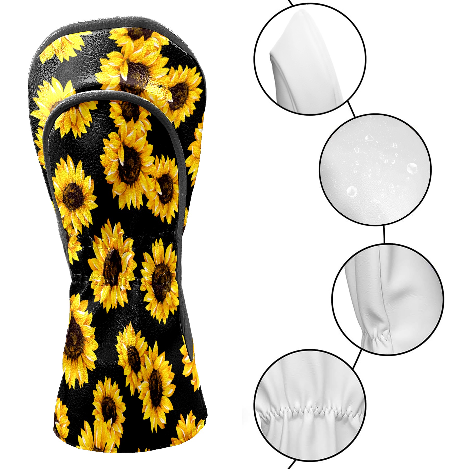 Водонепроницаемый кожаный чехол для головки драйвера и fairway-удара, чехлы для драйверов, гольф-аксессуары для мужчин и женщин, защита от царапин, подарок для гольфистов, чехол для 1/3/5-удара Yellow Blooming Sunflowers Black