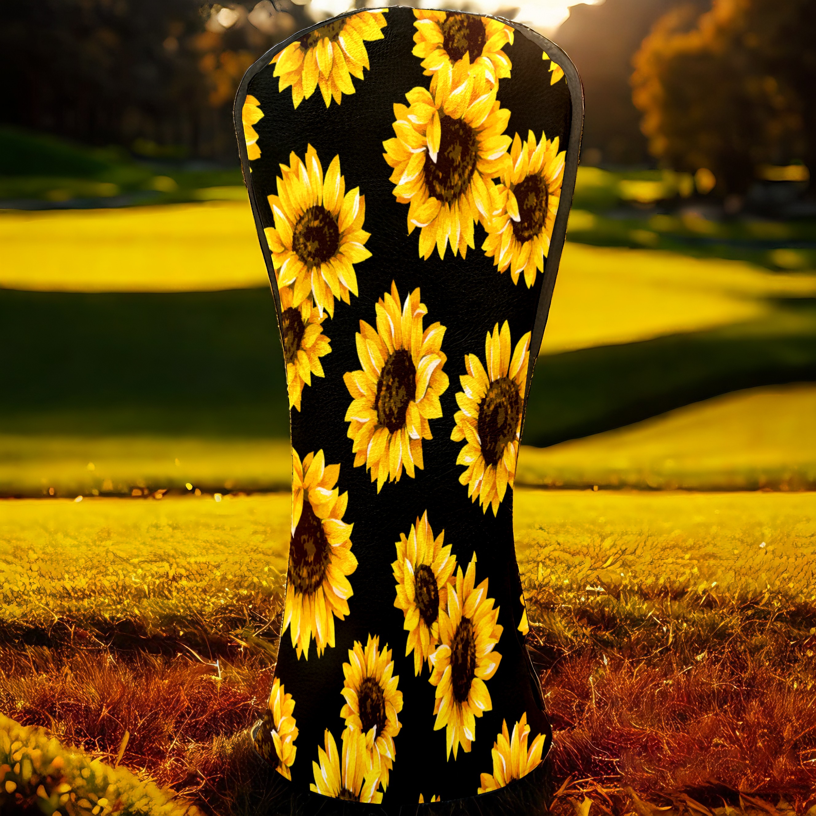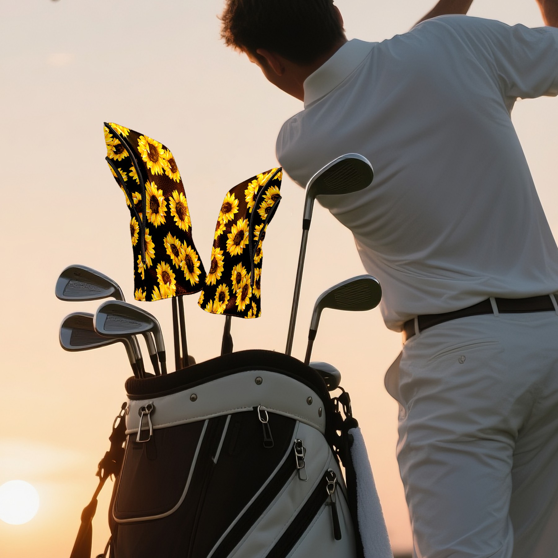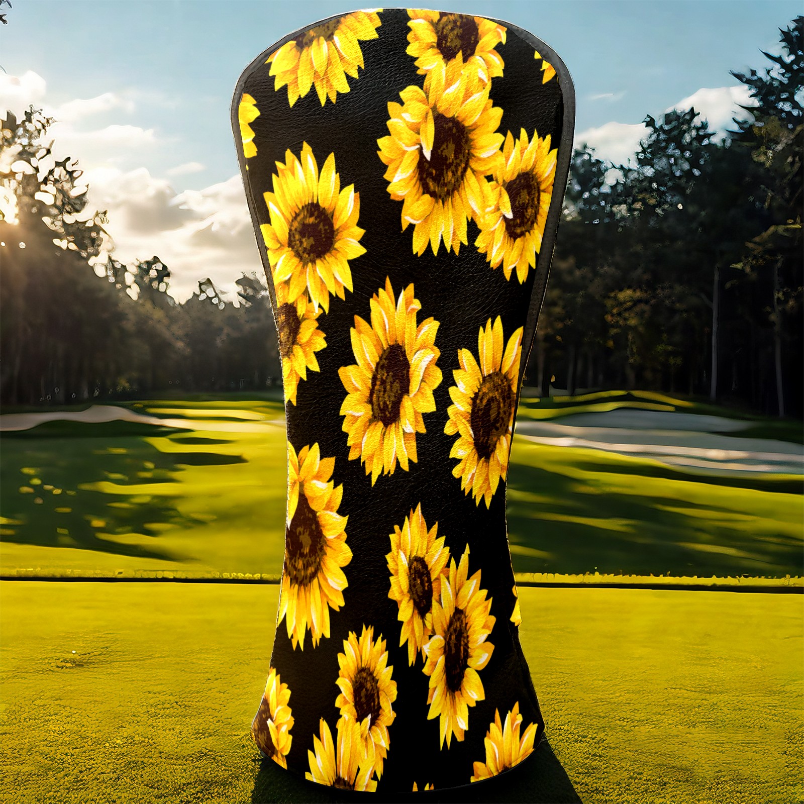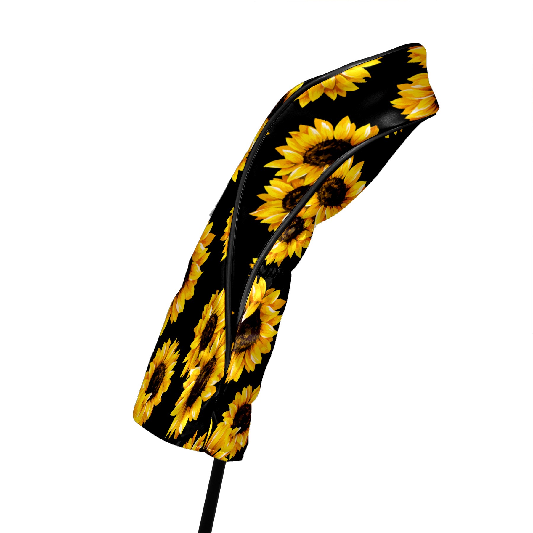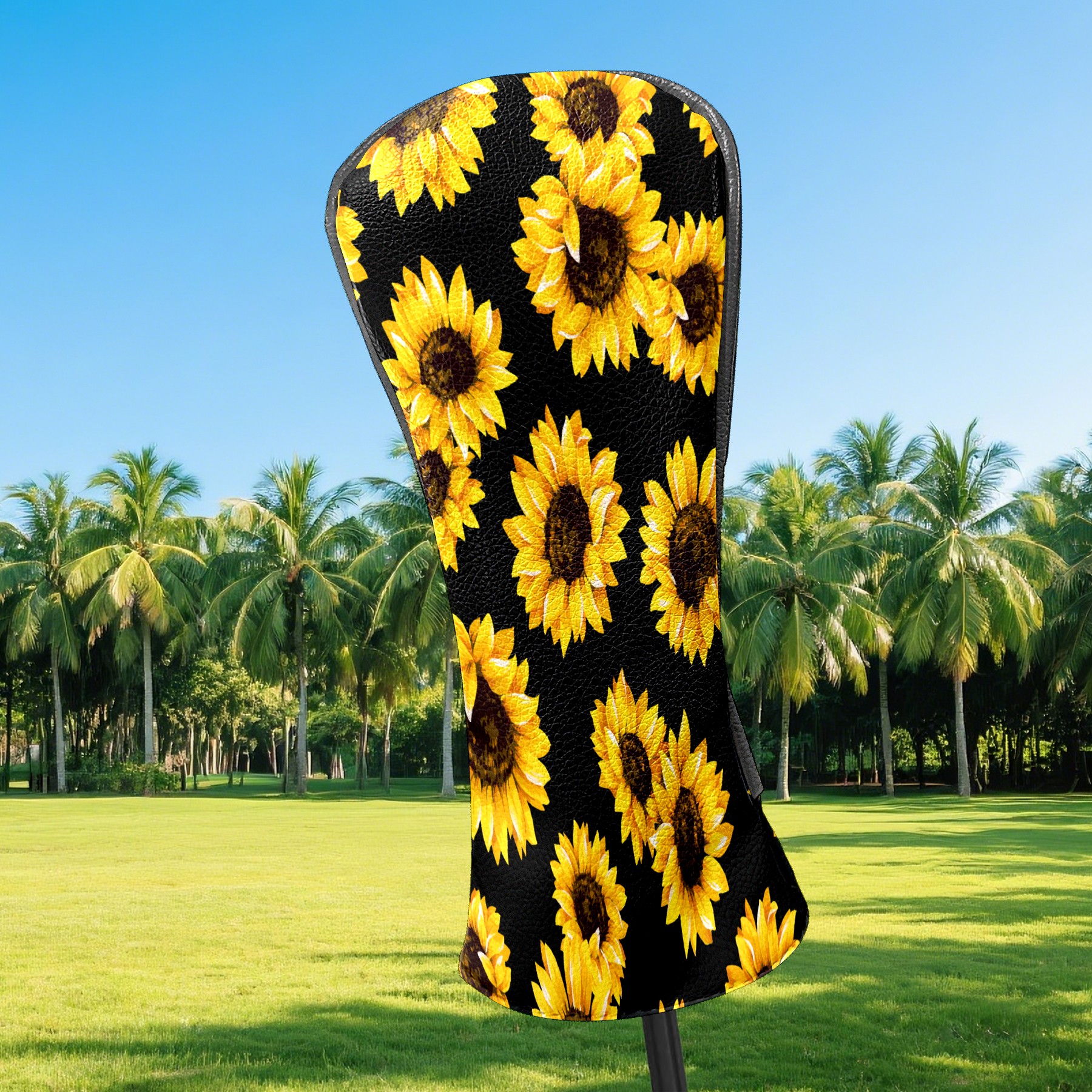 Водонепроницаемый кожаный чехол для головки драйвера и fairway-удара, чехлы для драйверов, гольф-аксессуары для мужчин и женщин, защита от царапин, подарок для гольфистов, чехол для 1/3/5-удара Yellow Blooming Sunflowers Black