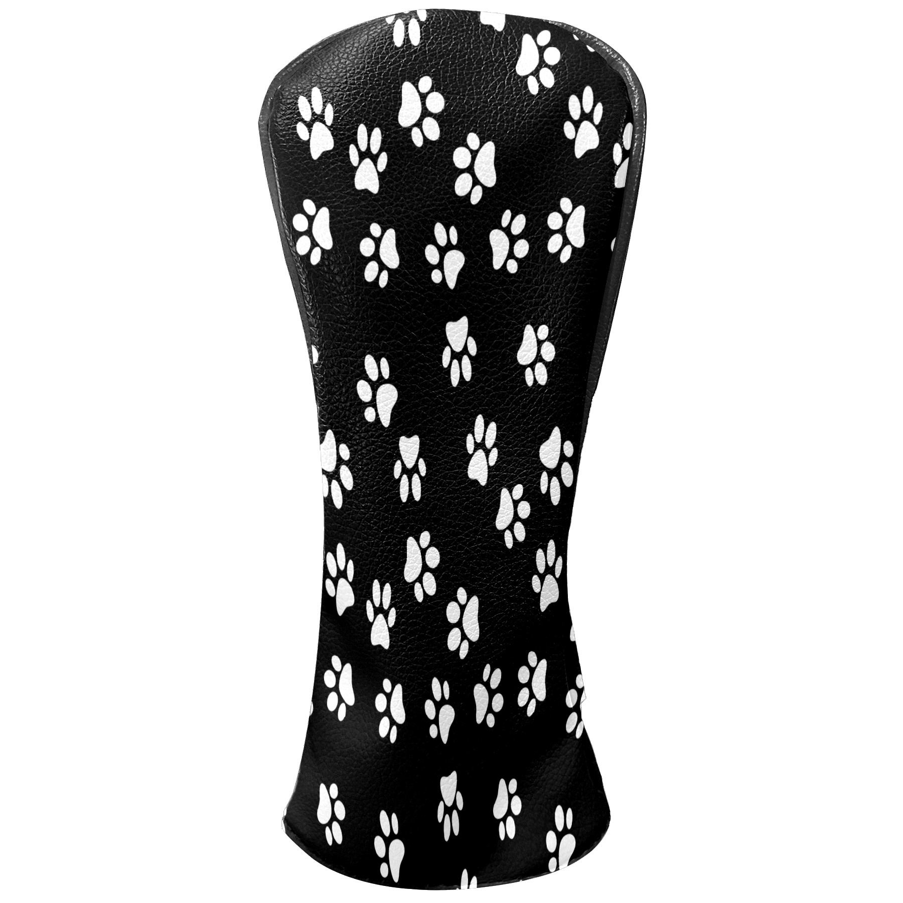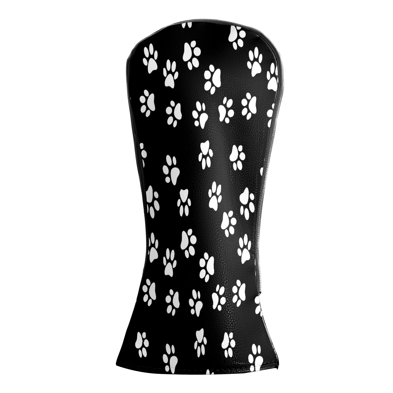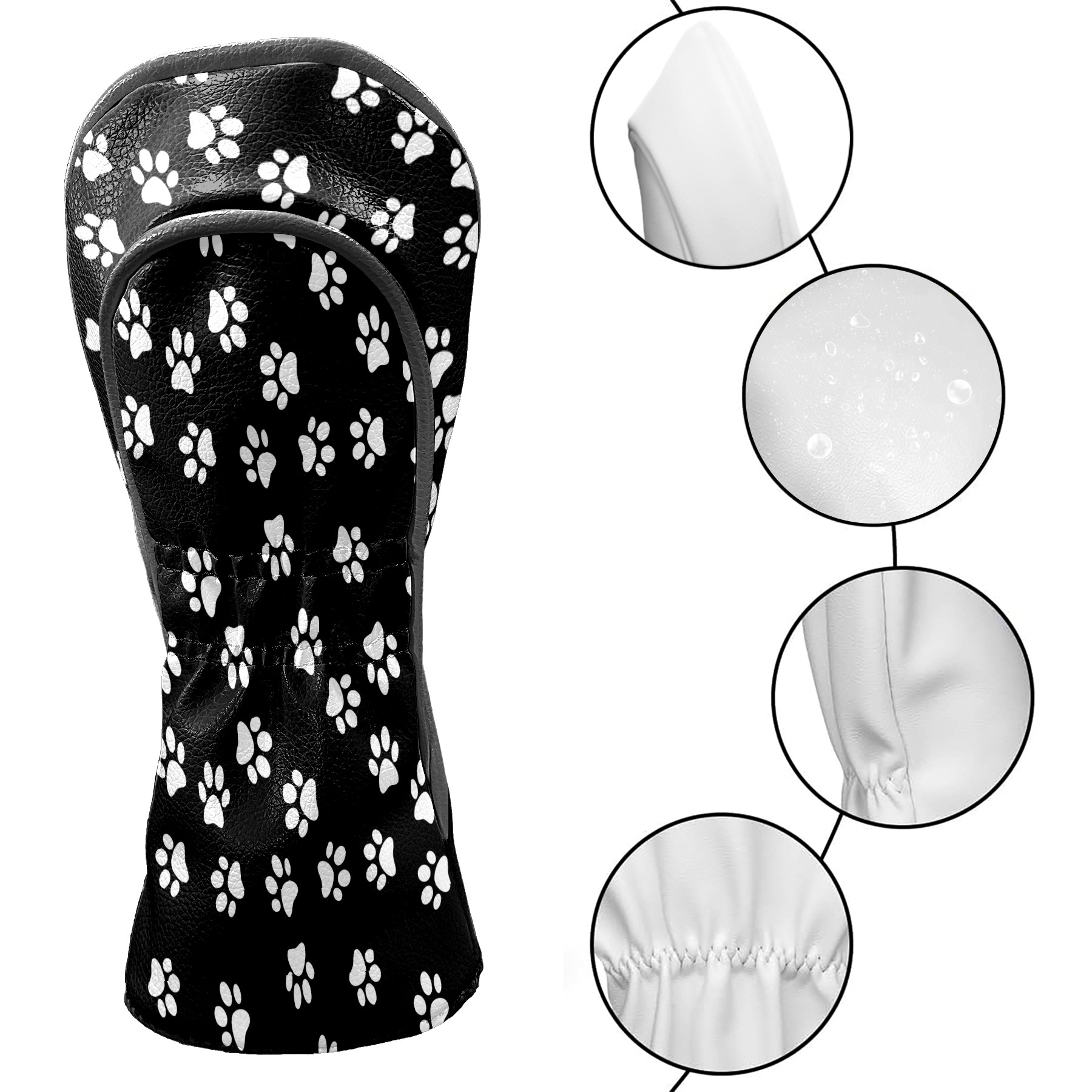 Водонепроницаемый кожаный чехол для головки драйвера и fairway-удара, чехлы для драйверов, гольф-аксессуары для мужчин и женщин, защита от царапин, подарок для гольфистов, чехол для 1/3/5-удара White Dog Paw Print Black Background