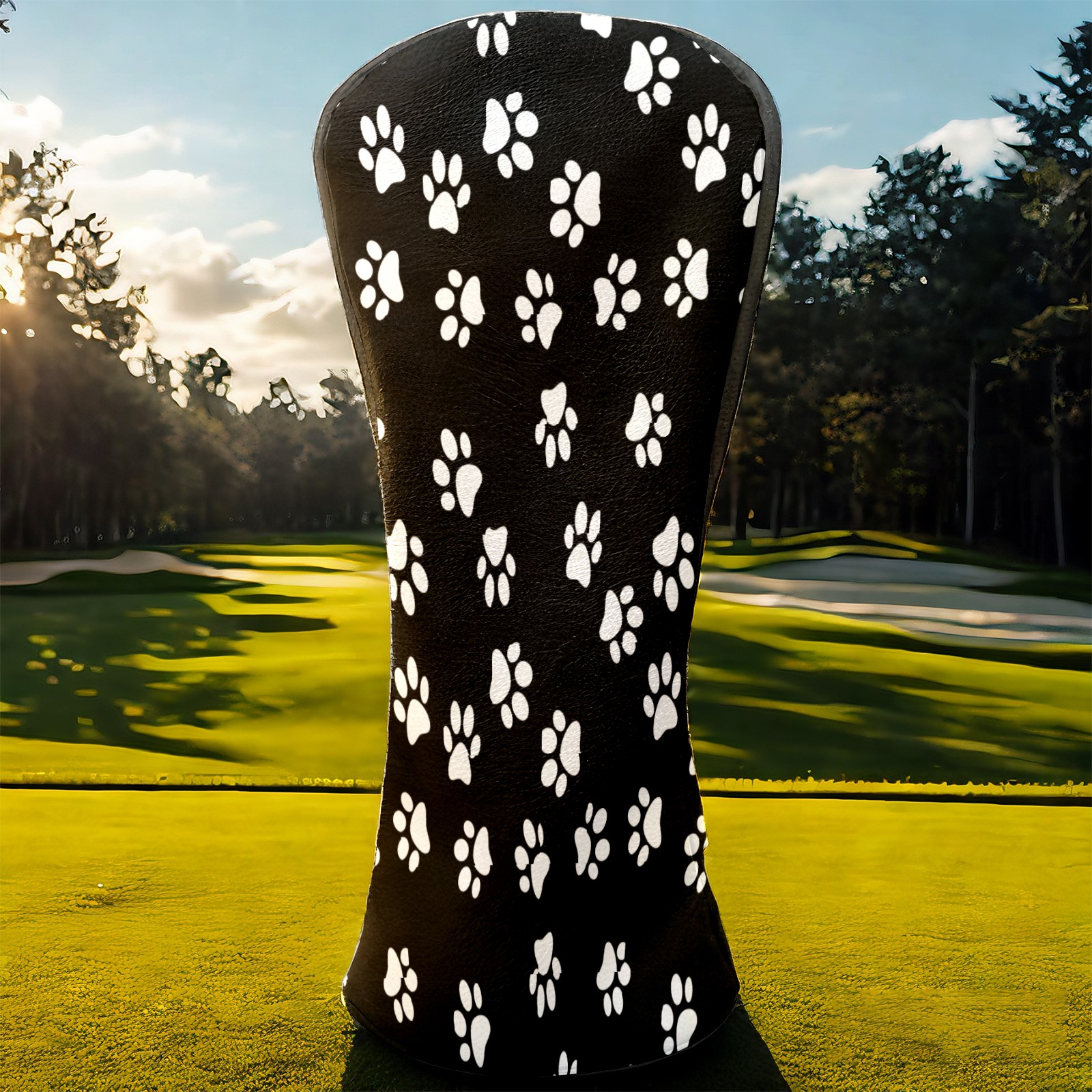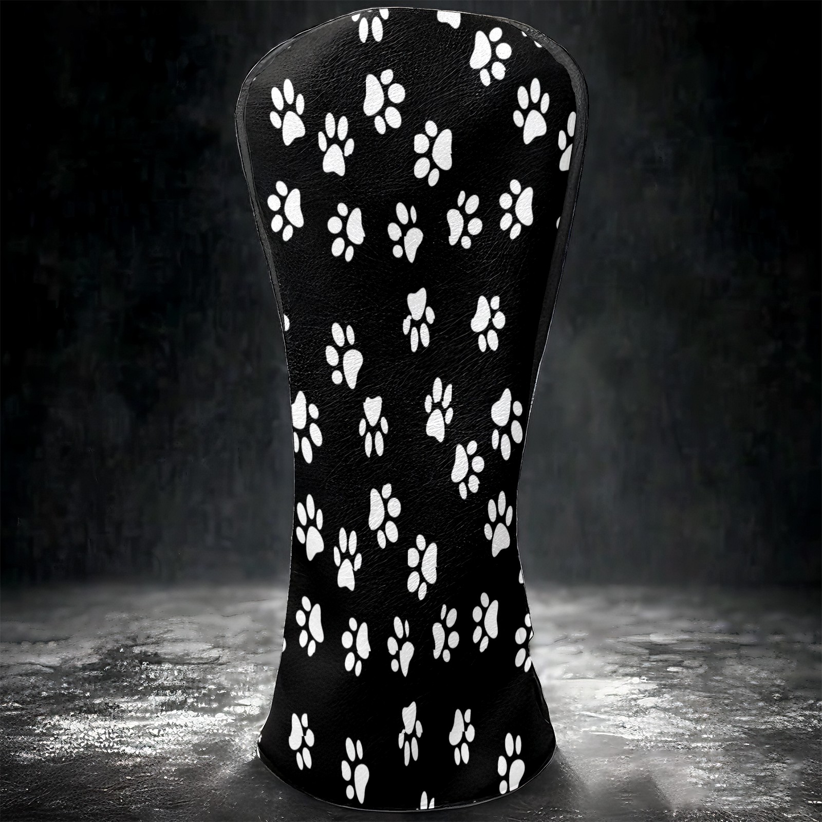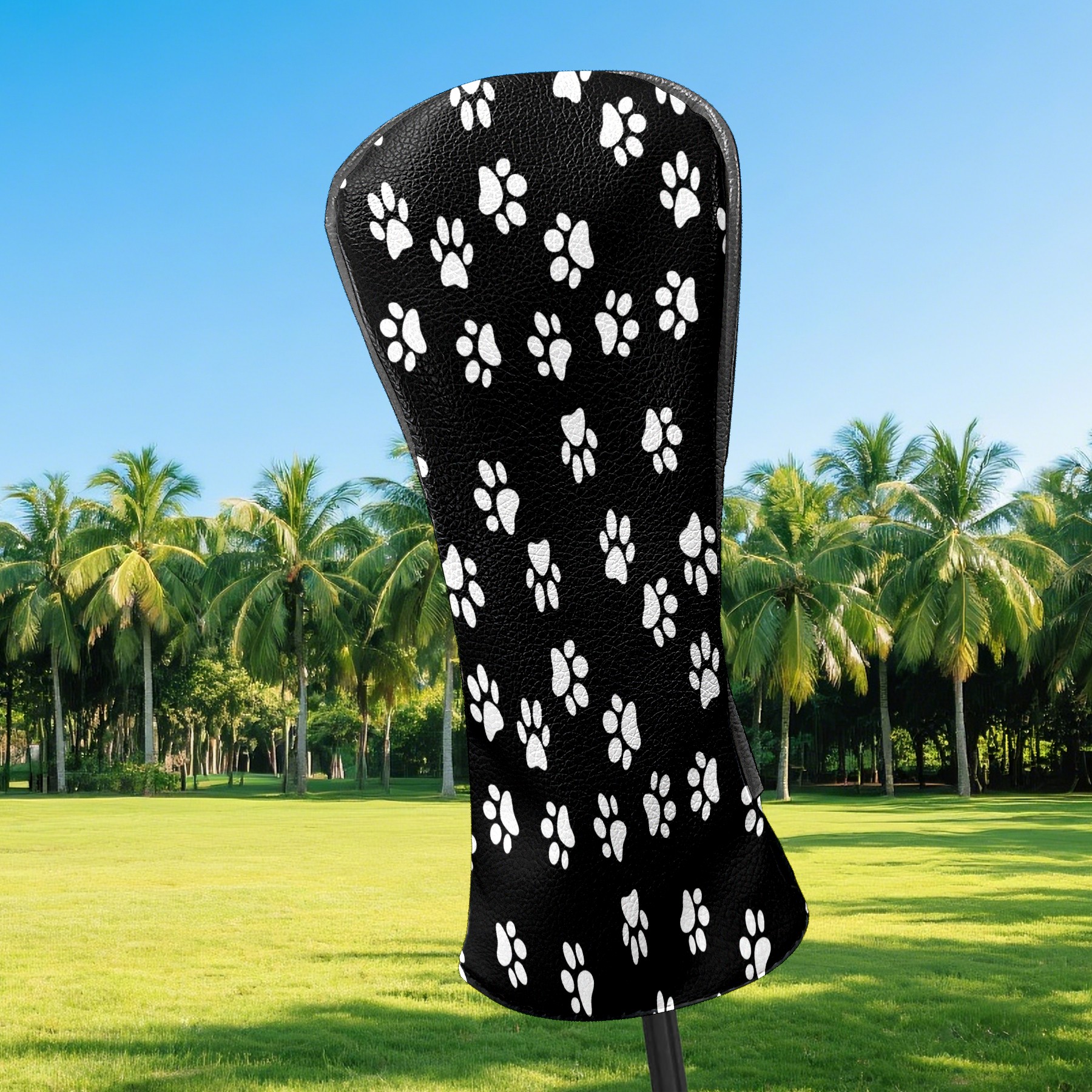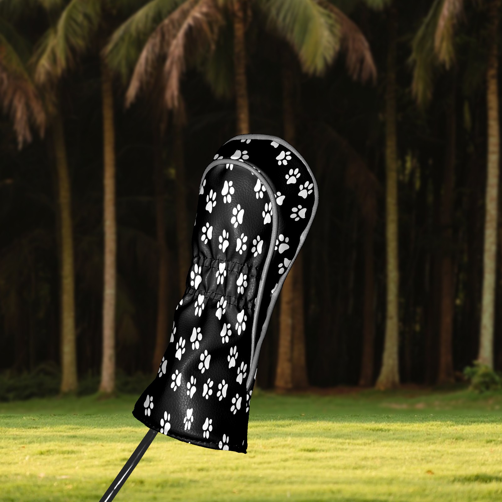 Водонепроницаемый кожаный чехол для головки драйвера и fairway-удара, чехлы для драйверов, гольф-аксессуары для мужчин и женщин, защита от царапин, подарок для гольфистов, чехол для 1/3/5-удара White Dog Paw Print Black Background