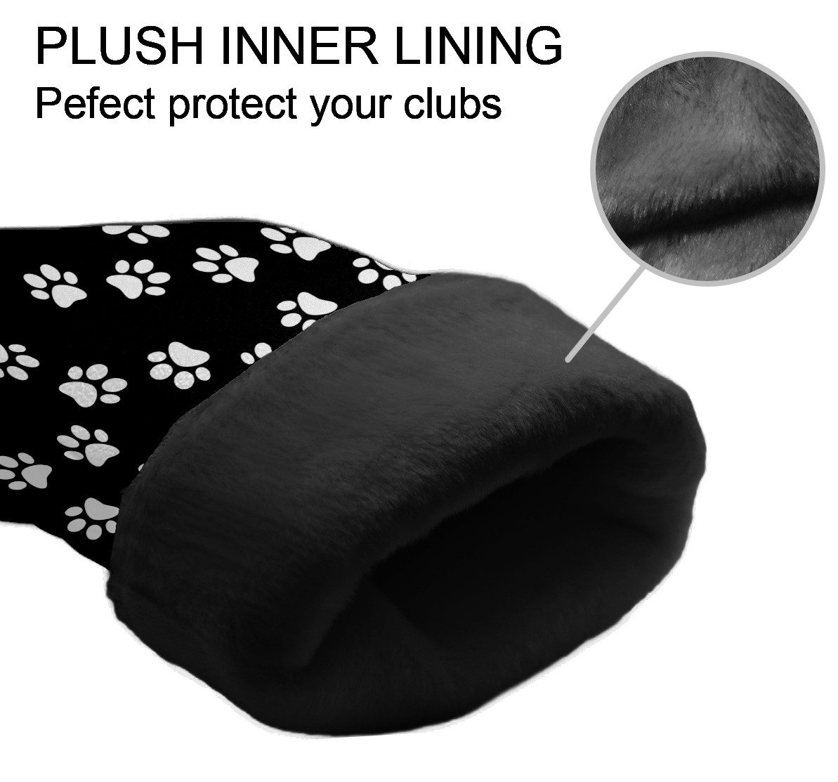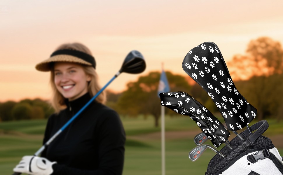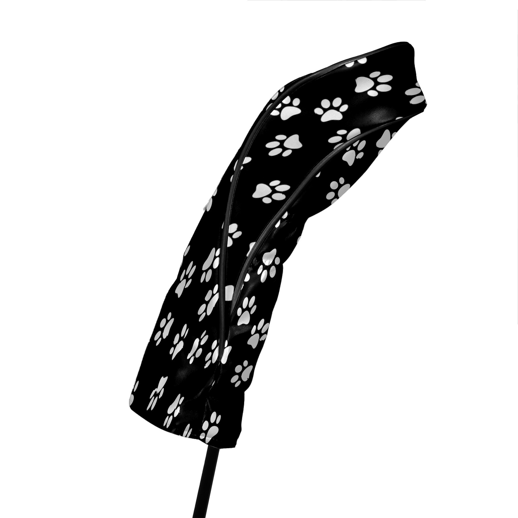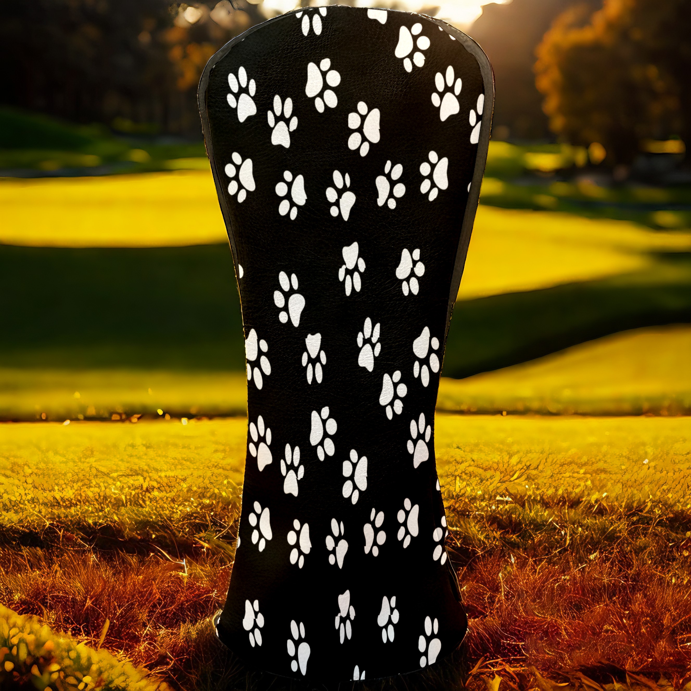 Водонепроницаемый кожаный чехол для головки драйвера и fairway-удара, чехлы для драйверов, гольф-аксессуары для мужчин и женщин, защита от царапин, подарок для гольфистов, чехол для 1/3/5-удара White Dog Paw Print Black Background