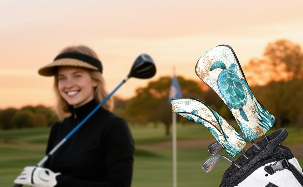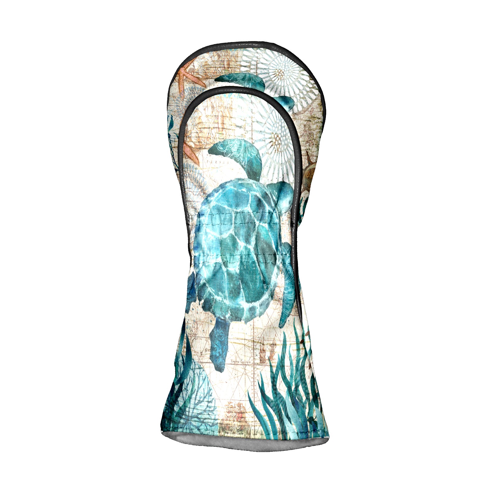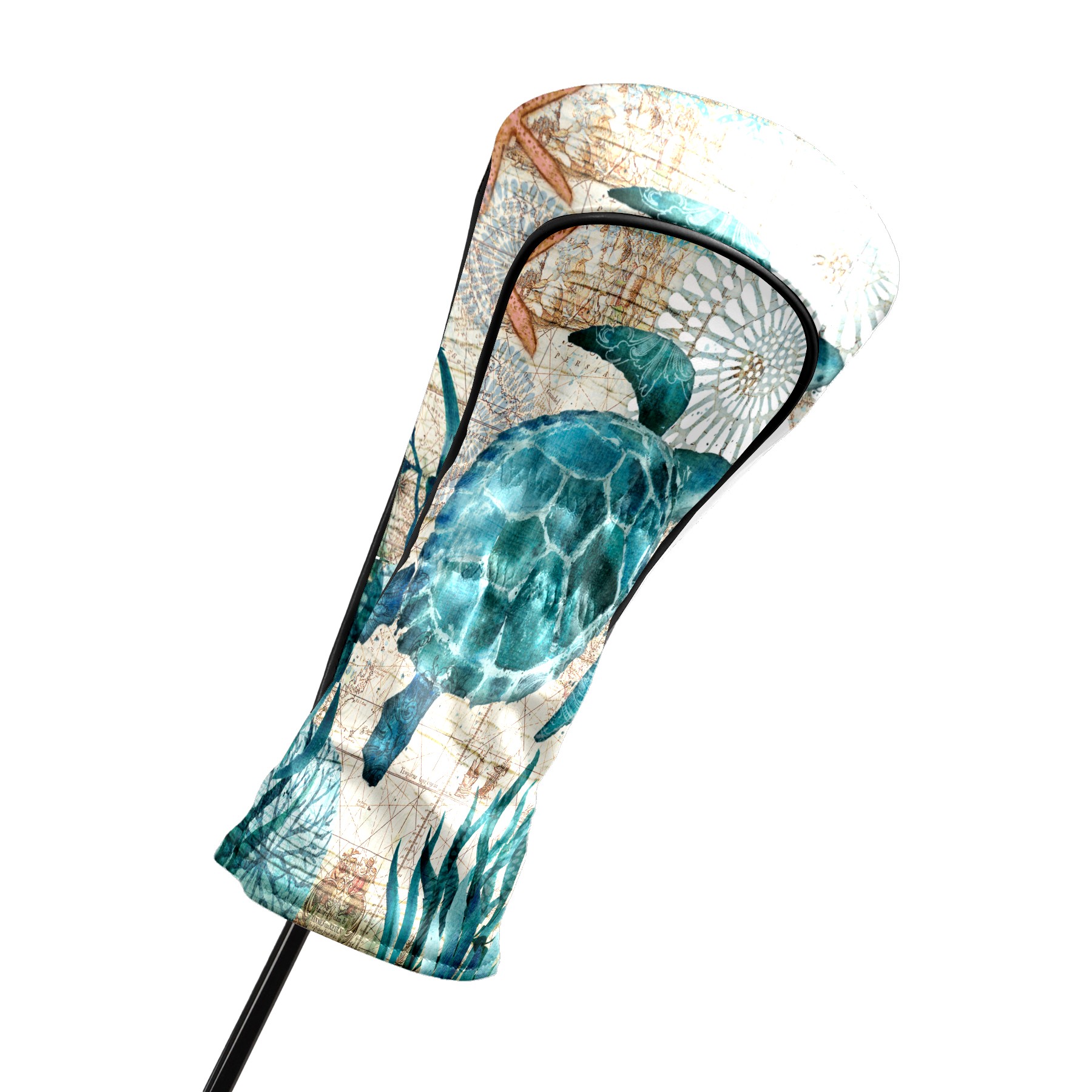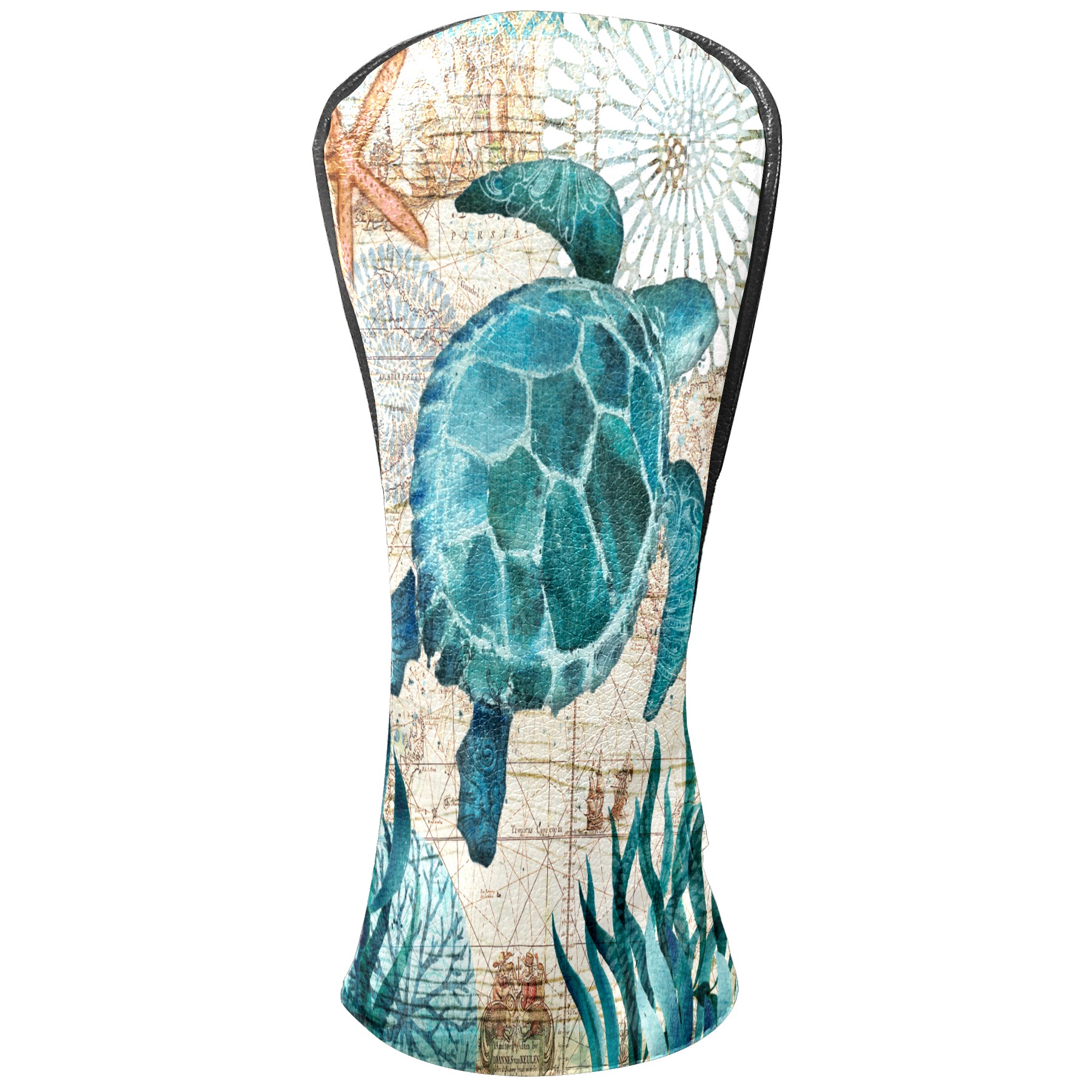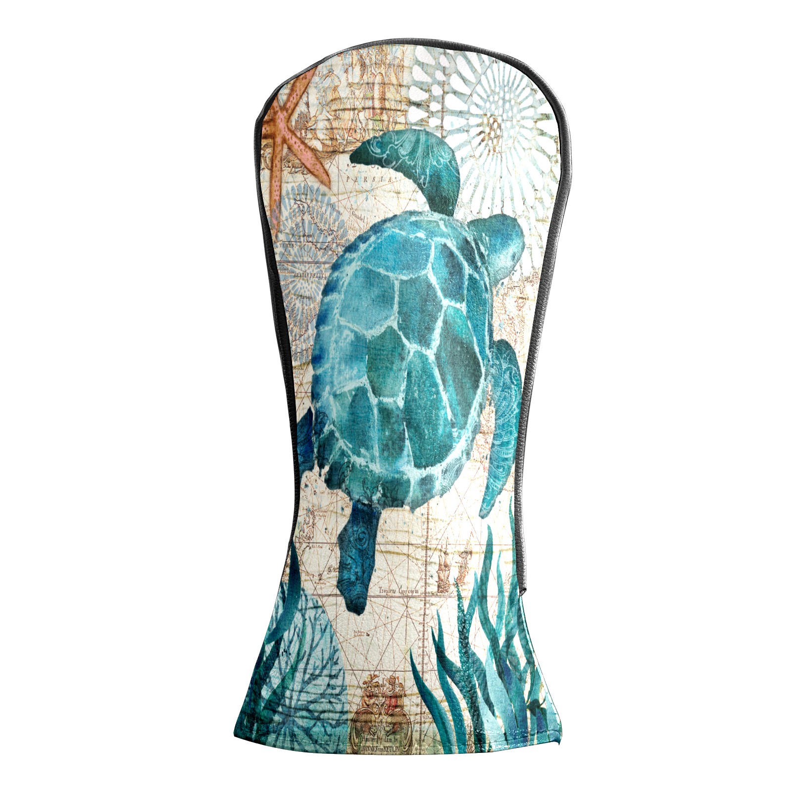 Водонепроницаемый кожаный чехол для головки драйвера и fairway-удара, чехлы для драйверов, гольф-аксессуары для мужчин и женщин, защита от царапин, подарок для гольфистов, чехол для 1/3/5-удара Blue Sea Turtle Nautical Map