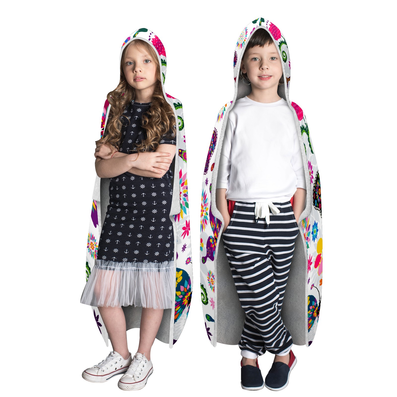 【Материал】Полиэстер + коралловый флис 【Принт】Напечатано на лицевой стороне 【Размер】100x130 см/39x51 дюйм 130x150 см/51x59 дюймов 150x200 см/59x79 дюймов 【Подходящие случаи】Пушистое одеяло с капюшоном, действительно большого размера, подходит как для мужчин, так и для женщин. Теплое и уютное, идеально подходит для приятного времяпрепровождения. Идеально подходит для отдыха дома, просмотра телевизора, игр, чтения, сна или любых походов и мероприятий на природе. Капюшон одеяла закрывает плечи и руки, позволяя свободно двигаться и использовать руки. Идеальный размер как для женщин, так и для мужчин. Прекрасный и продуманный подарок для семьи, друзей и партнеров. 【Рекомендации по стирке】Машинная стирка, не отбеливать, сушить в сушилке при низкой температуре.