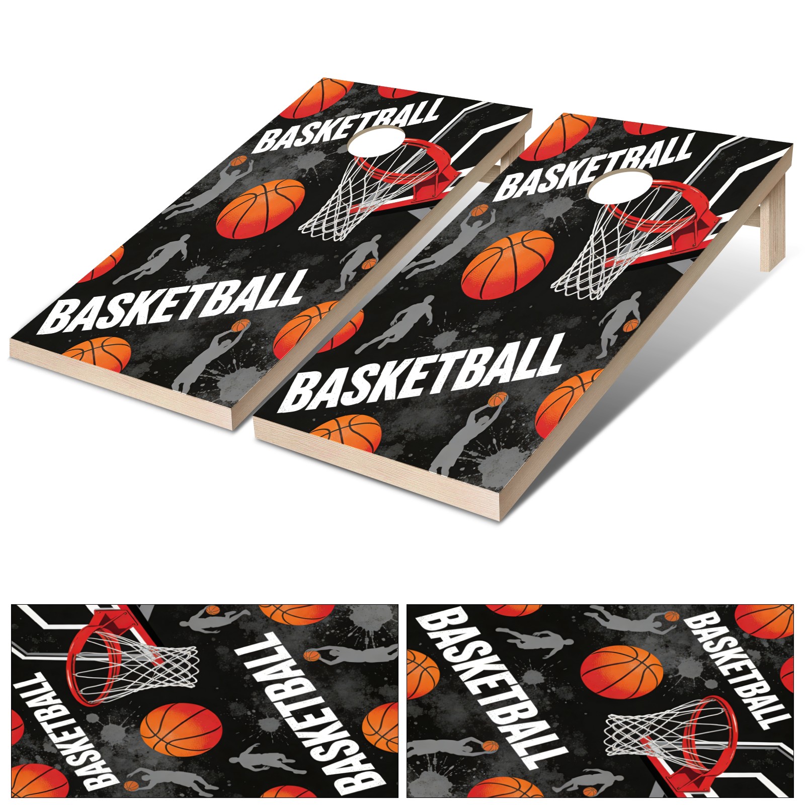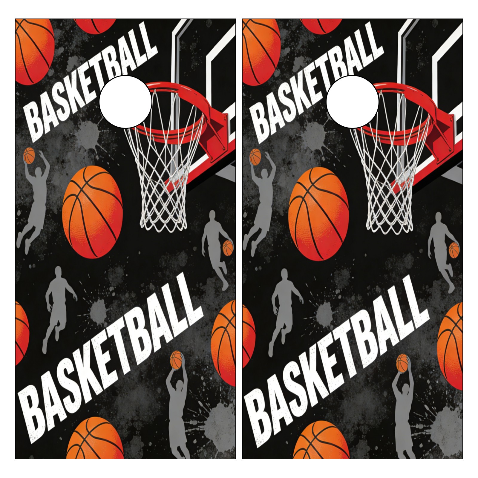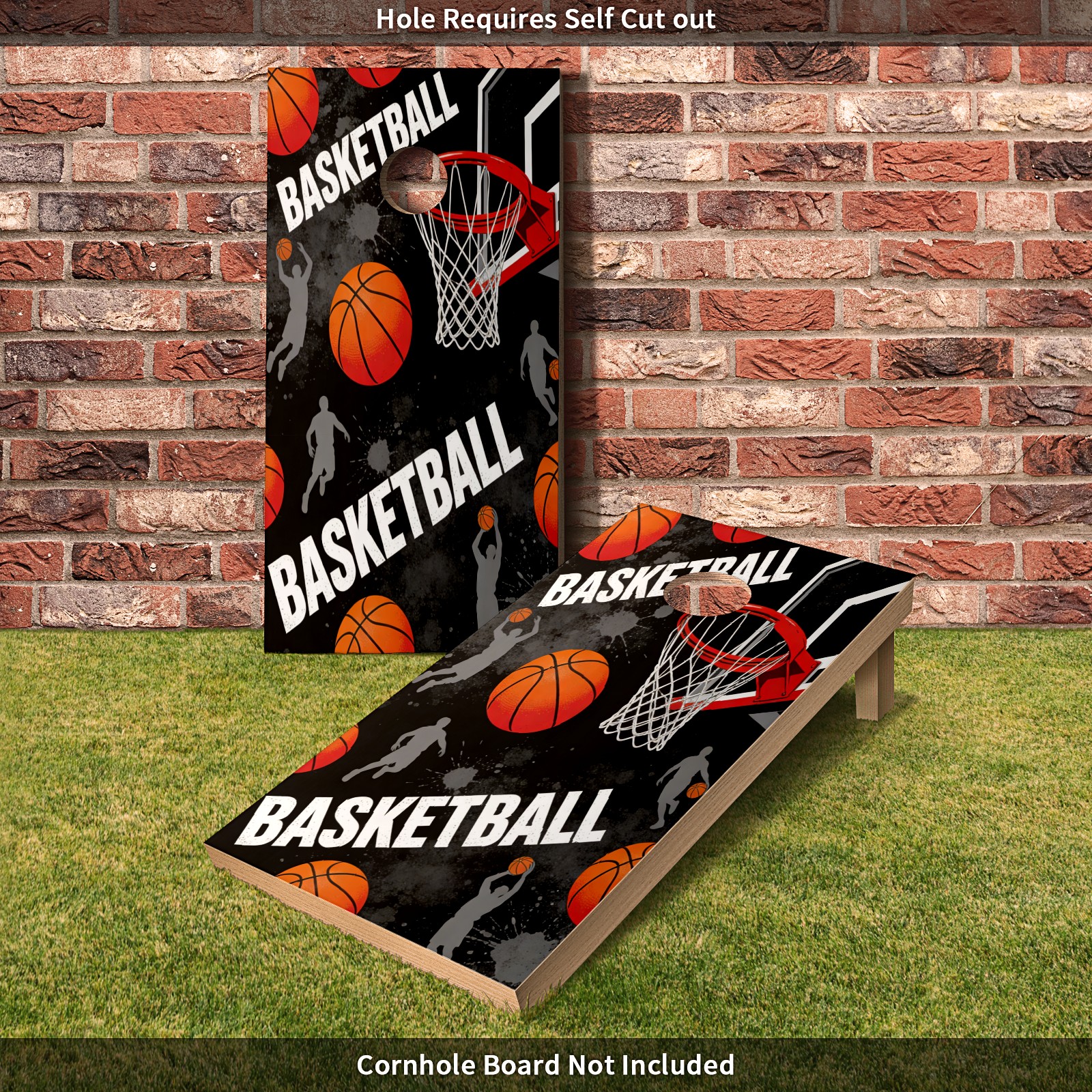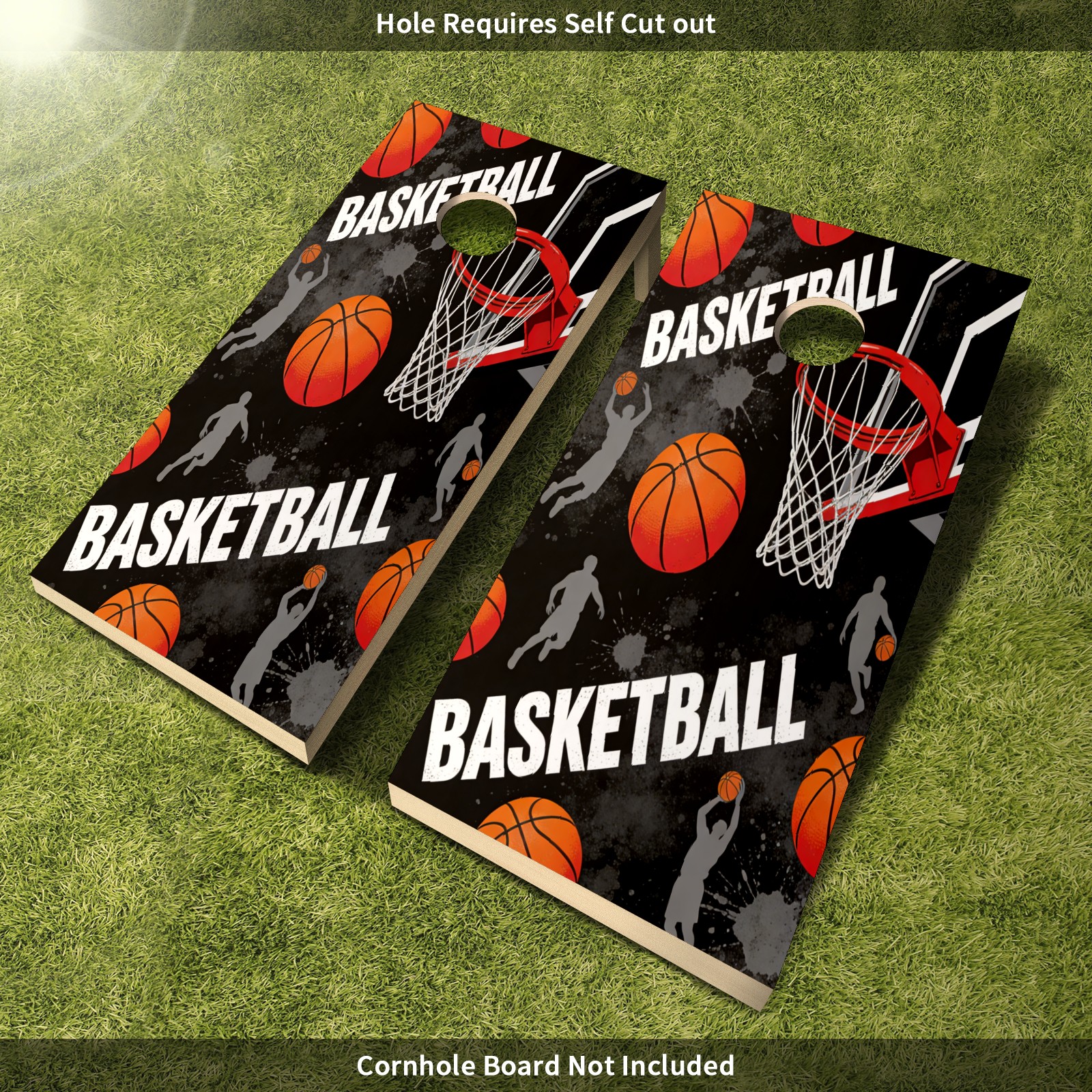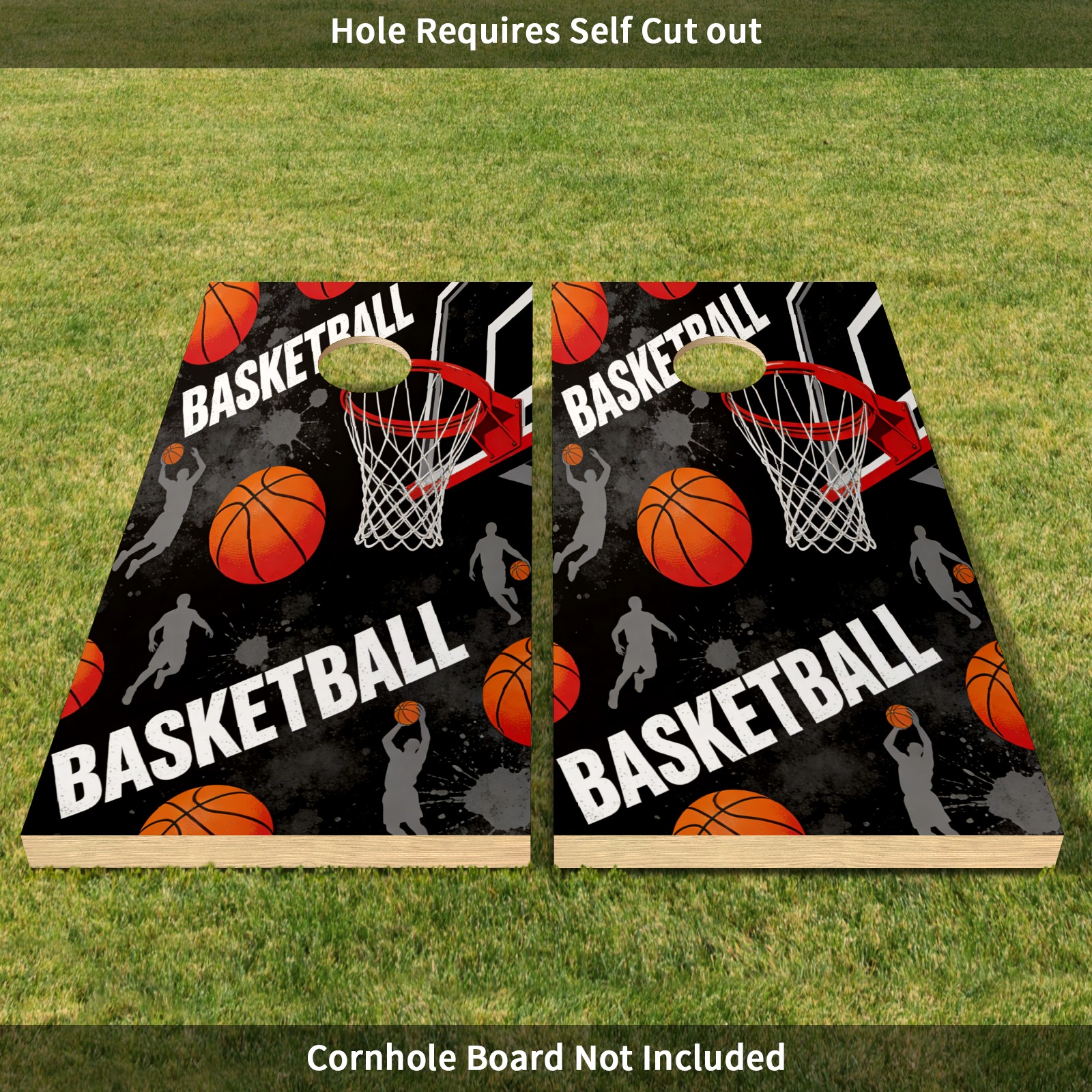 Cornhole Game Sticker- Basketball Vinyl Skin, Perfect for Family Events, Social Gatherings, Decorative Games Stickers Dimensions: 2' x 4' - Set of 2