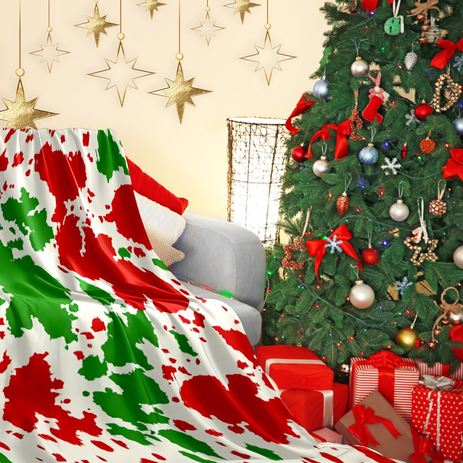 Counullo Flannel Throw Blanket, Ultra Soft Anti-Pilling Blanket for Couch & Bed, Lightweight Cozy Blanket for Travel, Home, Camping Gift - 50x60 Inches (30" x 39"), Fiery Splash Rice