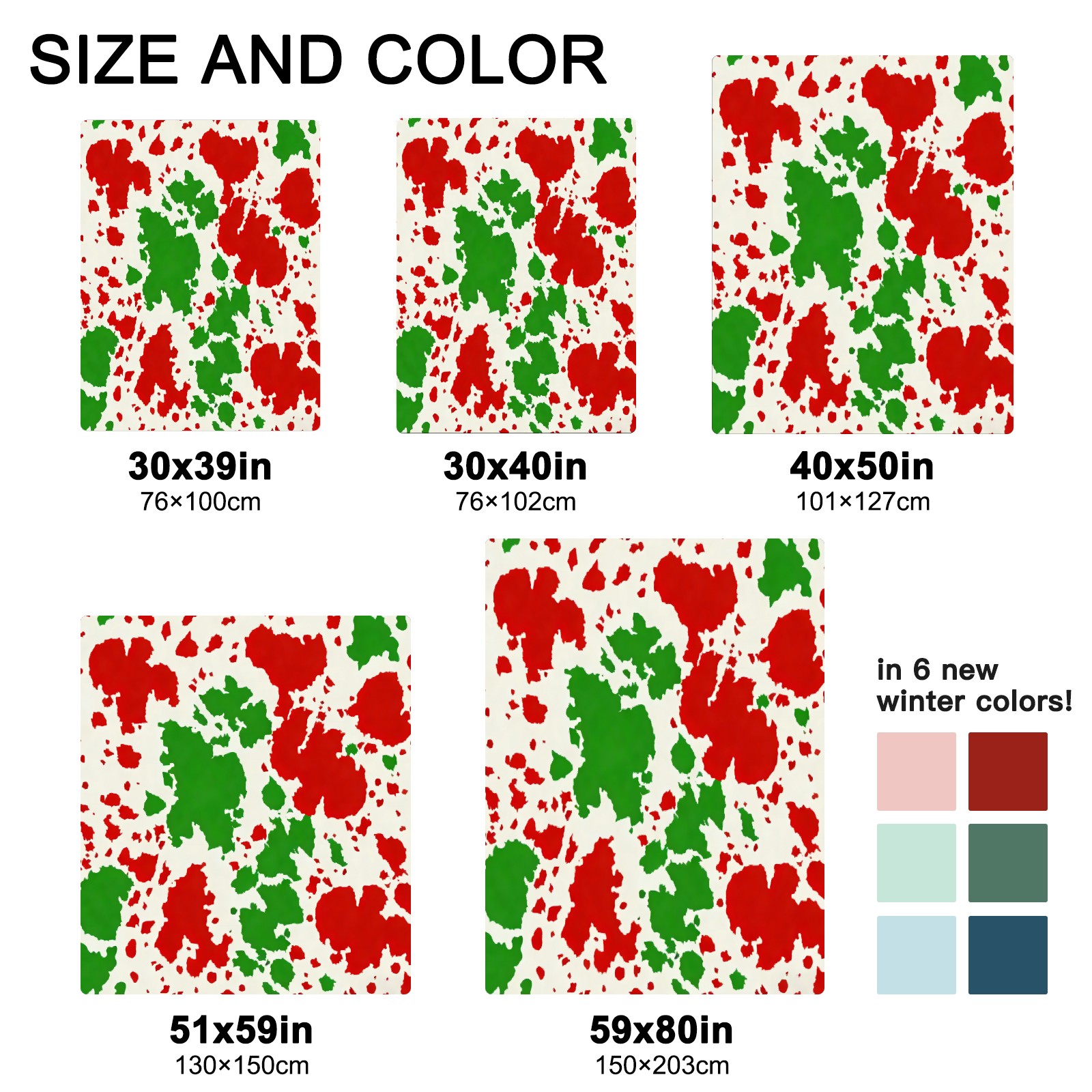 <strong></strong><p><strong>【Size】</strong>5 sizes. 30x39in/76x100cm; 30x40in/76x102cm; 40x50in/101x127cm; 51x59in /130x150cm; 59x80in/150x203cm <strong>【Product performance】</strong> &nbsp;</p><p>❤Skin-Friendly &amp; Breathable&nbsp;</p><p>❤Lightweight &amp; Folded tightly&nbsp;</p><p>❤Anti-pilling &amp; Anti-wrinkle &amp; Anti-allergy&nbsp;</p><p>❤Baby Sleep, Travel, Sofa, Nap Blanket , Bed Sheet</p>