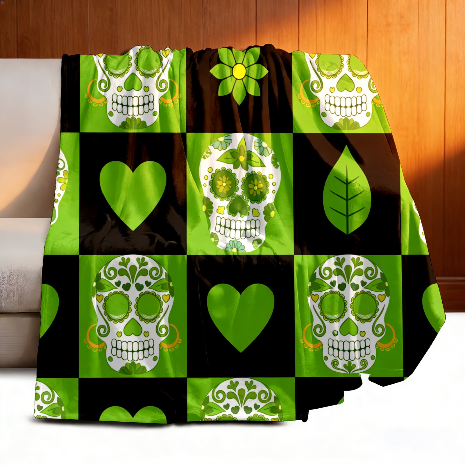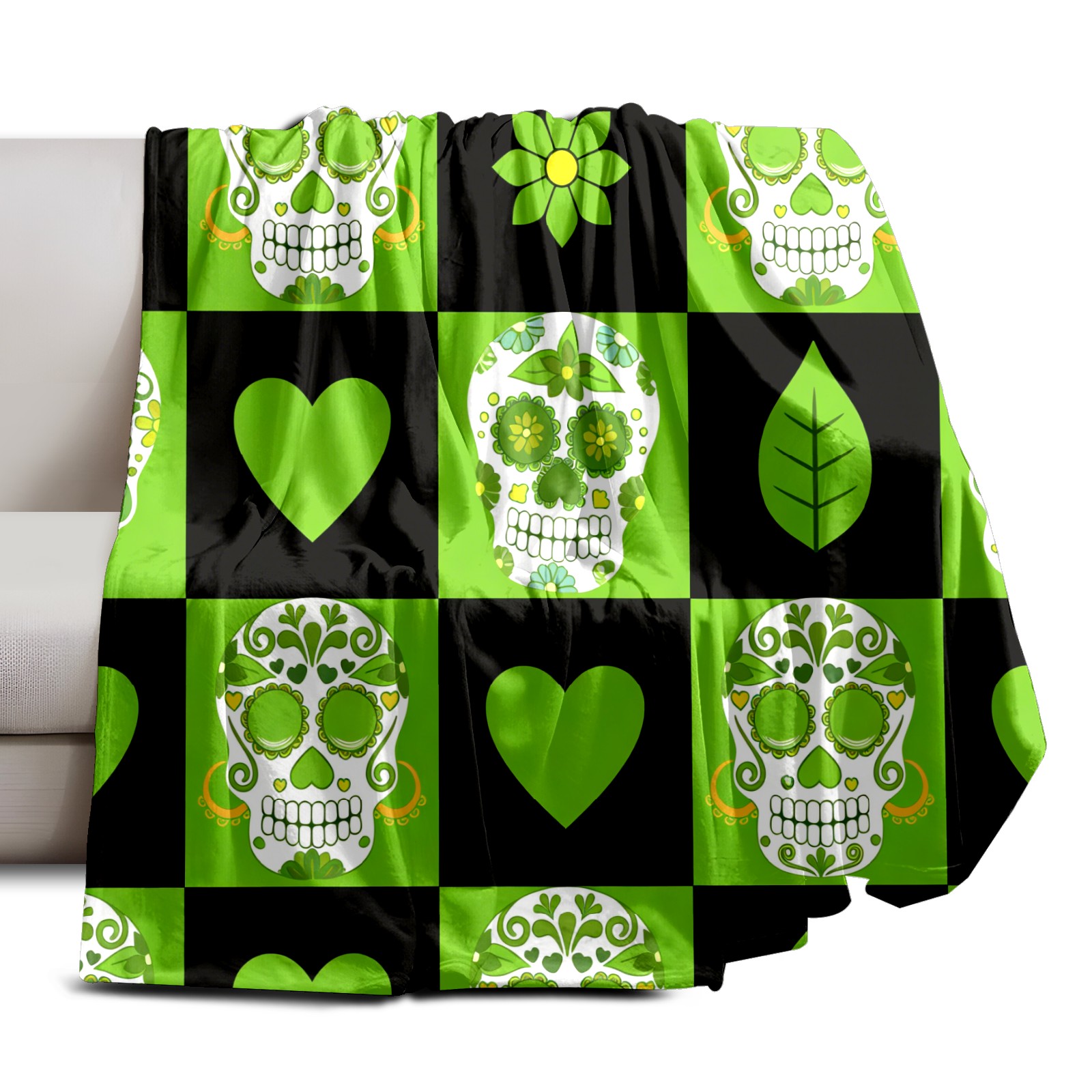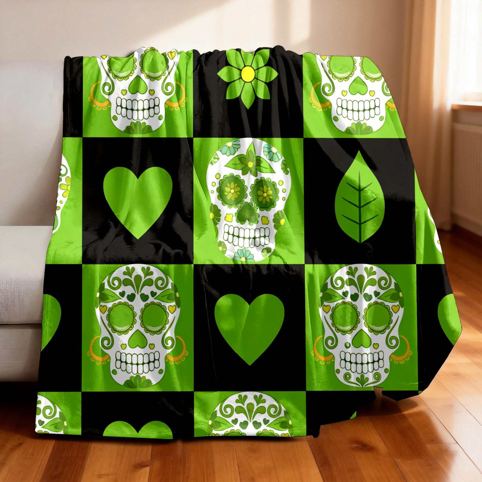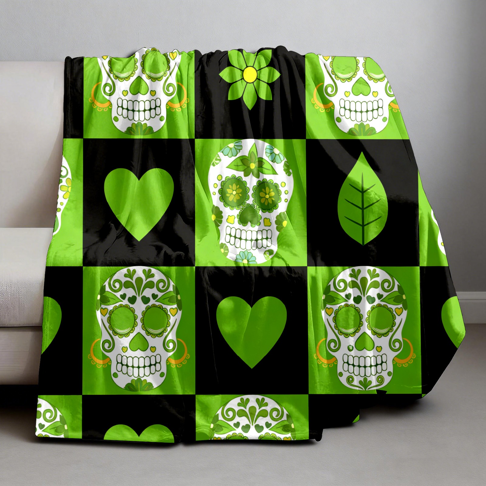 Counullo Flannel Throw Blanket, Ultra Soft Anti-Pilling Blanket for Couch & Bed, Lightweight Cozy Blanket for Travel, Home, Camping Gift - 50x60 Inches (30" x 39"), Vintage Skull Green
