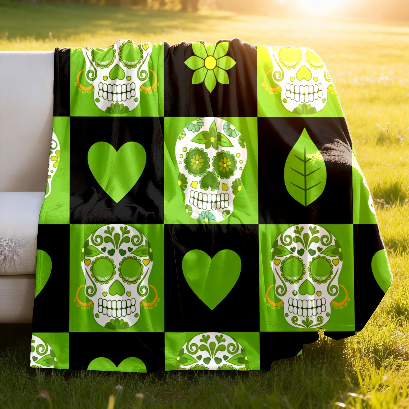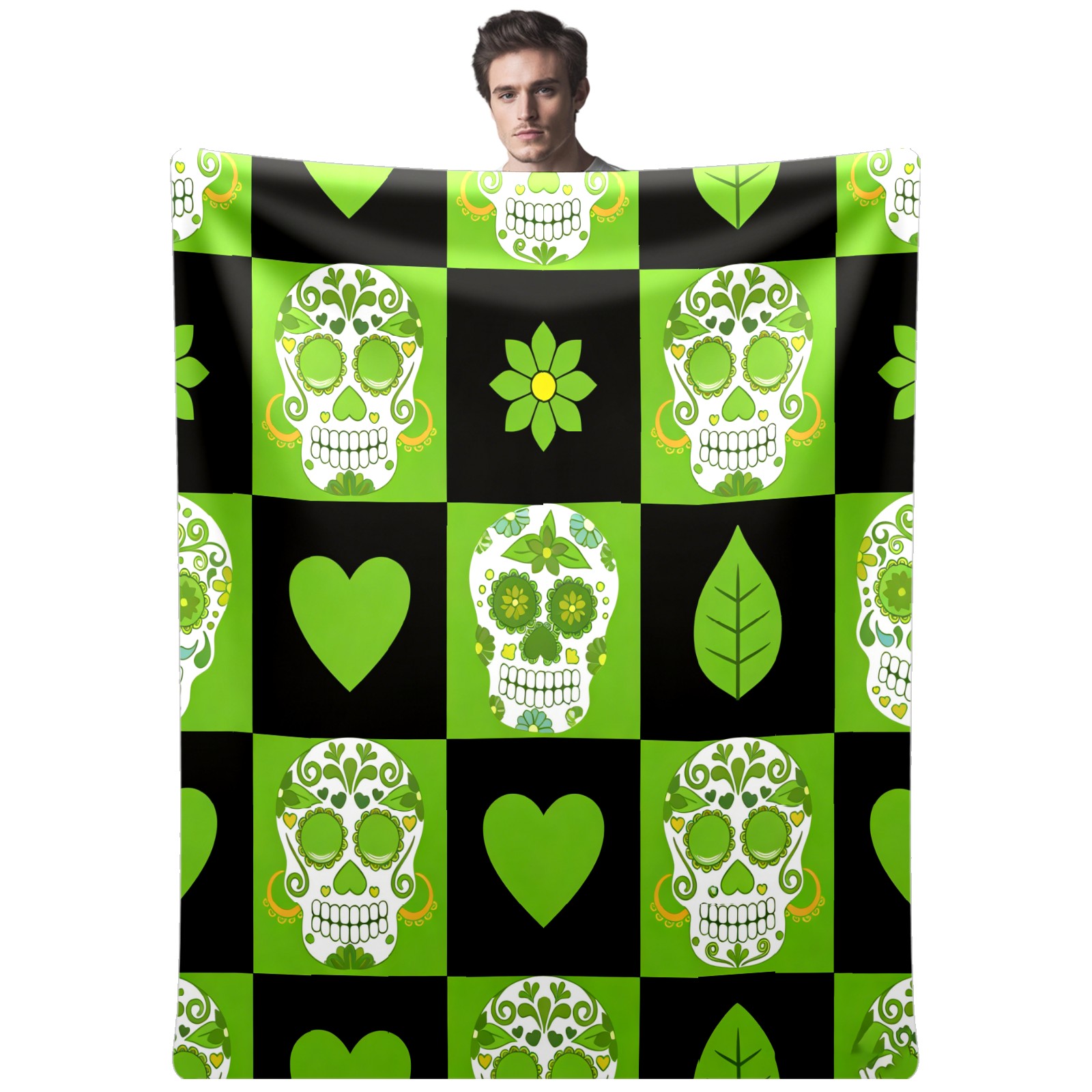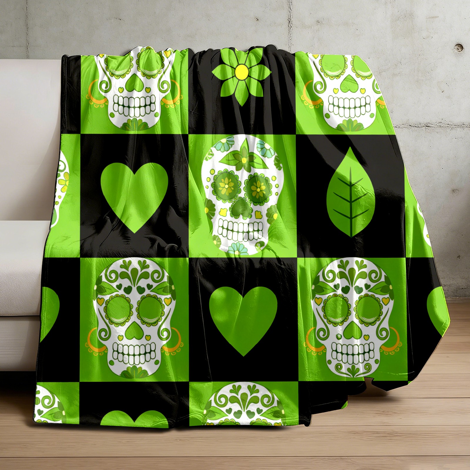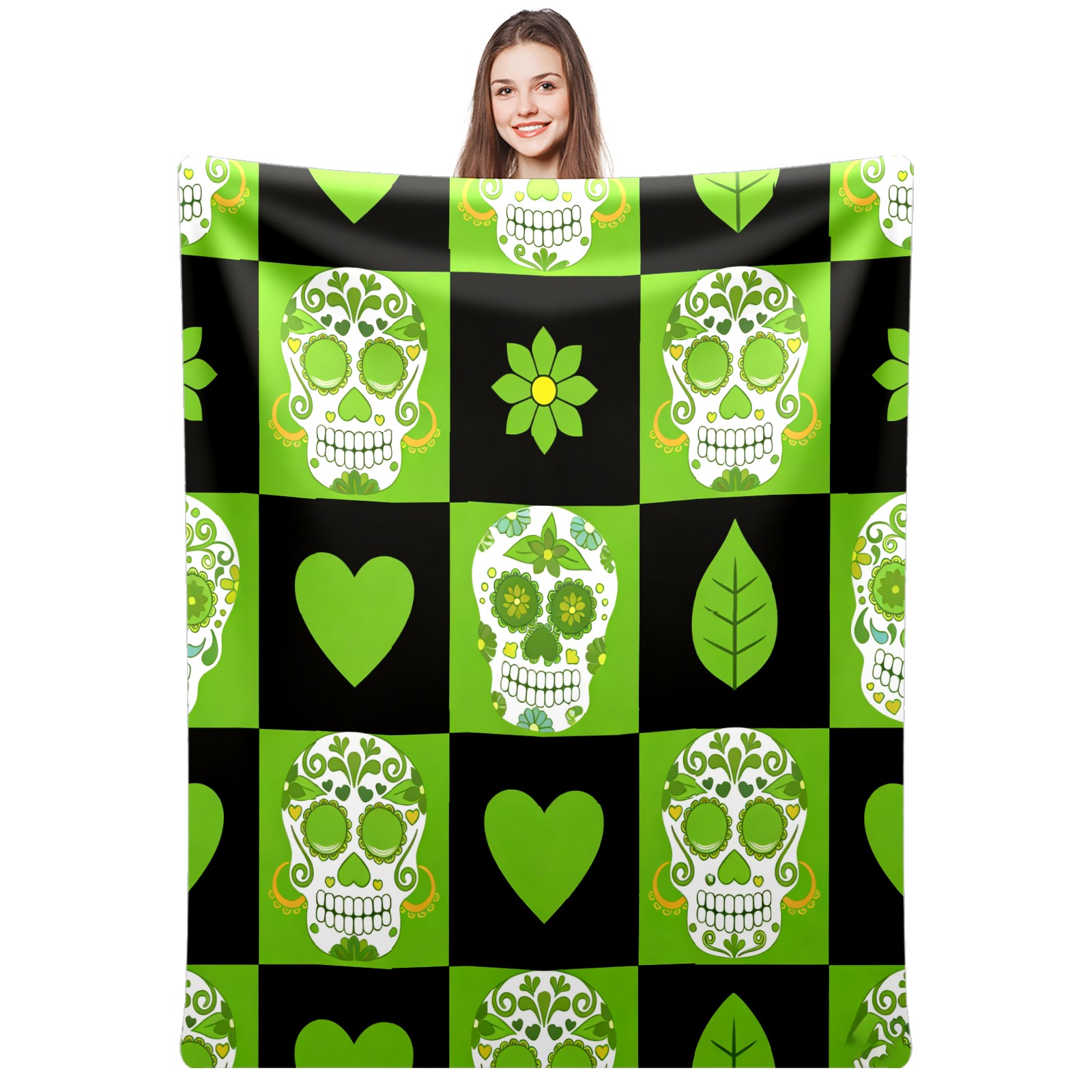 Counullo Flannel Throw Blanket, Ultra Soft Anti-Pilling Blanket for Couch & Bed, Lightweight Cozy Blanket for Travel, Home, Camping Gift - 50x60 Inches (30" x 39"), Vintage Skull Green