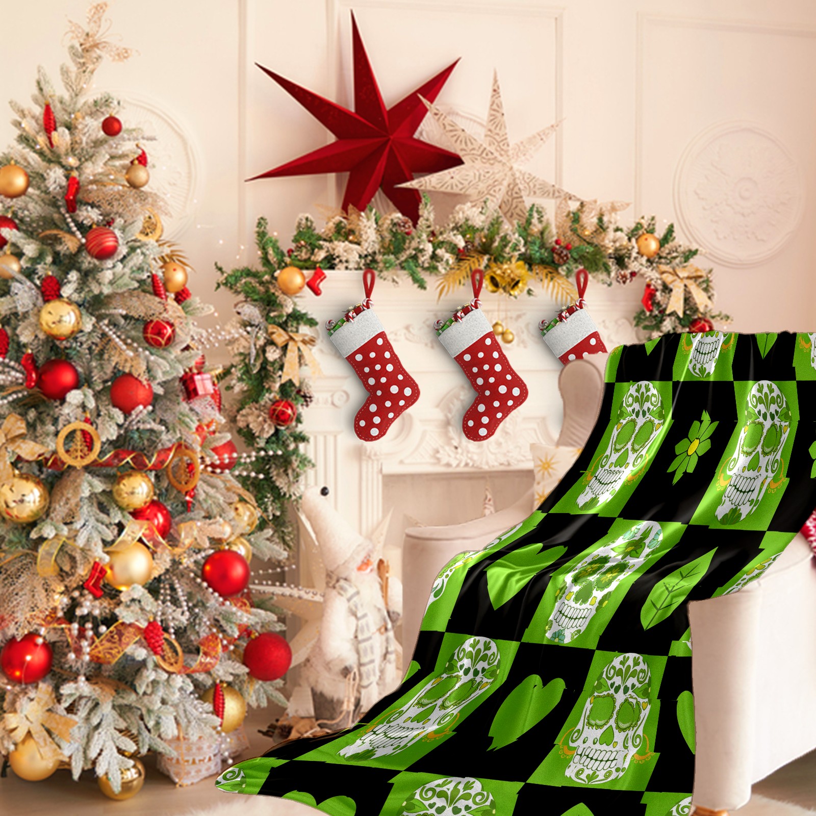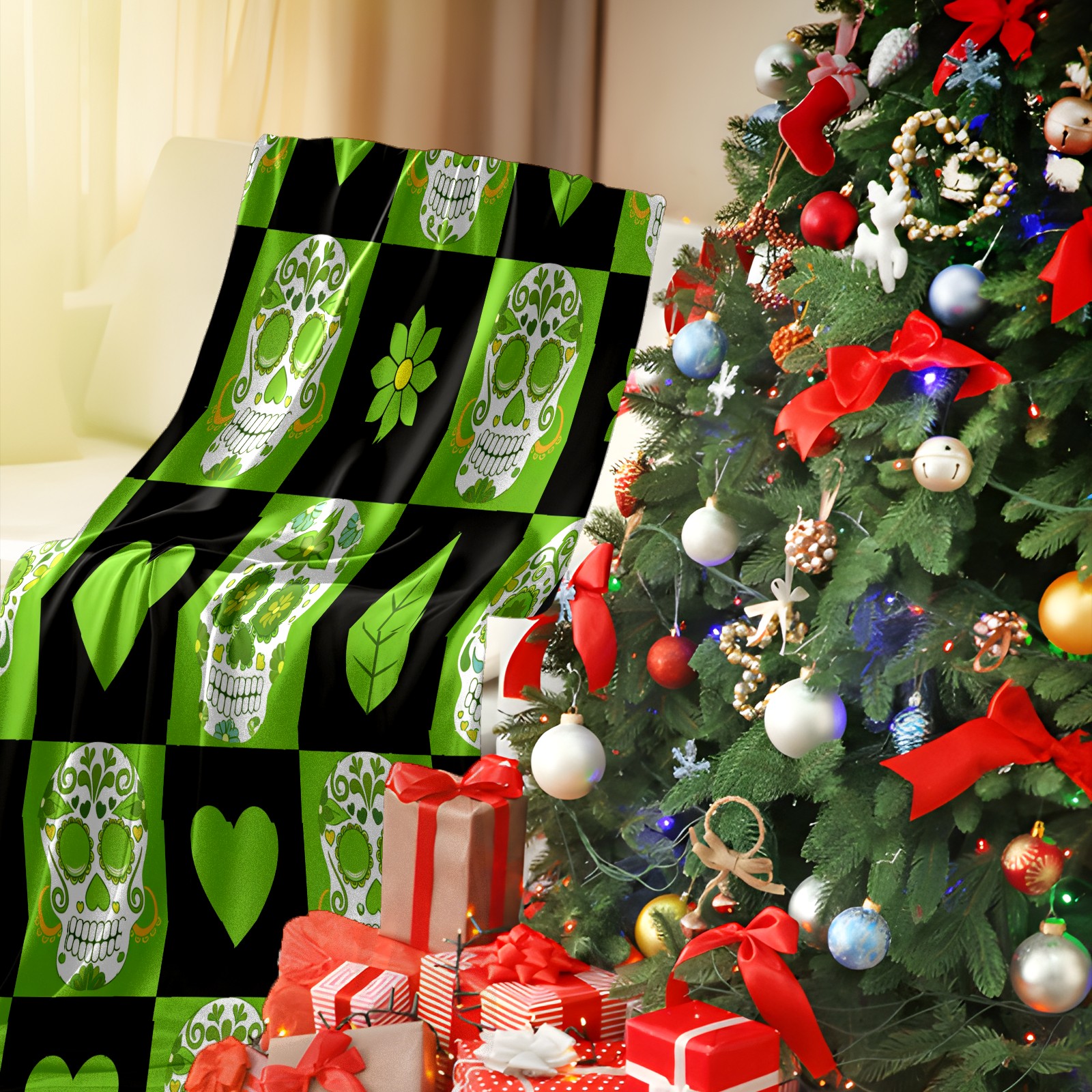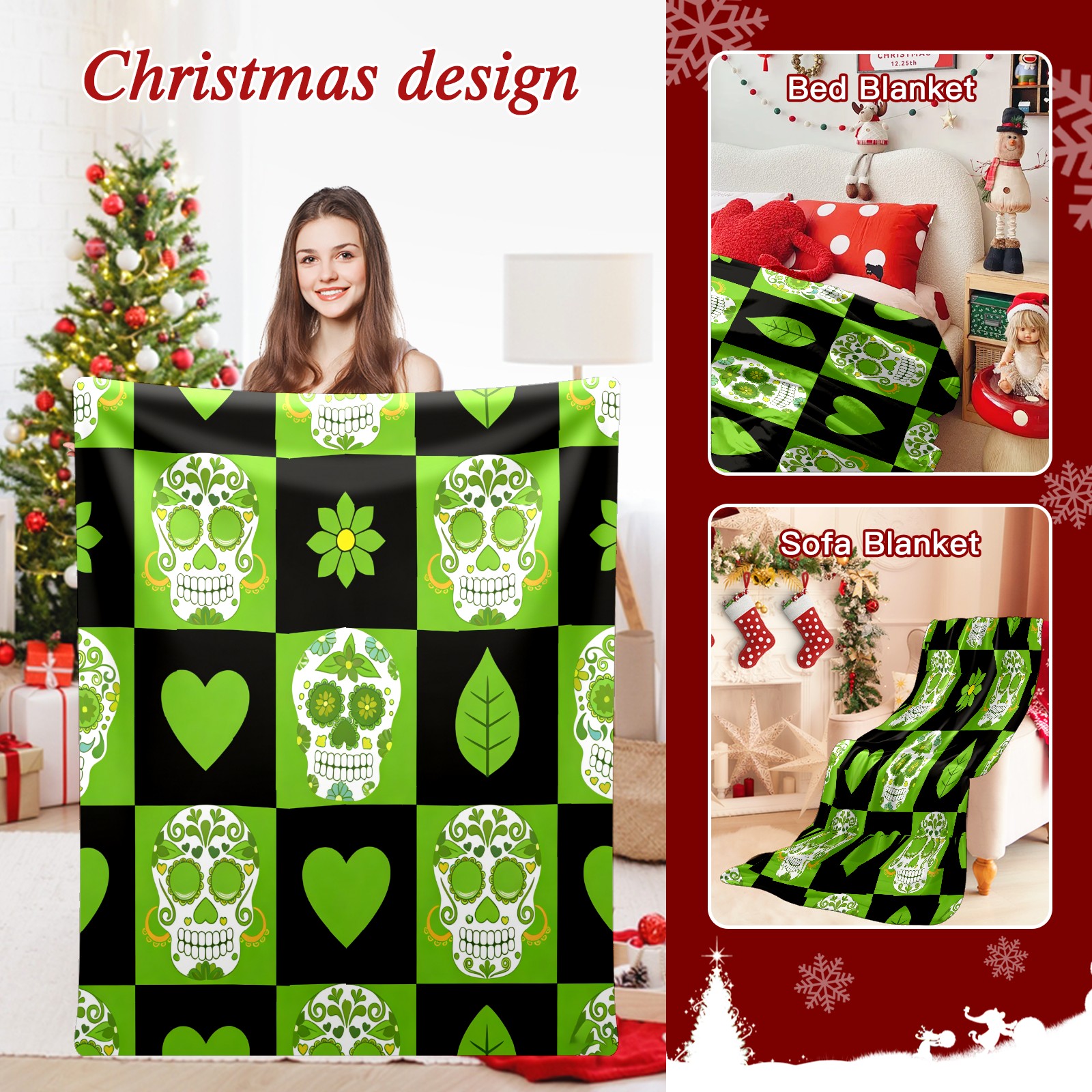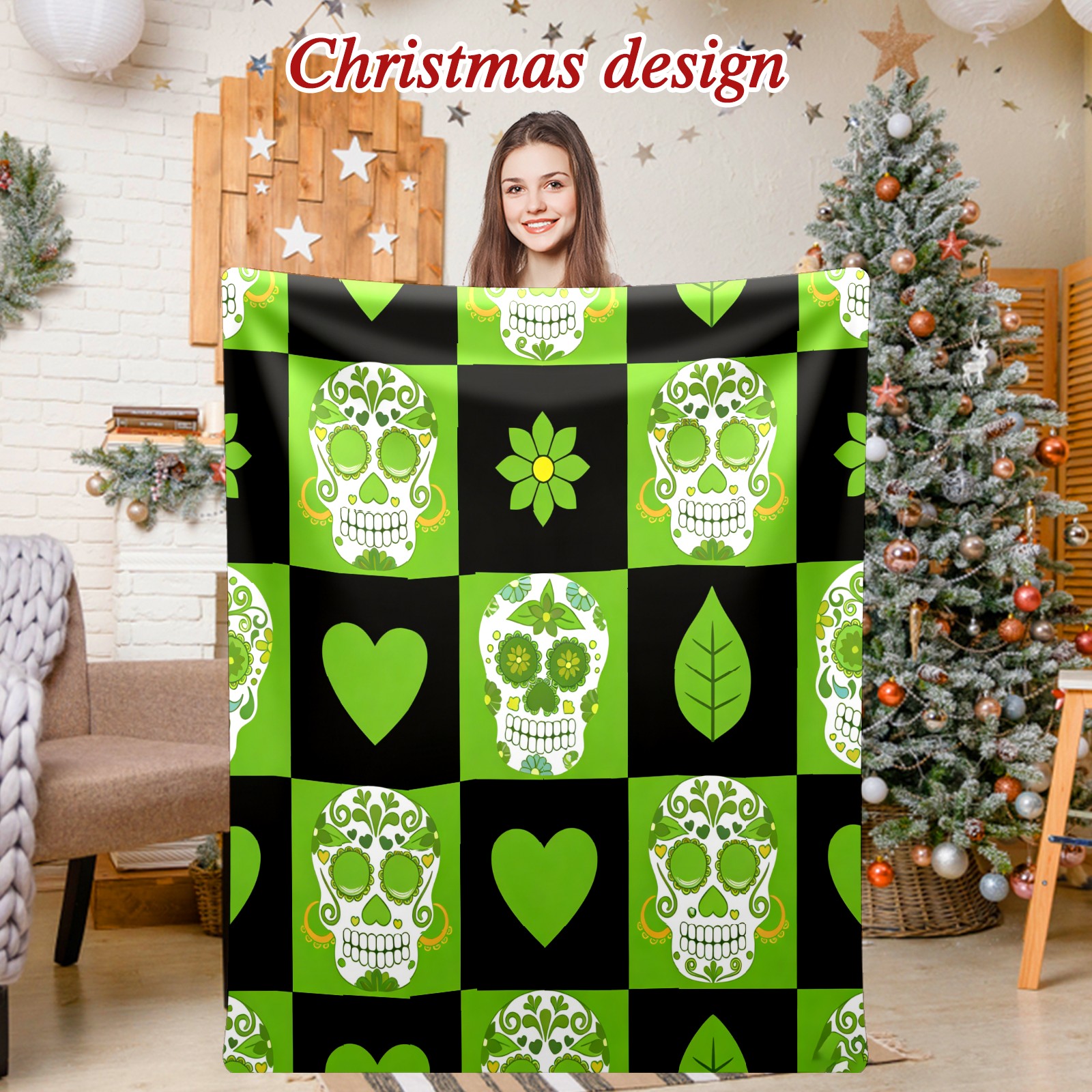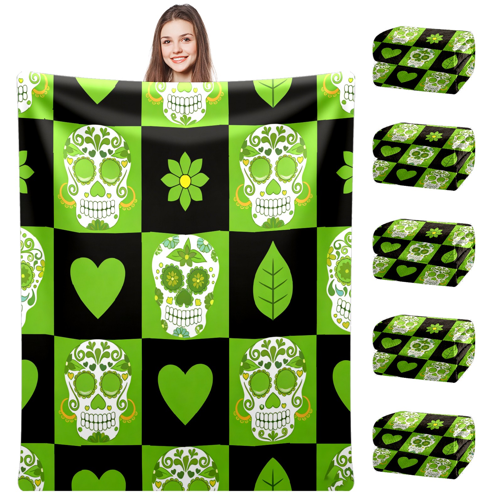 Counullo Flannel Throw Blanket, Ultra Soft Anti-Pilling Blanket for Couch & Bed, Lightweight Cozy Blanket for Travel, Home, Camping Gift - 50x60 Inches (30" x 39"), Vintage Skull Green