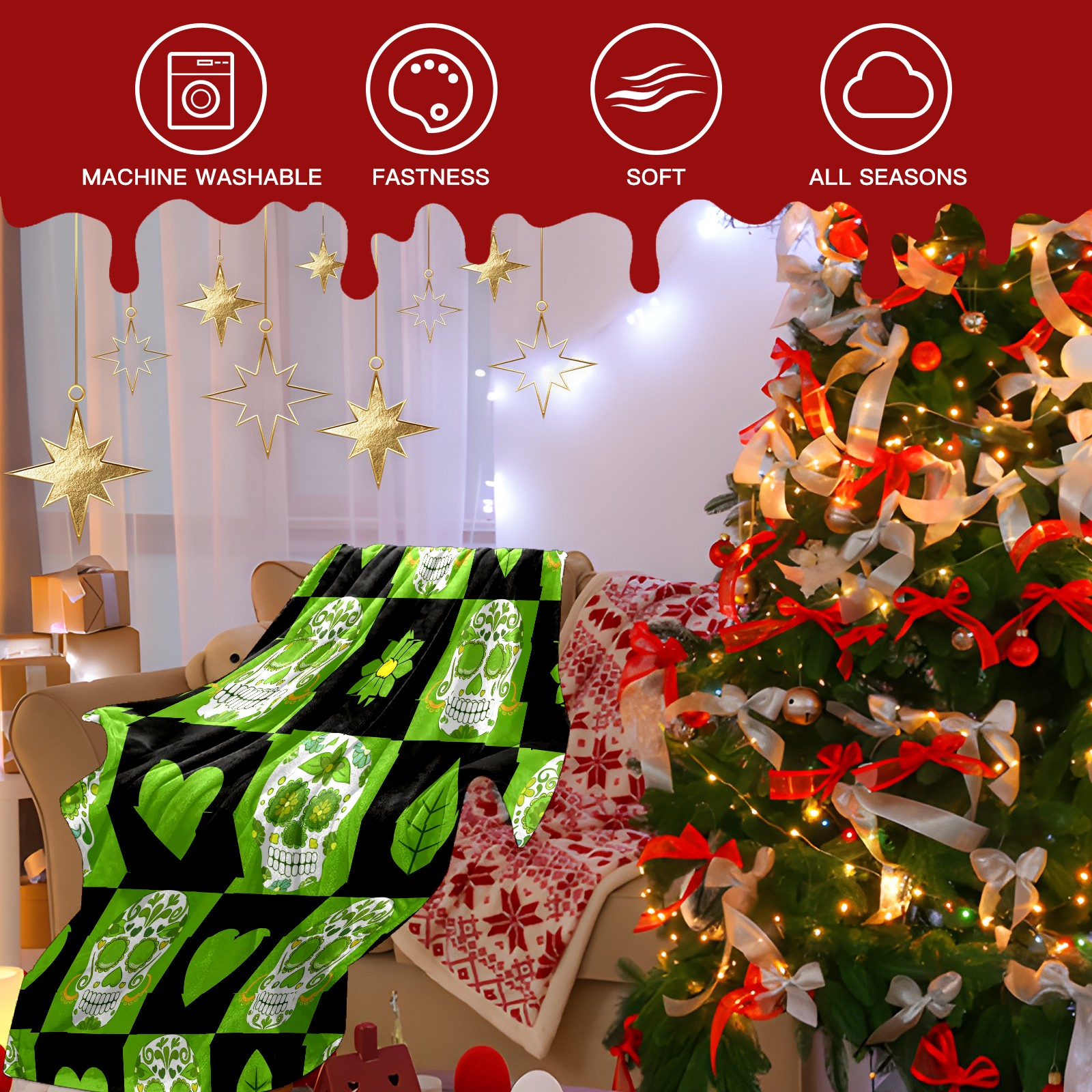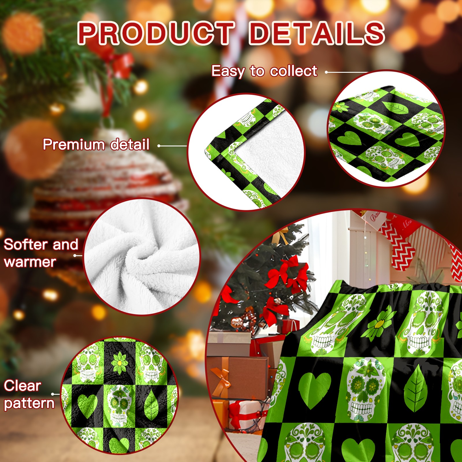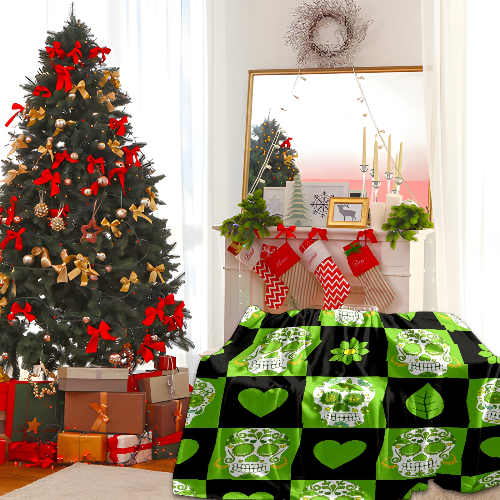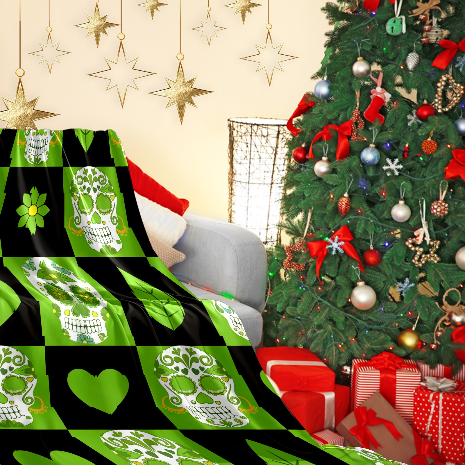 Counullo Flannel Throw Blanket, Ultra Soft Anti-Pilling Blanket for Couch & Bed, Lightweight Cozy Blanket for Travel, Home, Camping Gift - 50x60 Inches (30" x 39"), Vintage Skull Green