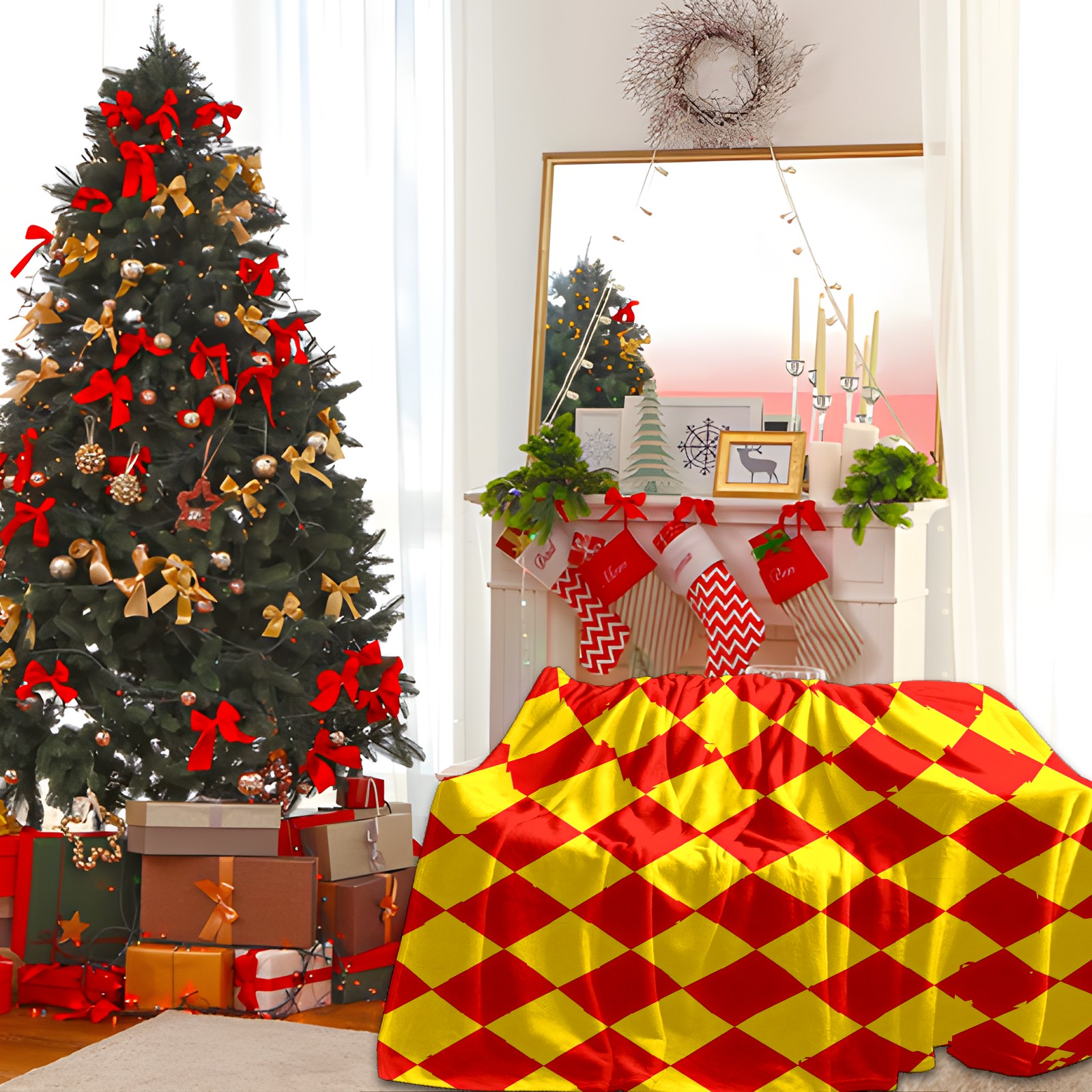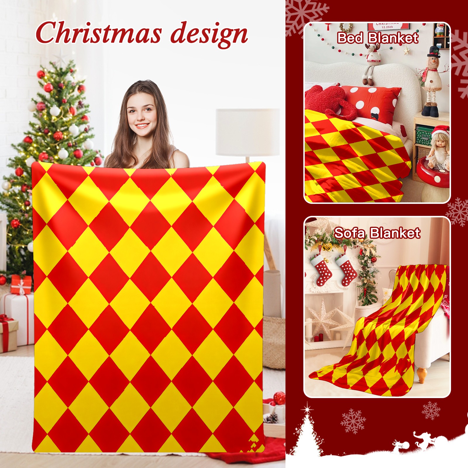 Counullo Flannel Throw Blanket, Ultra Soft Anti-Pilling Blanket for Couch & Bed, Lightweight Cozy Blanket for Travel, Home, Camping Gift - 50x60 Inches (30" x 39"), Diamond Plaid Red
