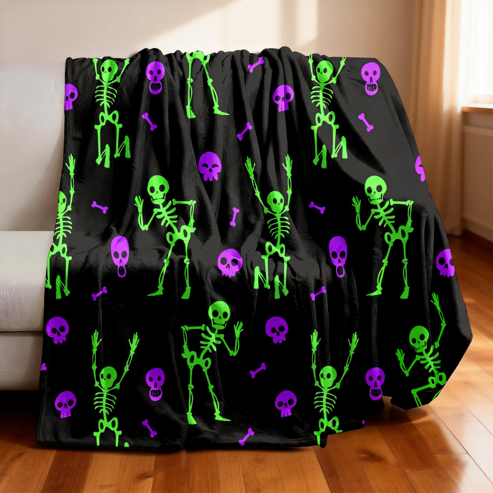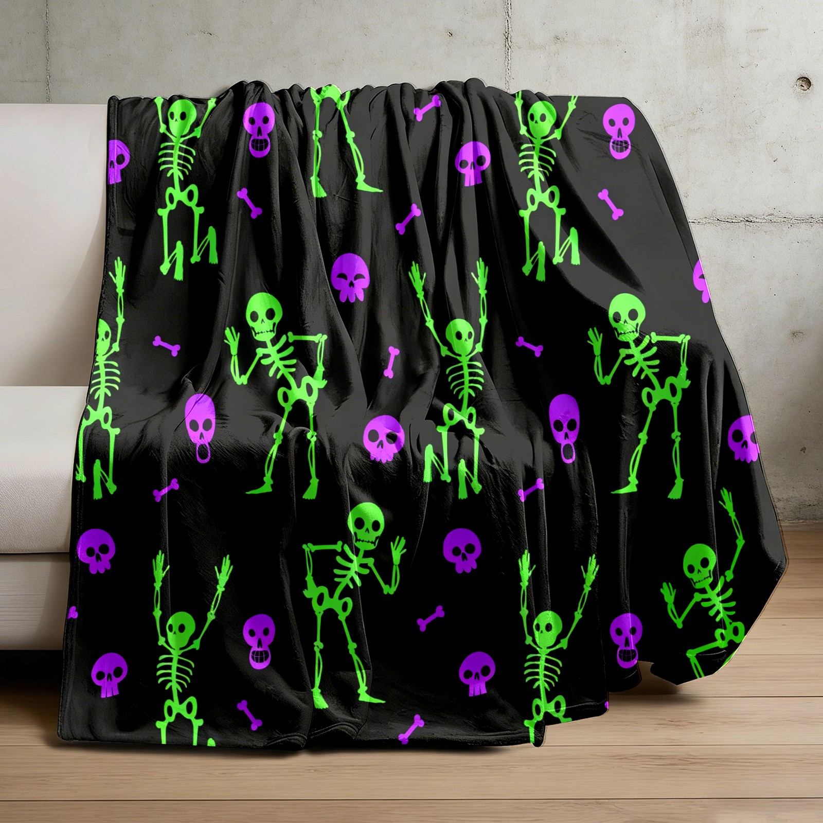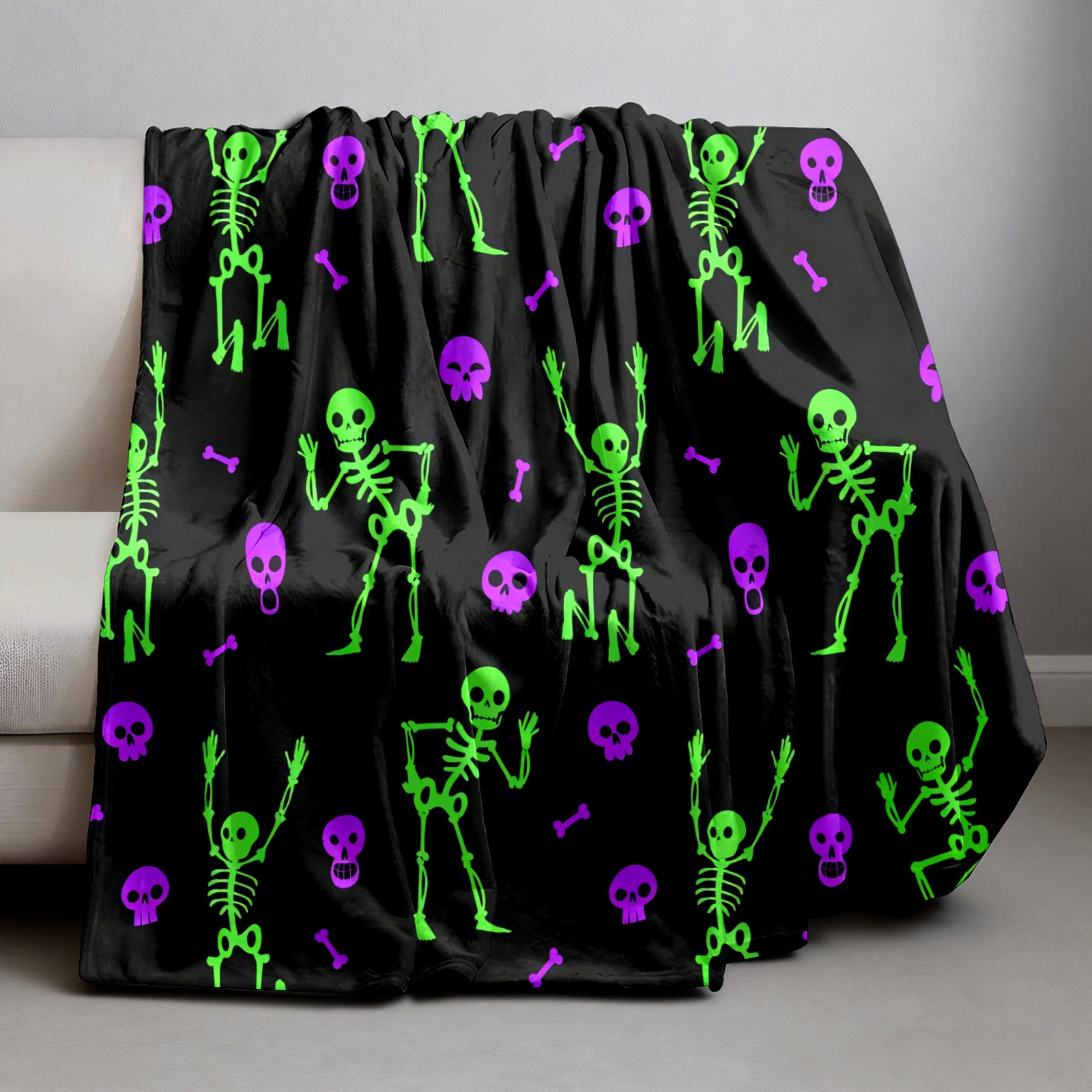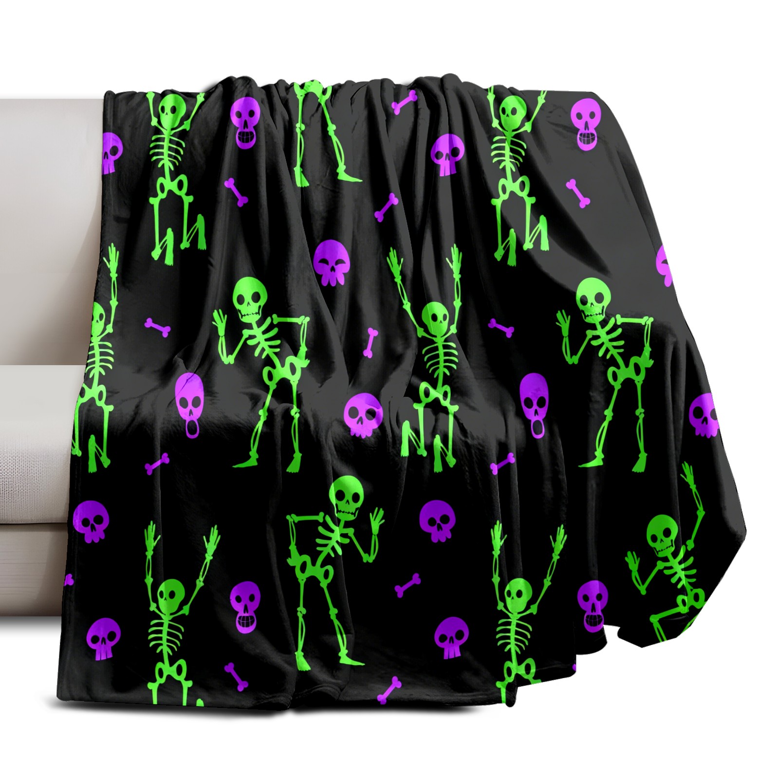 Counullo Flannel Throw Blanket, Ultra Soft Anti-Pilling Blanket for Couch & Bed, Lightweight Cozy Blanket for Travel, Home, Camping Gift - 50x60 Inches (30" x 39"), Funny Skull Green
