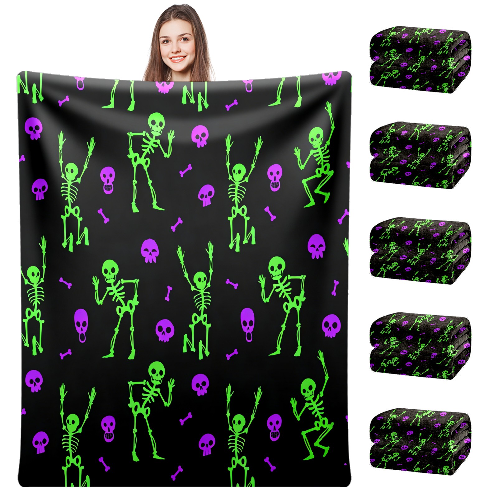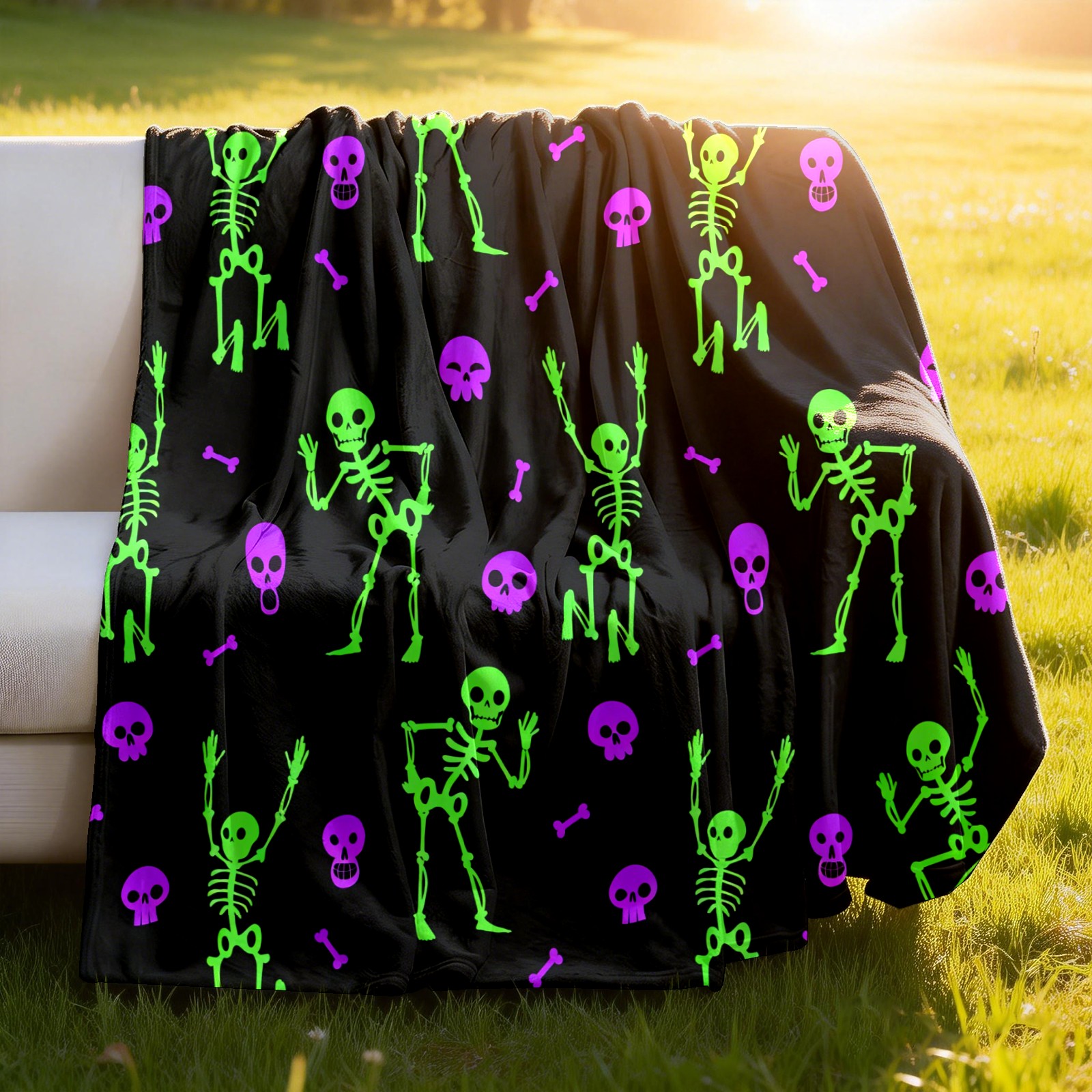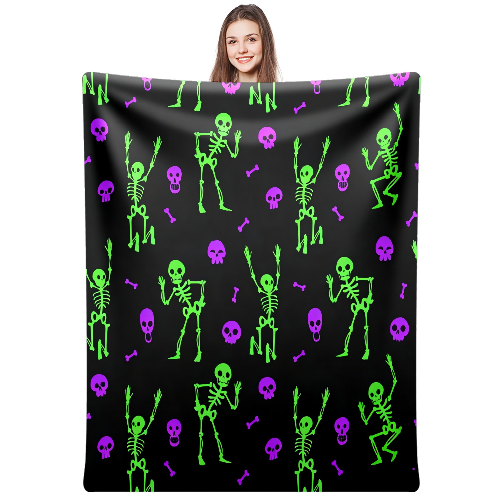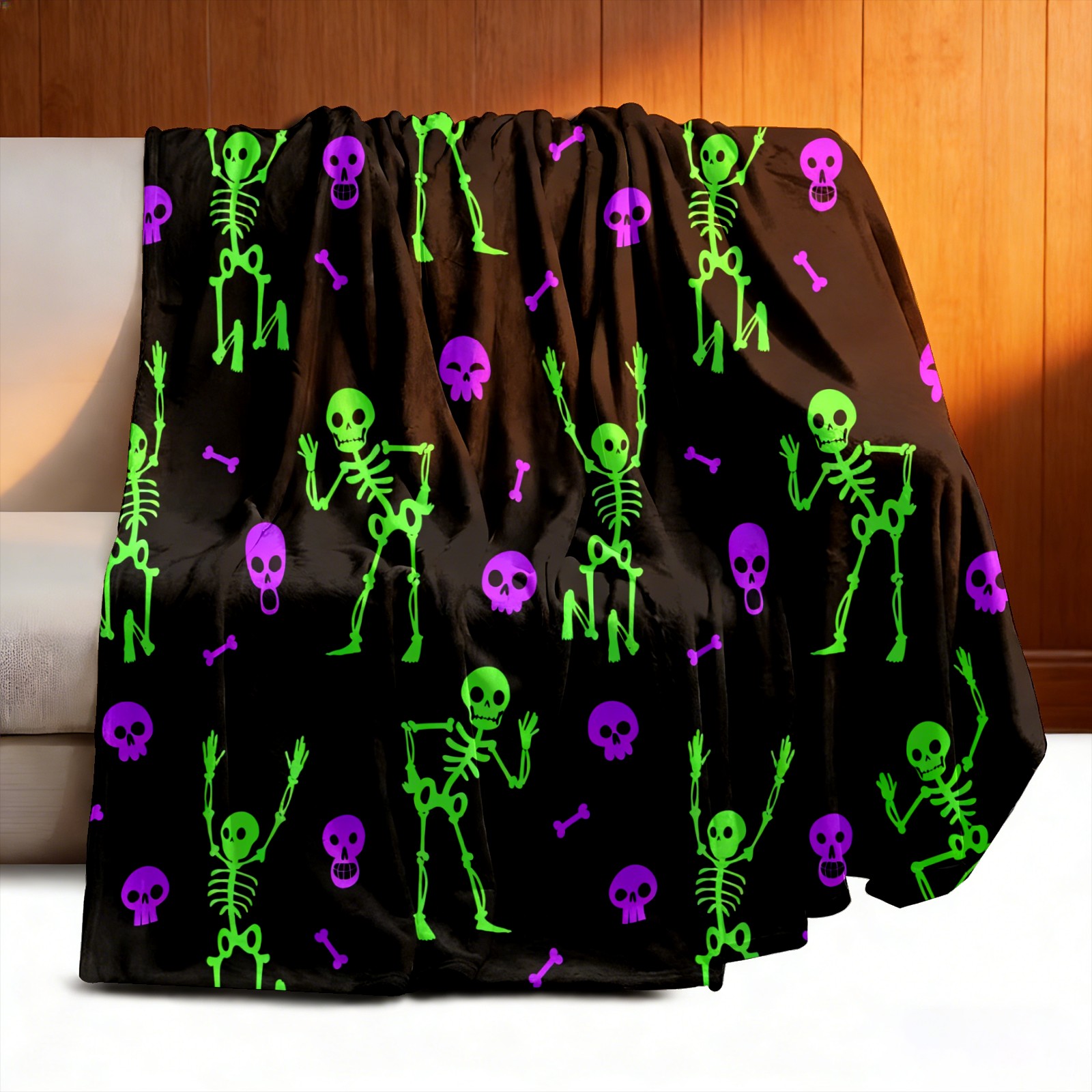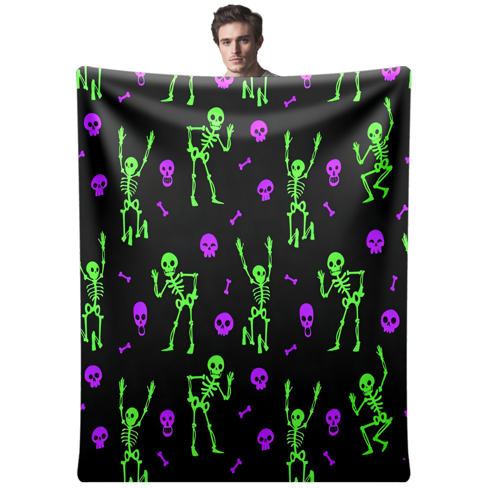 Counullo Flannel Throw Blanket, Ultra Soft Anti-Pilling Blanket for Couch & Bed, Lightweight Cozy Blanket for Travel, Home, Camping Gift - 50x60 Inches (30" x 39"), Funny Skull Green