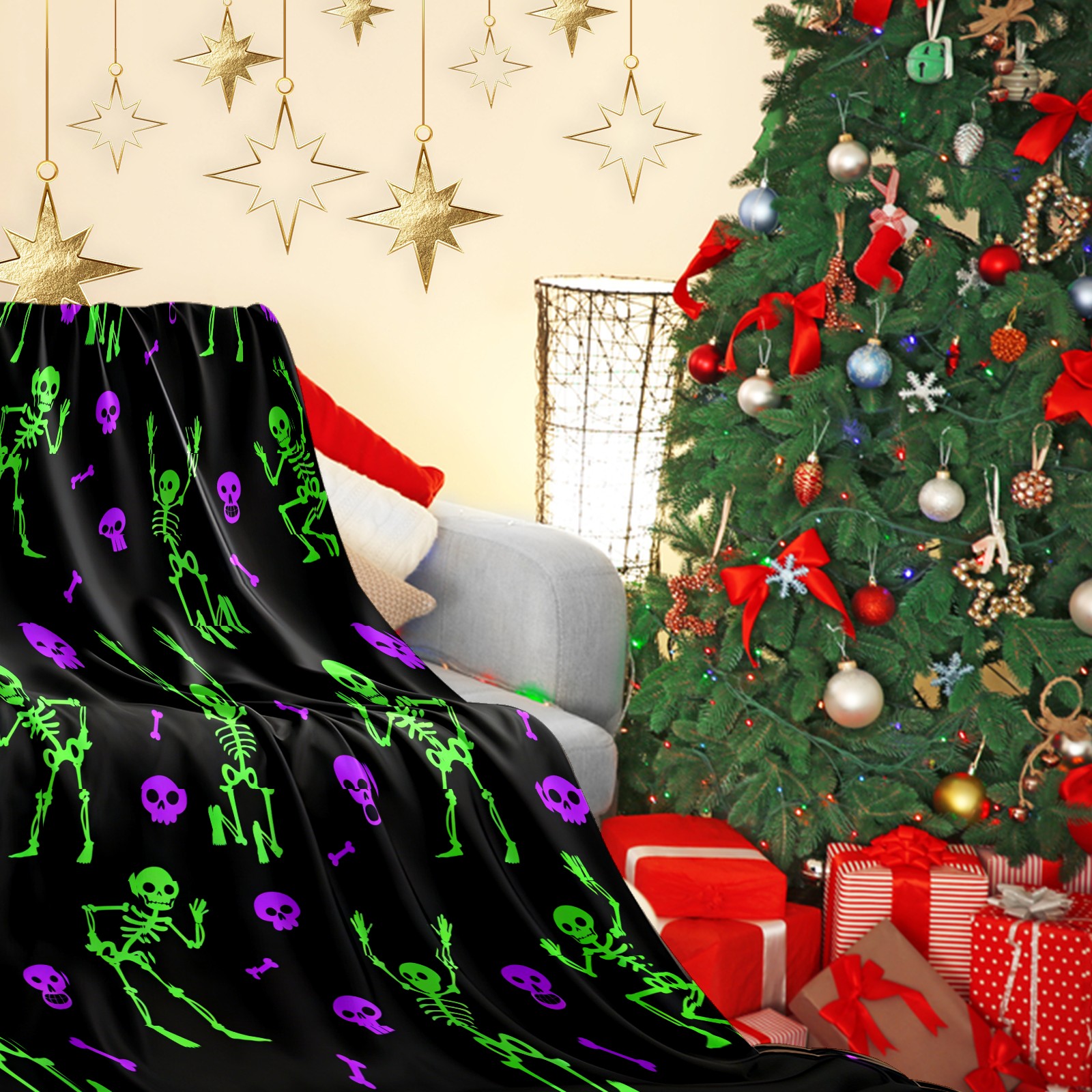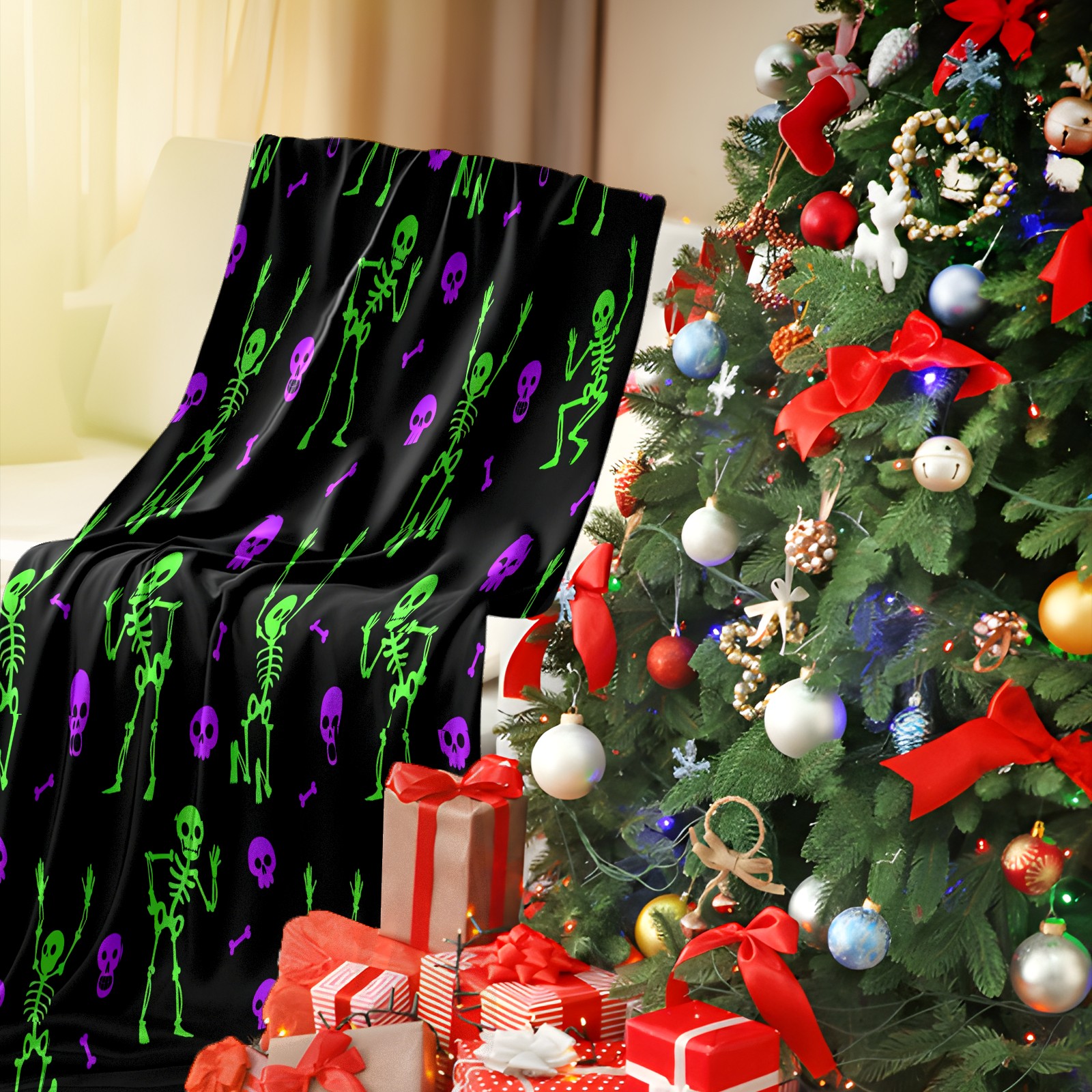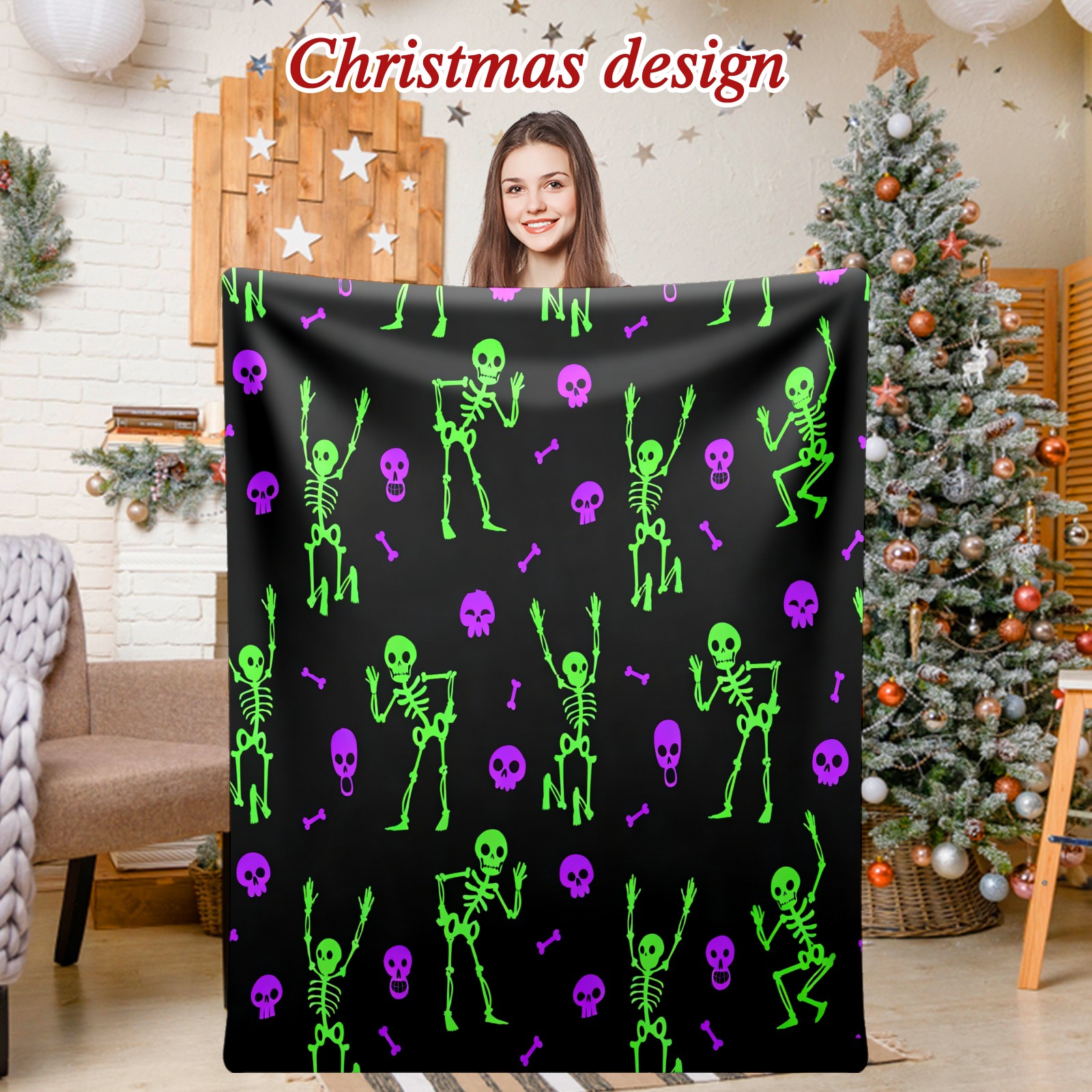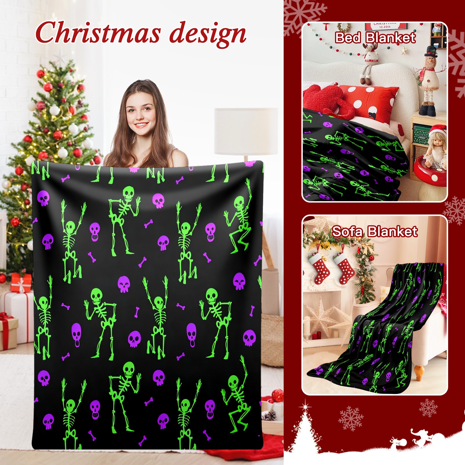 Counullo Flannel Throw Blanket, Ultra Soft Anti-Pilling Blanket for Couch & Bed, Lightweight Cozy Blanket for Travel, Home, Camping Gift - 50x60 Inches (30" x 39"), Funny Skull Green