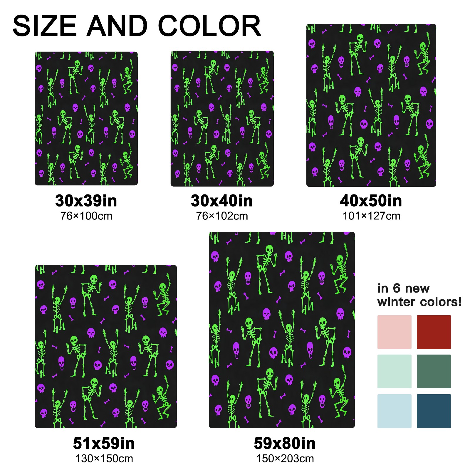 <strong></strong><p><strong>【Size】</strong>5 sizes. 30x39in/76x100cm; 30x40in/76x102cm; 40x50in/101x127cm; 51x59in /130x150cm; 59x80in/150x203cm <strong>【Product performance】</strong> &nbsp;</p><p>❤Skin-Friendly &amp; Breathable&nbsp;</p><p>❤Lightweight &amp; Folded tightly&nbsp;</p><p>❤Anti-pilling &amp; Anti-wrinkle &amp; Anti-allergy&nbsp;</p><p>❤Baby Sleep, Travel, Sofa, Nap Blanket , Bed Sheet</p>
