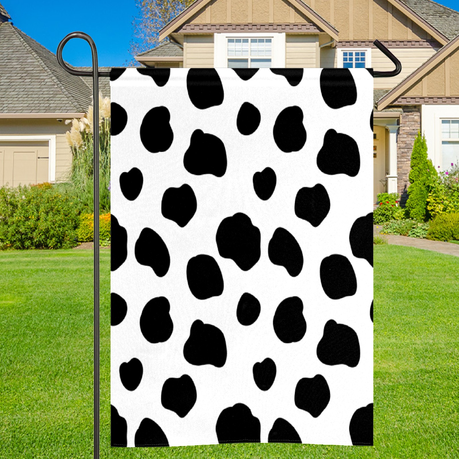 Black And White Cow Print Водонепроницаемый садовый флаг для улицы, клумбы, украшения веранды - все сезонные праздничные вечеринки/декор ландшафта террасы