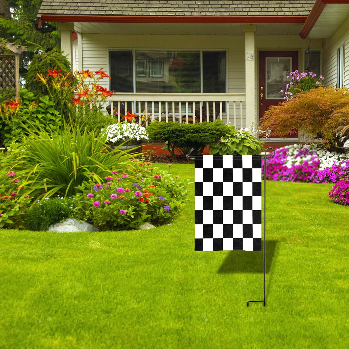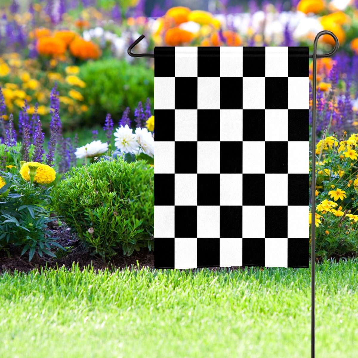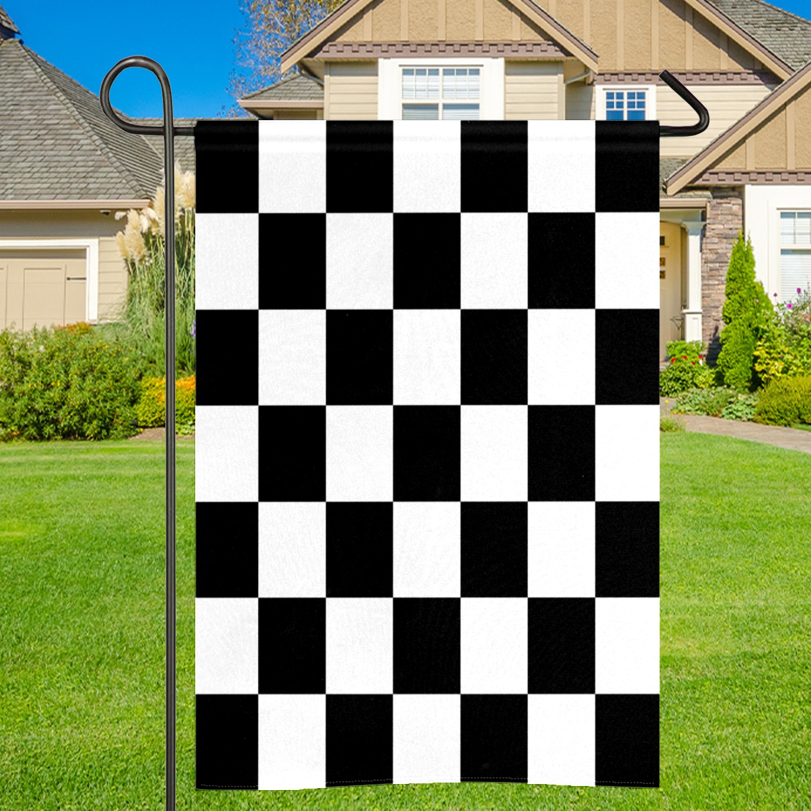 Black And White Checkered Pattern Водонепроницаемый садовый флаг для улицы, клумбы, украшения веранды - все сезонные праздничные вечеринки/декор ландшафта террасы