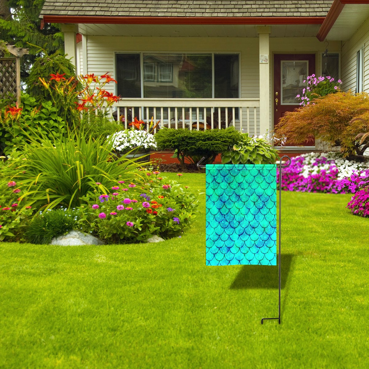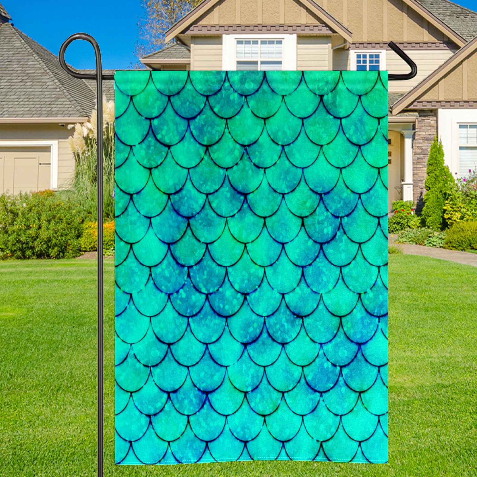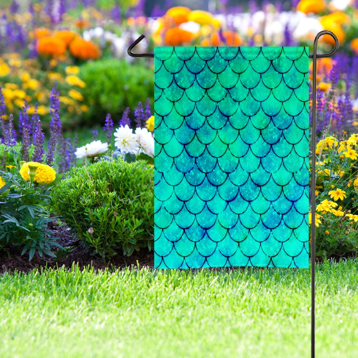 Mermaid Green Scales Водонепроницаемый садовый флаг для улицы, клумбы, украшения веранды - все сезонные праздничные вечеринки/декор ландшафта террасы