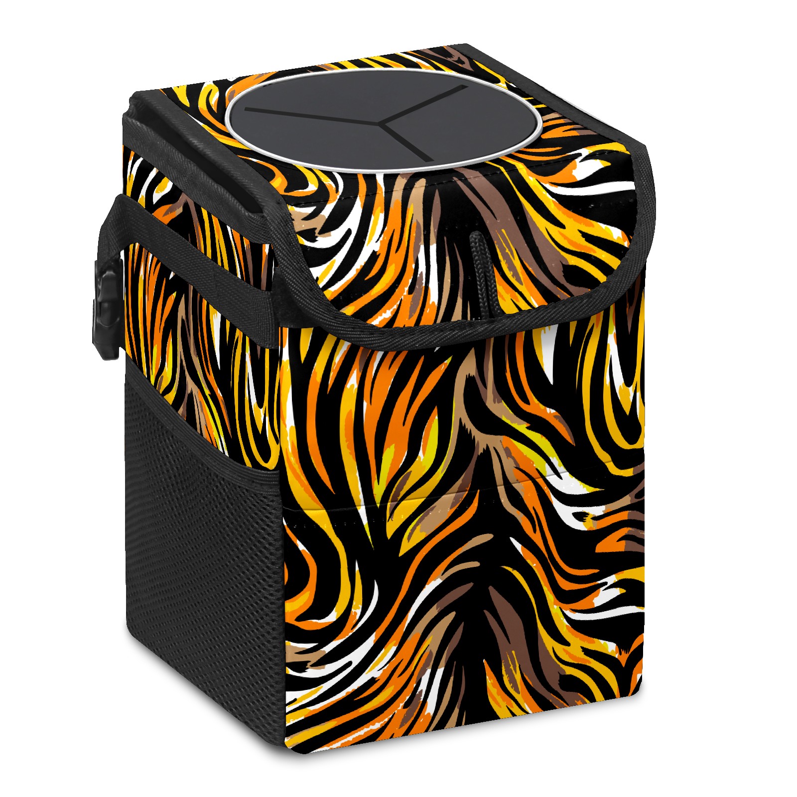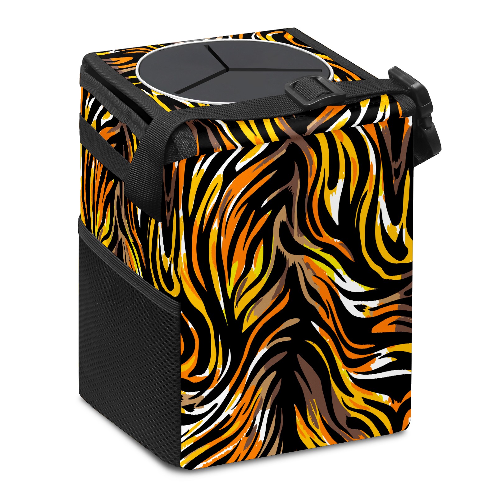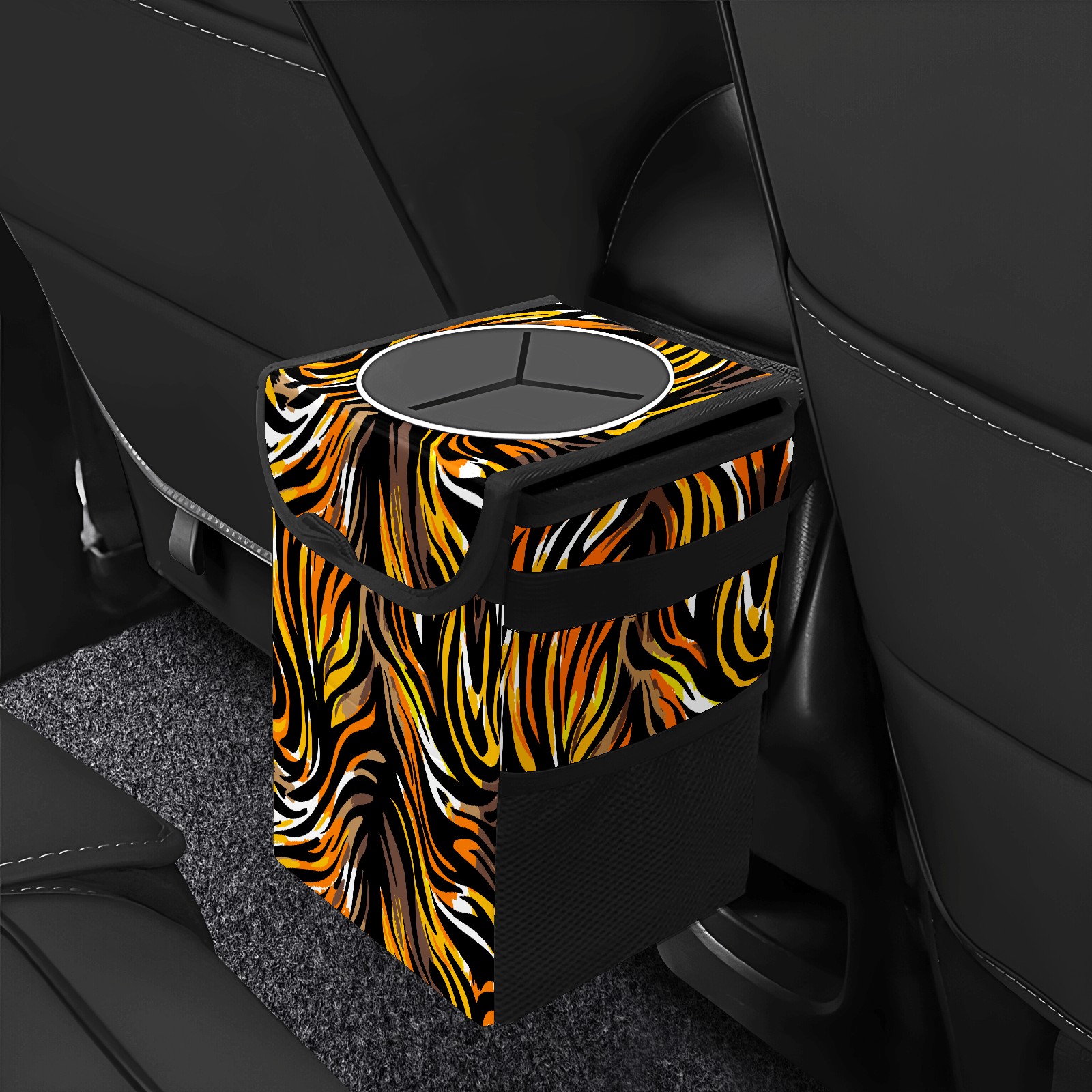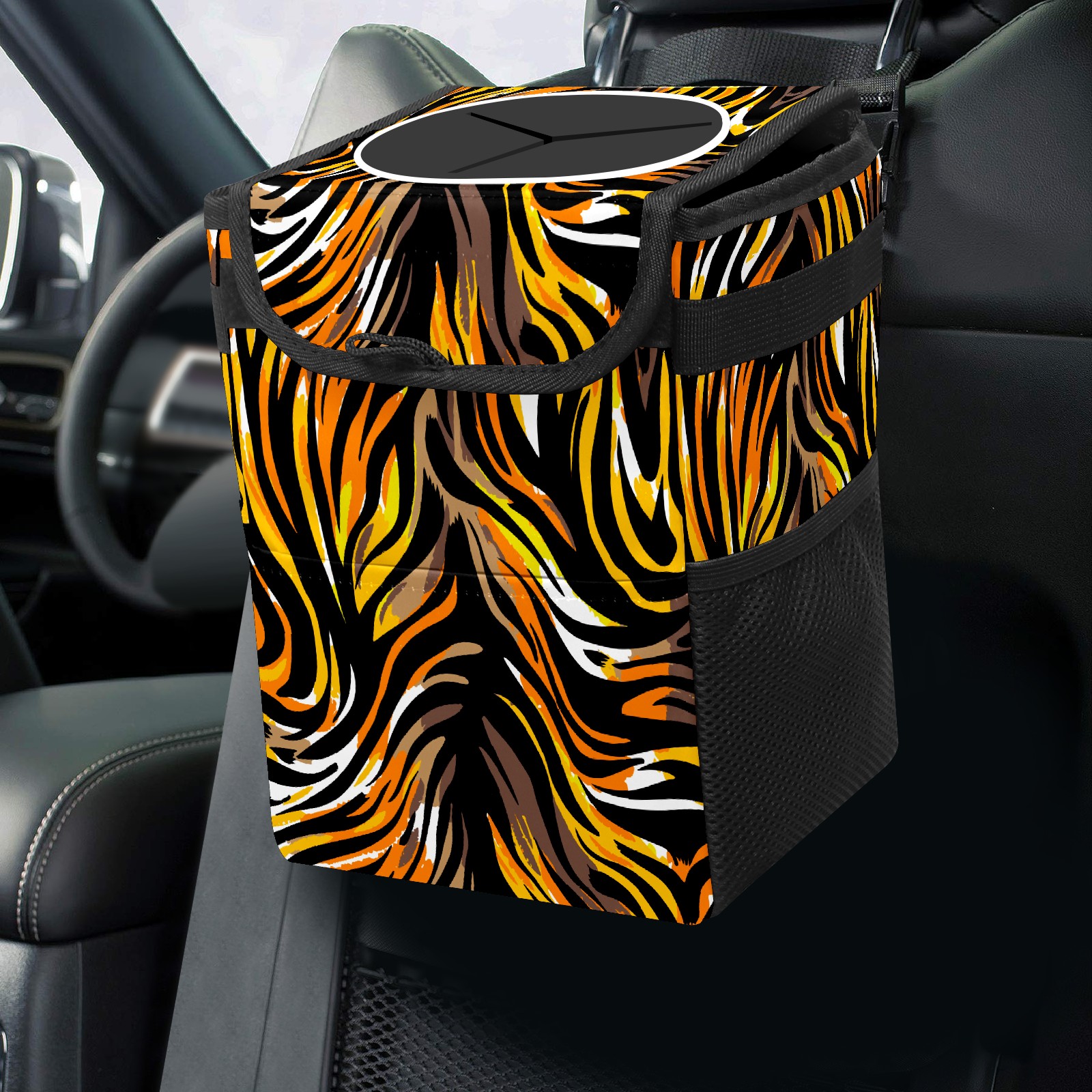 Car Trash Bin with Lid Auto Garbage Bag Hanging for Back Seat - Leakproof Trash Can for Cars SUVs Trucks Vehicle Car Accessories (Tiger Print Texture)