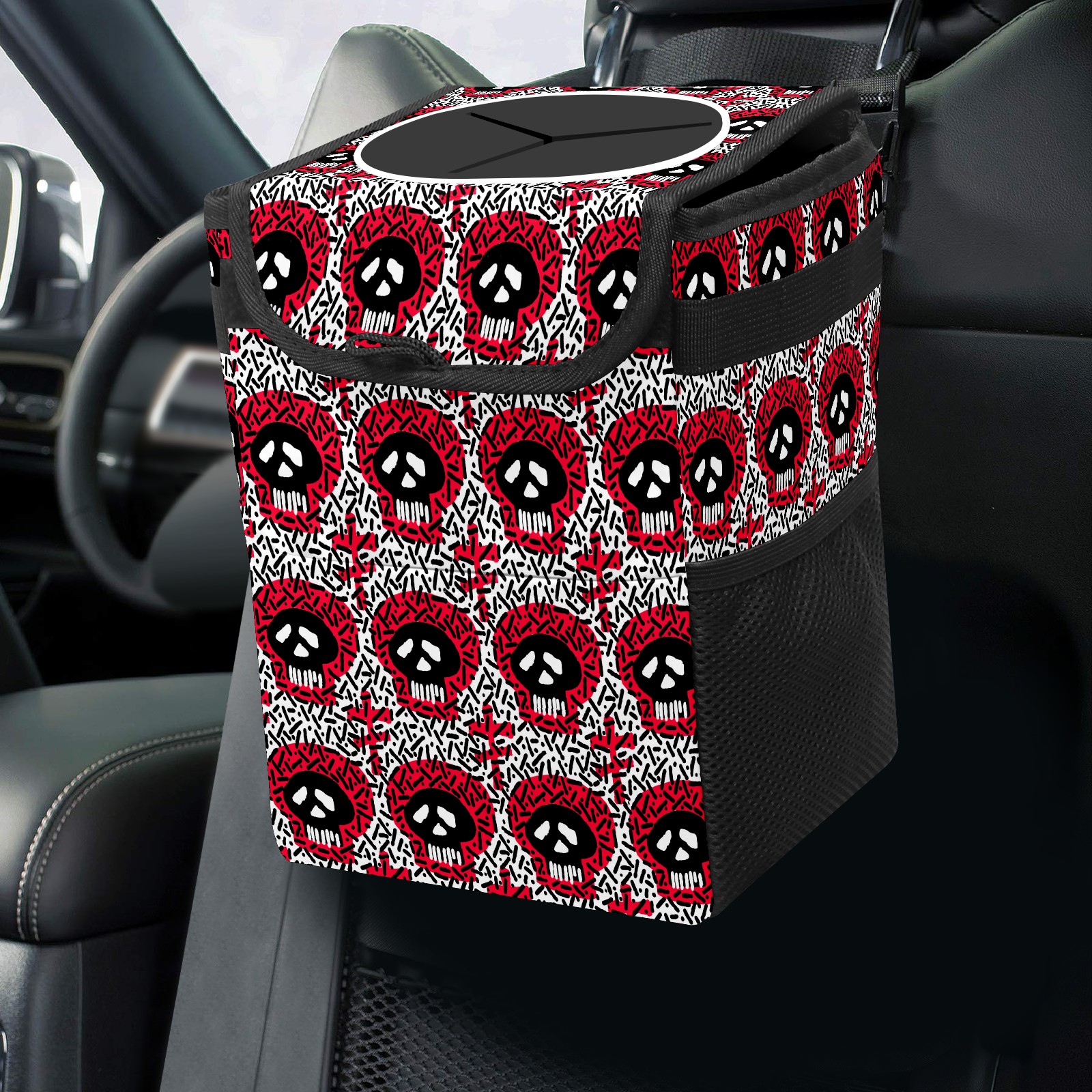Car Trash Bin with Lid Auto Garbage Bag Hanging for Back Seat - Leakproof Trash Can for Cars SUVs Trucks Vehicle Car Accessories (Punk Gothic Skull Head)