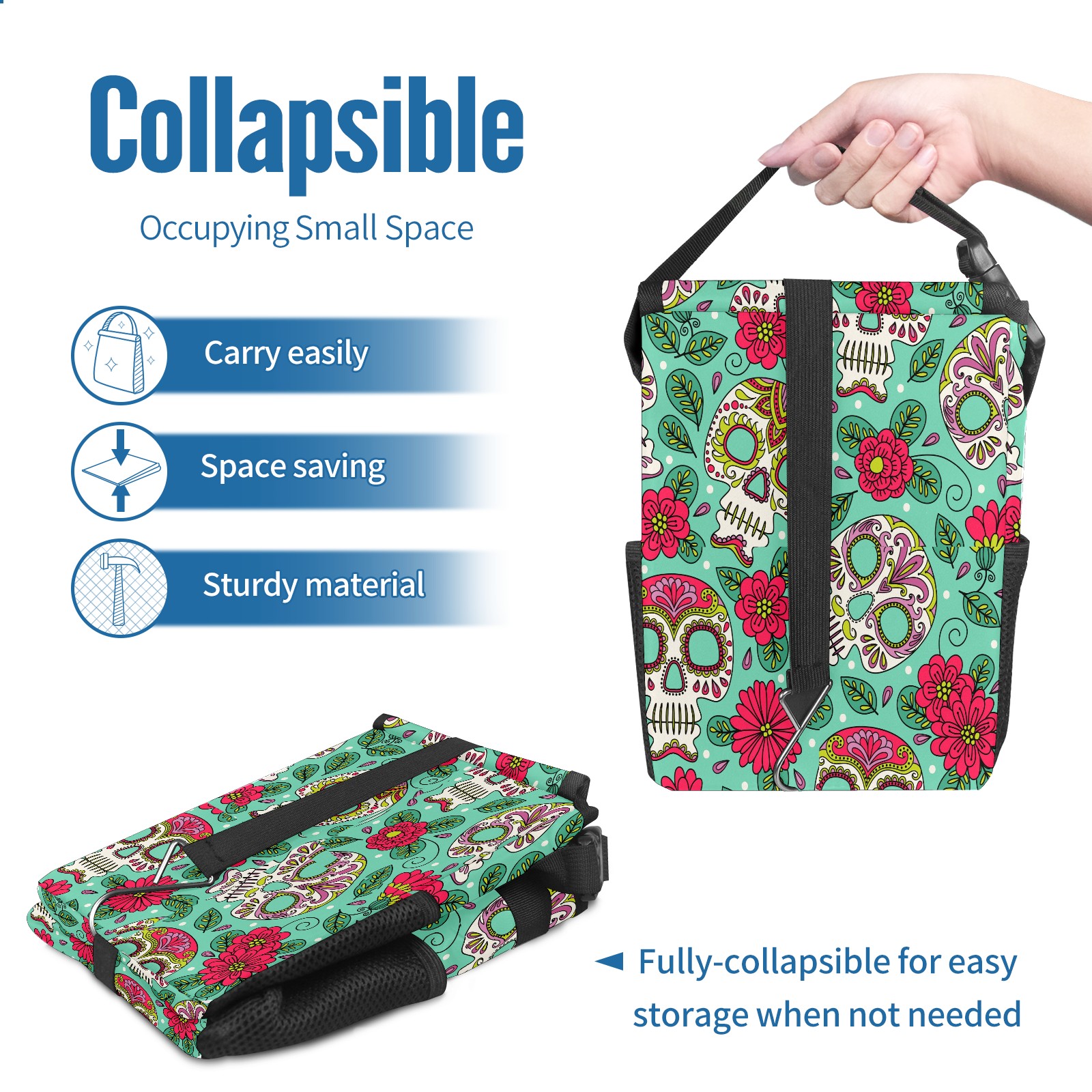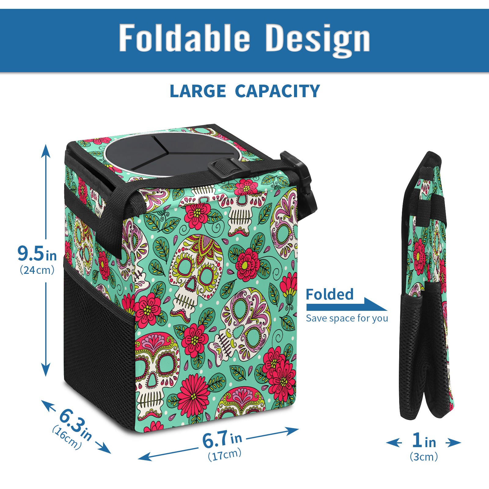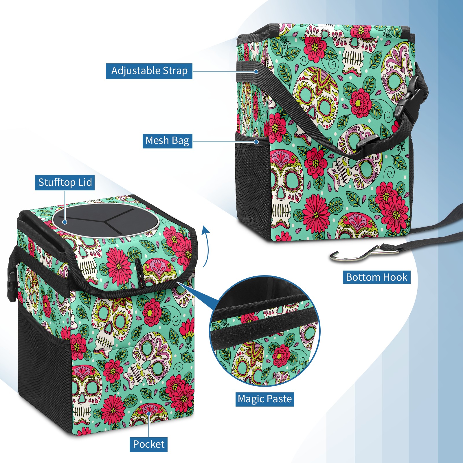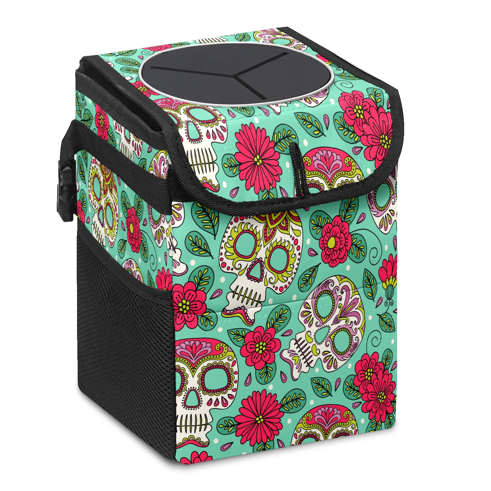 Car Trash Bin with Lid Auto Garbage Bag Hanging for Back Seat - Leakproof Trash Can for Cars SUVs Trucks Vehicle Car Accessories (Punk Gothic Skull Floral Green)