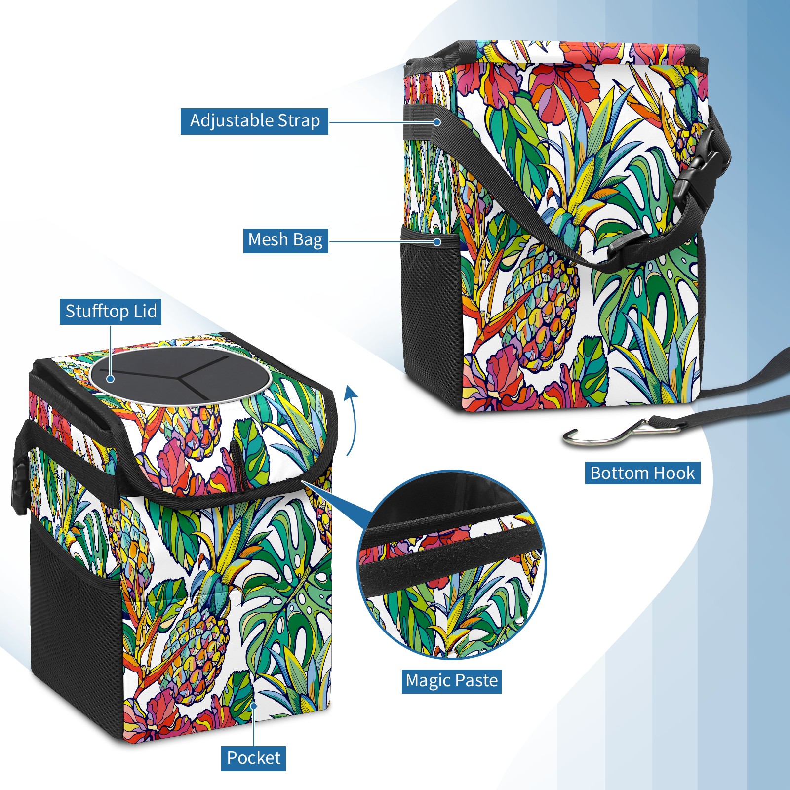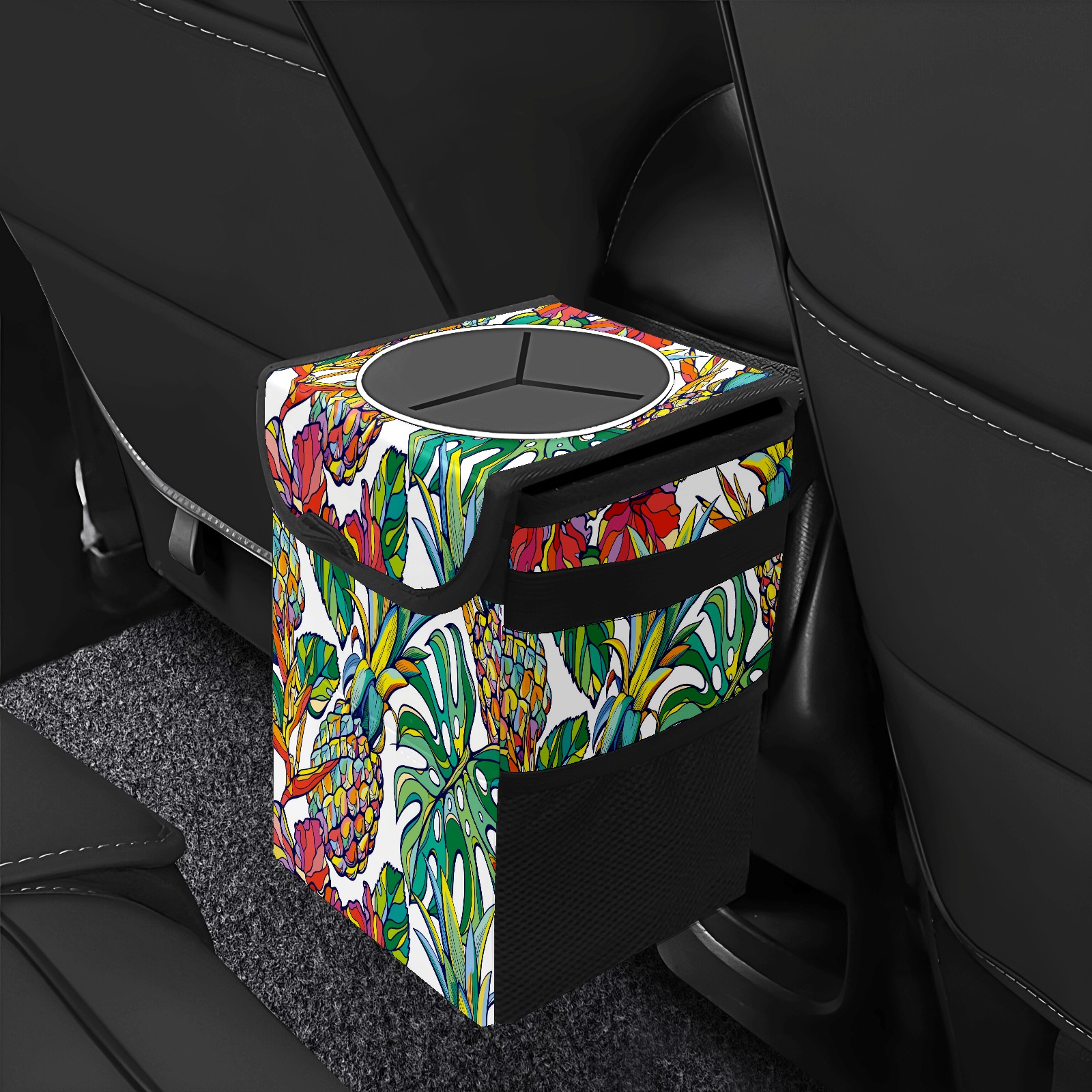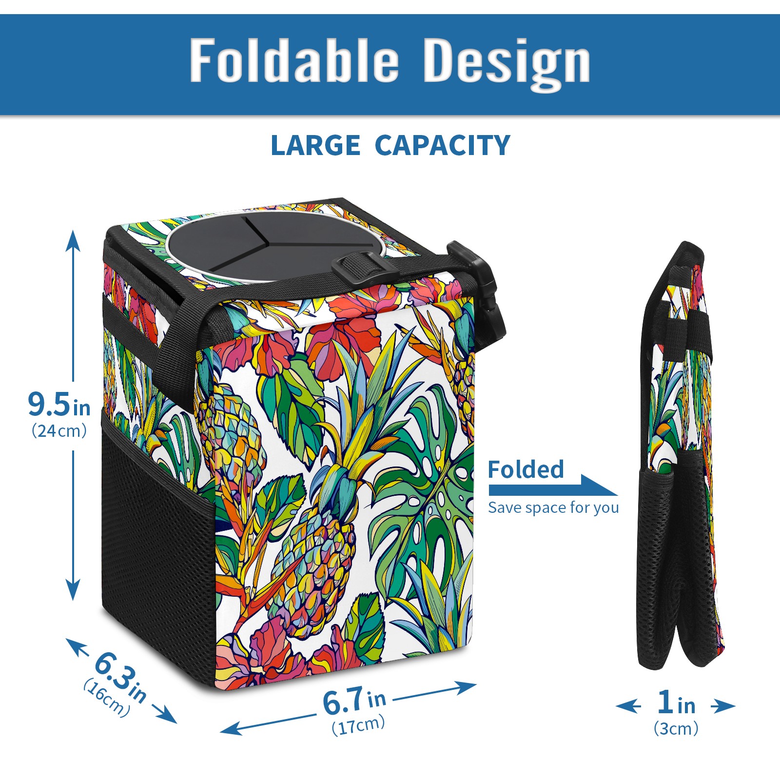 FOLDABLE & SPACE-SAVING Compact 9.5"×6.7"×6.3" size fits perfectly in any vehicle space Instantly folds flat when not in use - stores effortlessly under seats or in door pockets MULTI-FUNCTION ORGANIZER Large main compartment holds bottles, wrappers and tissues Additional pockets for wet wipes, masks or small accessories WATERPROOF & LEAKPROOF Made with premium leak-proof polyester material Contains messy spills from drinks, snacks, and food Wipe-clean surface resists stains and eliminates odors Package Includes 1× Car Trash Can